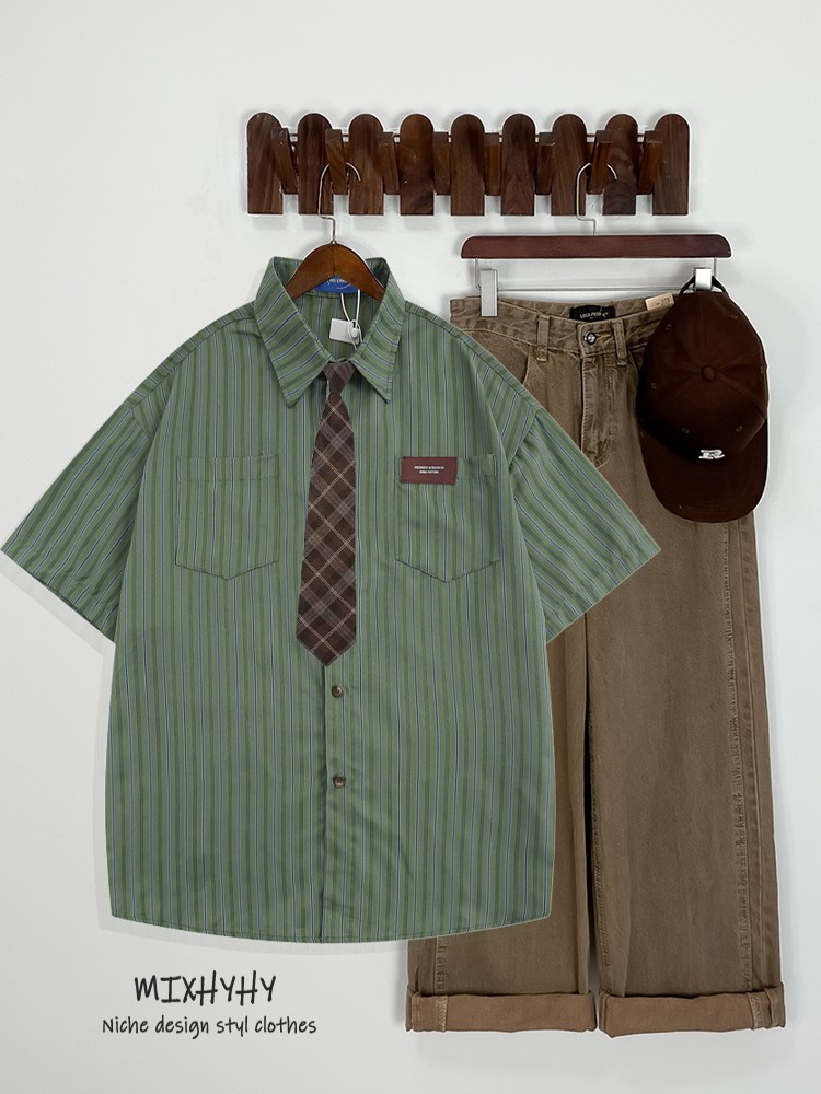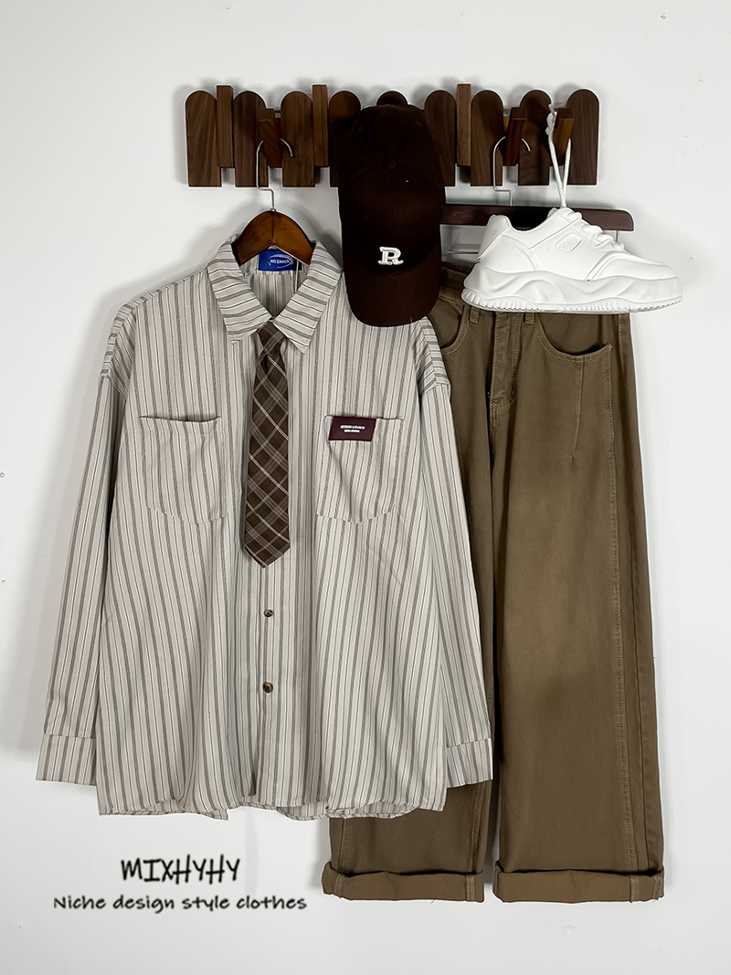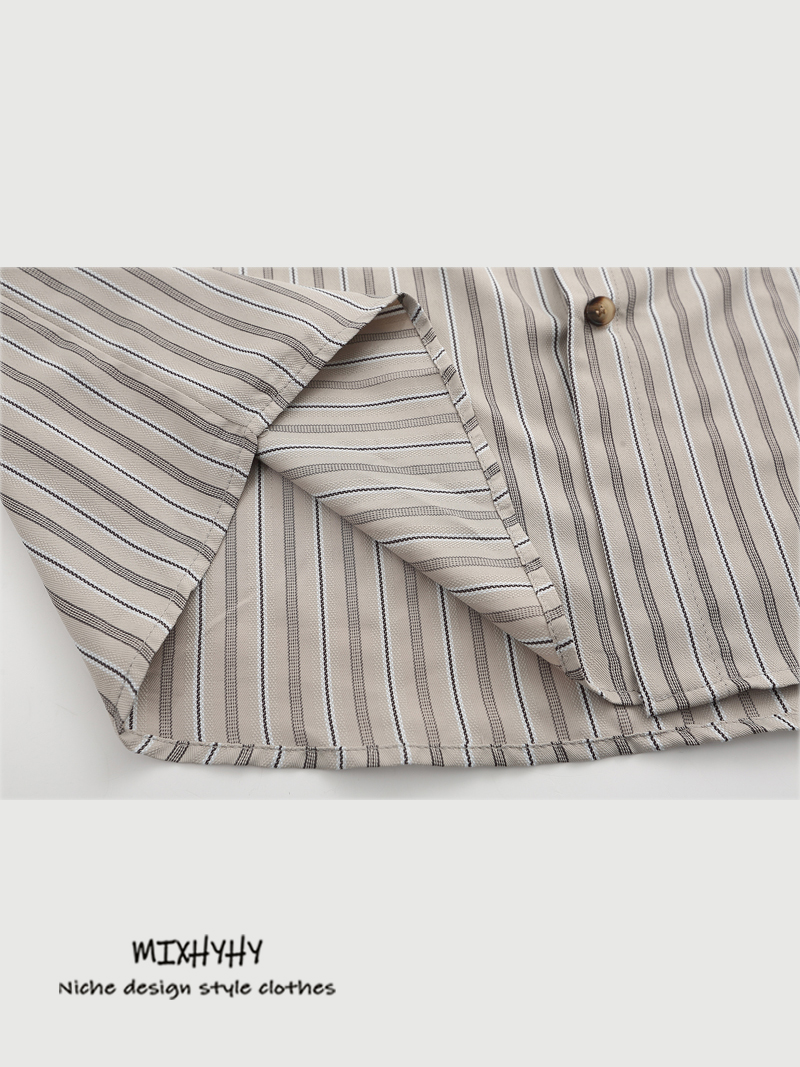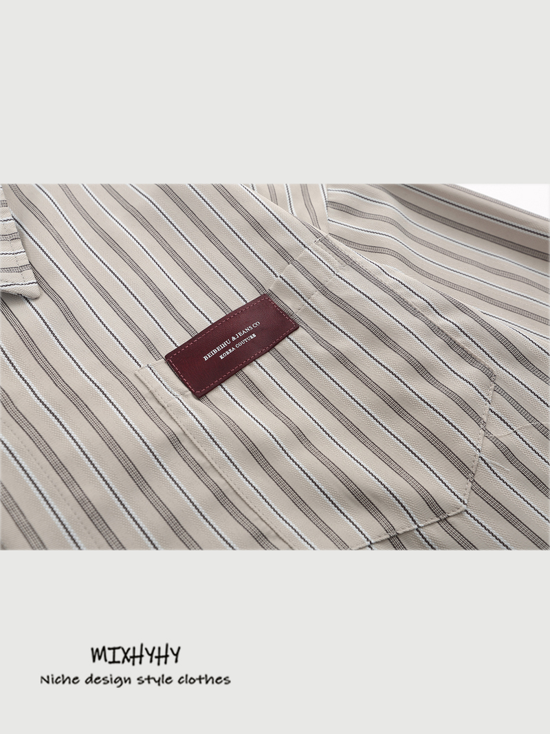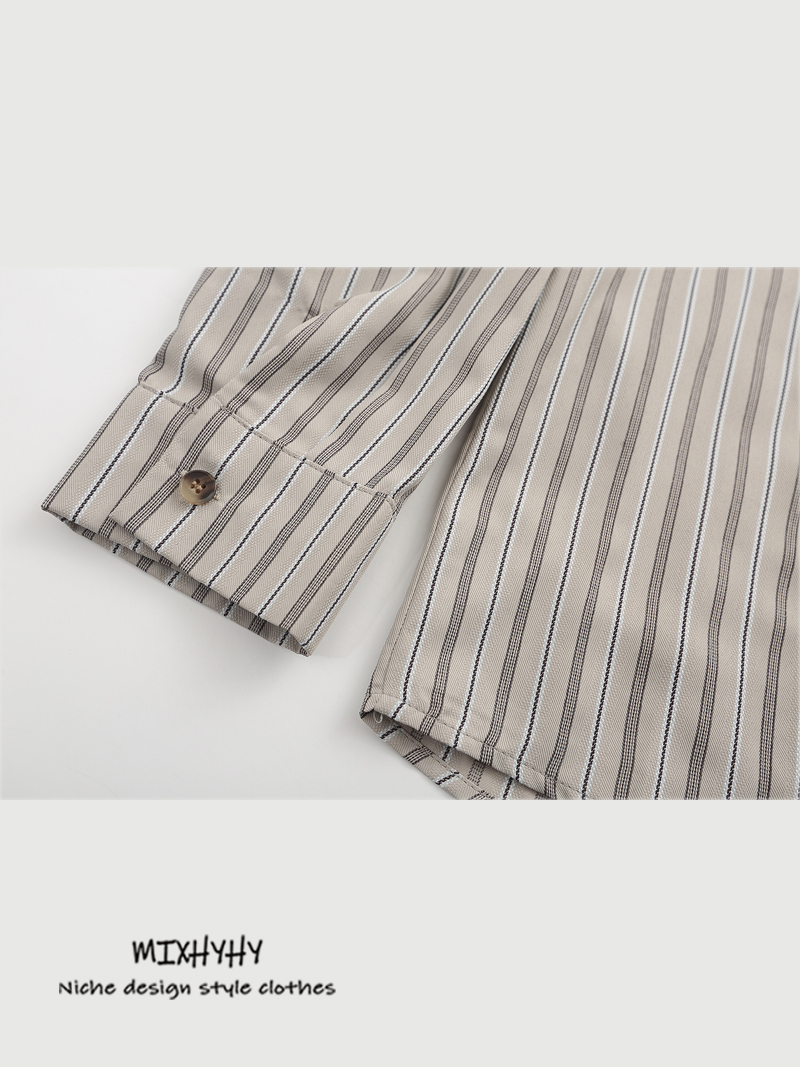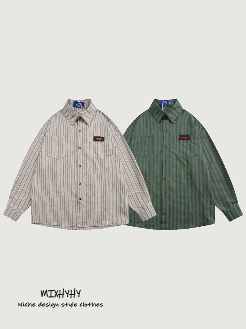 MIXHYHY Trendy Retro Preppy style Stripes Long sleeves Shirt Men and Women Loose Easiest for match Stacked Casual Shirt Autumn