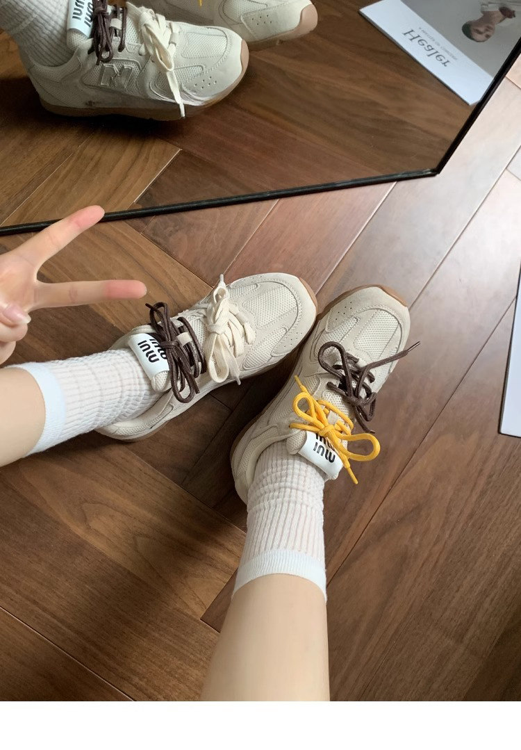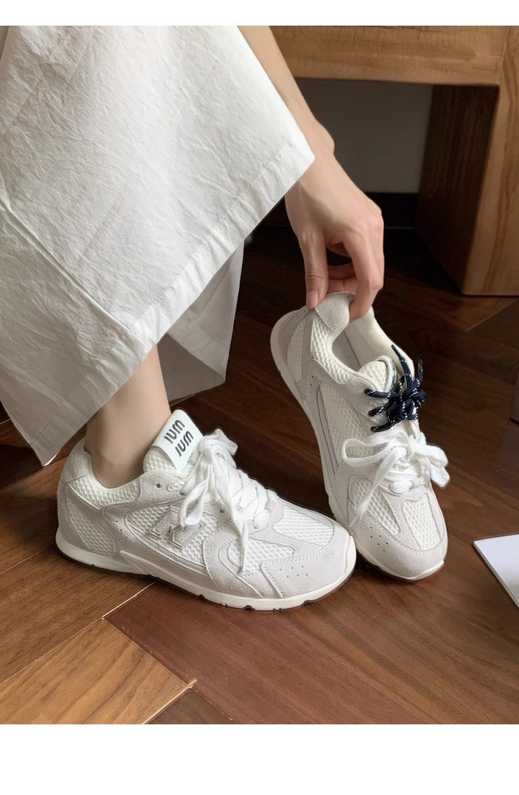 Italy Sanli~Retro Internal Height-Increasing Training Shoes for Women, Lace-Up Mesh Breathable Casual Sports Sneakers, Forrest Gump Shoes