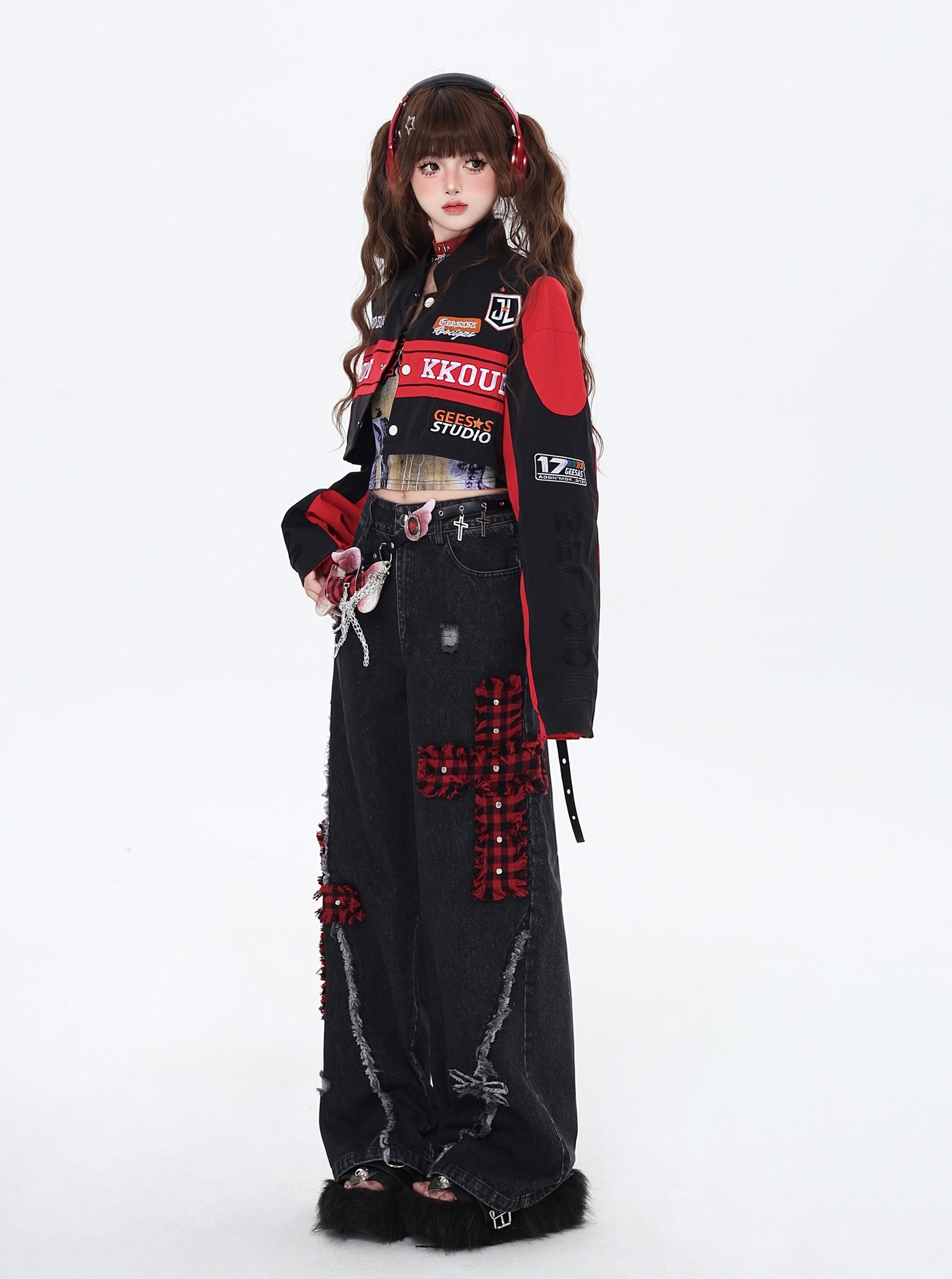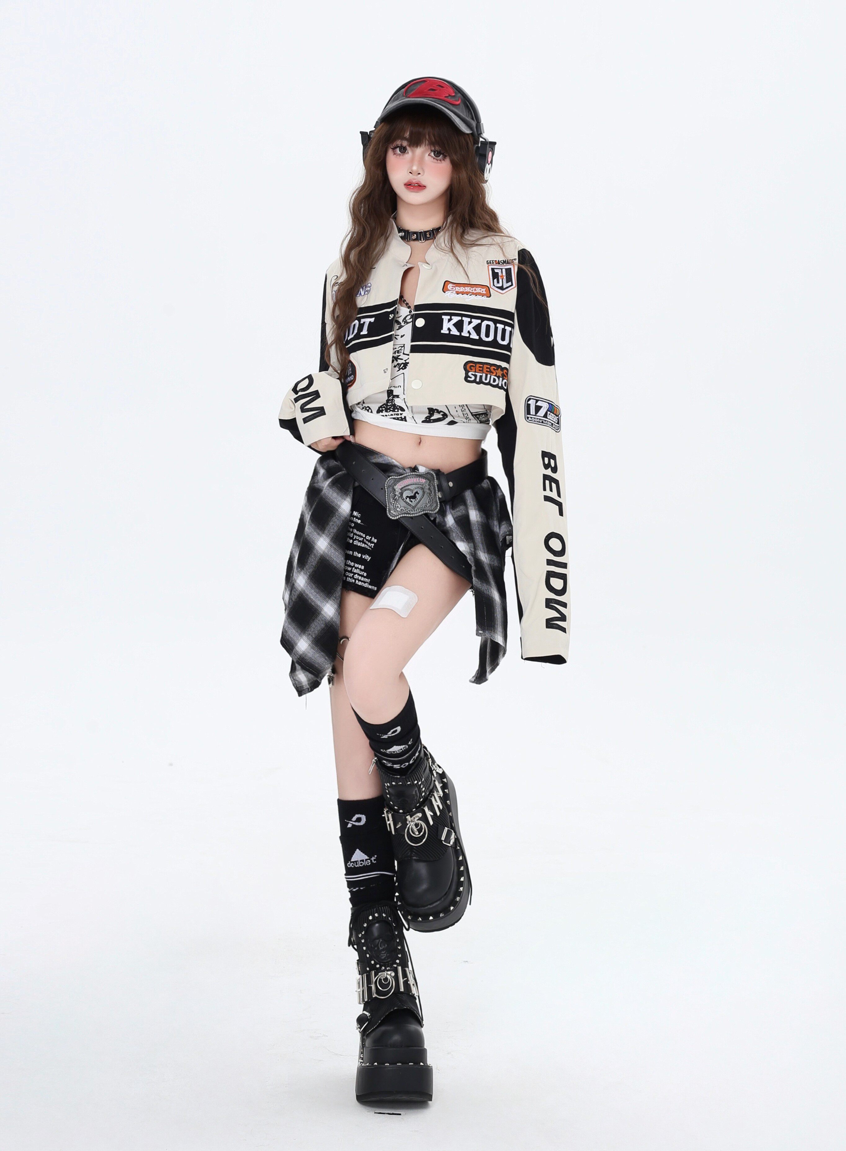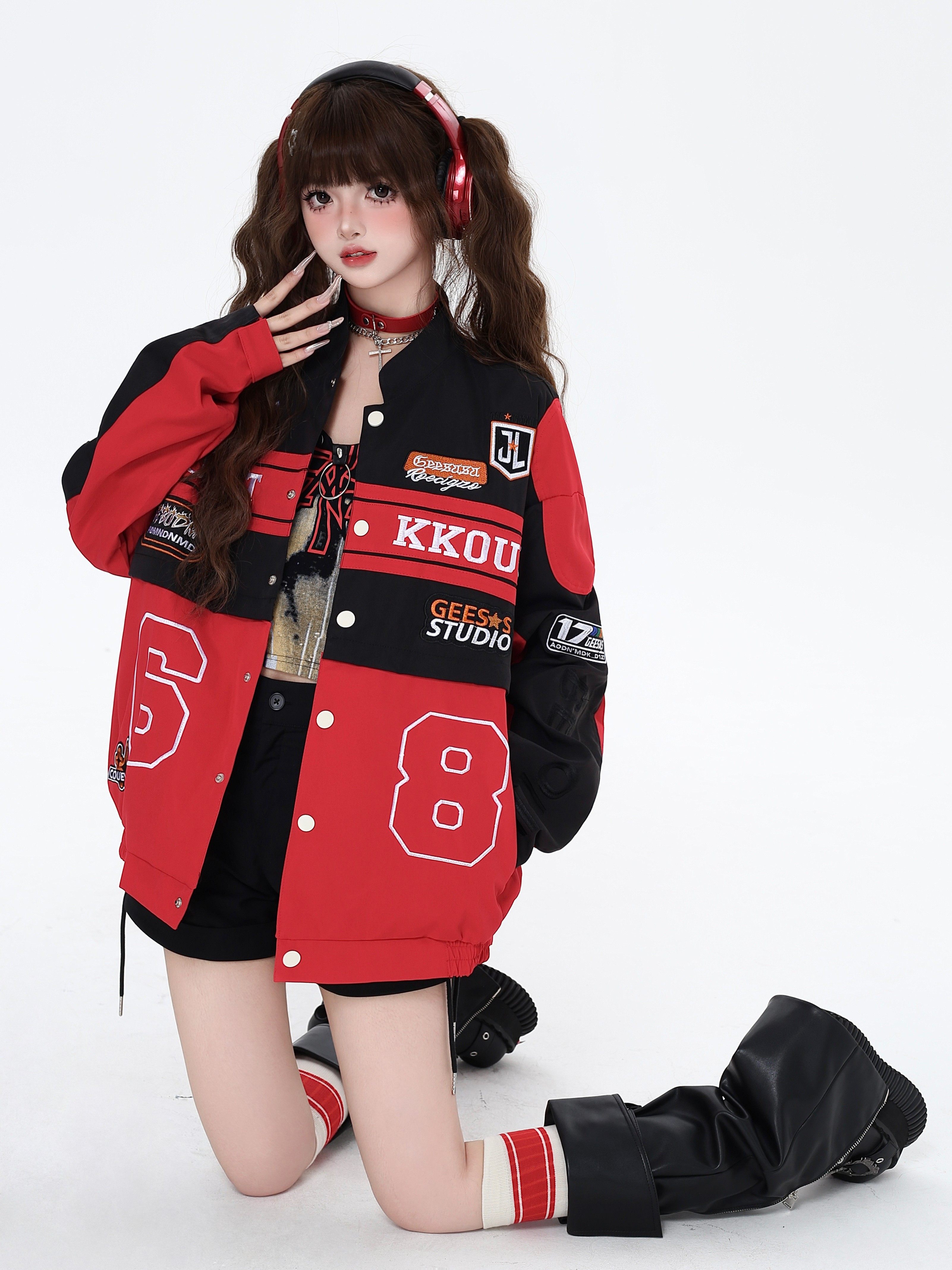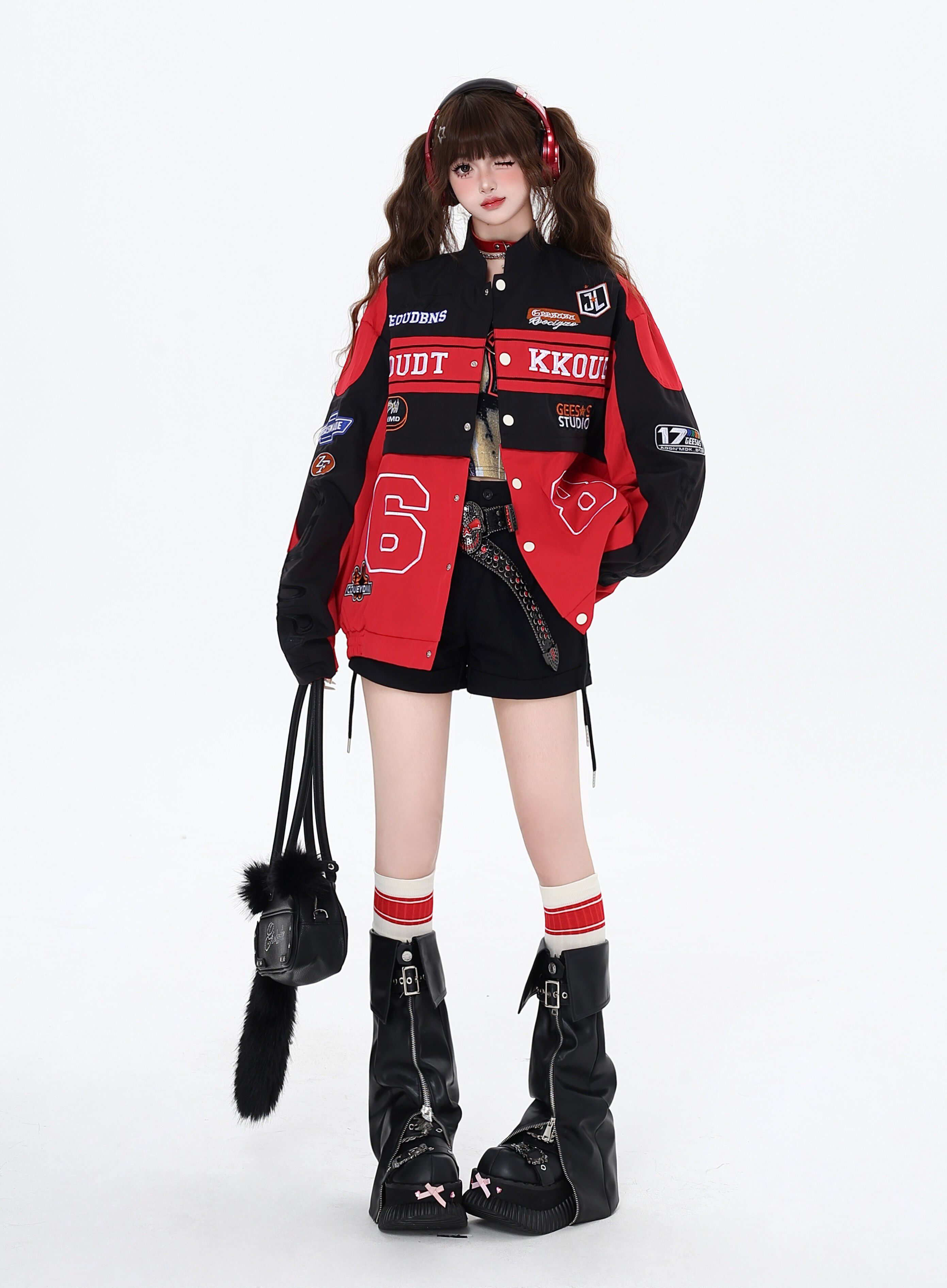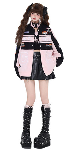 Crazygirl Can Wear It in Two Ways! Biker Girl American Street Style Detachable Long and Short Baseball Jacket