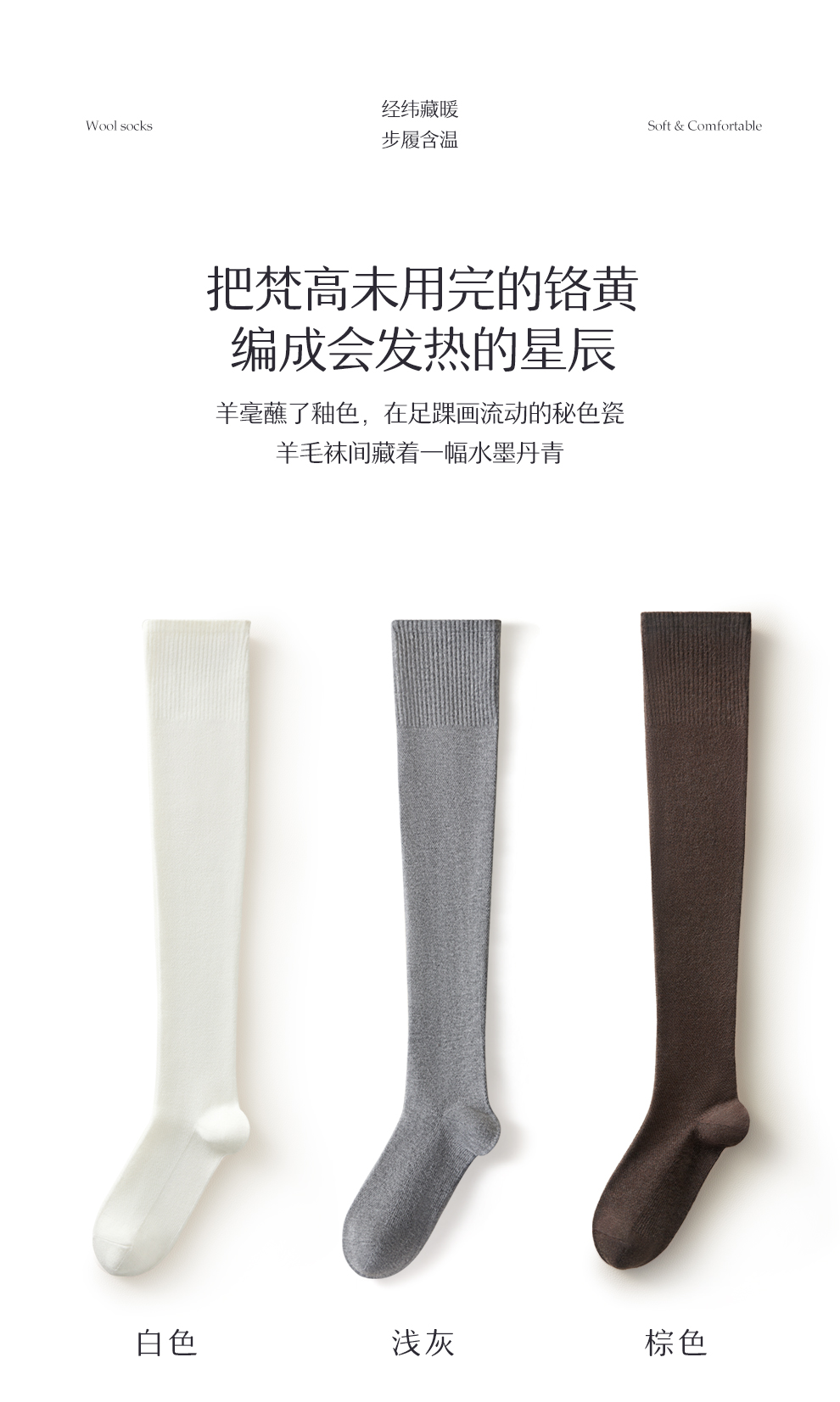 Wool Socks for Women, Over-The-Knee Socks, Autumn and Winter Compression Stockings, Non-Slip Black Thickened Warm Thigh-High Socks for Spring and Autumn