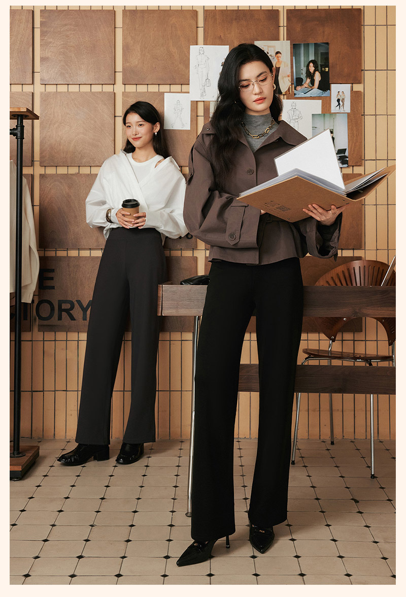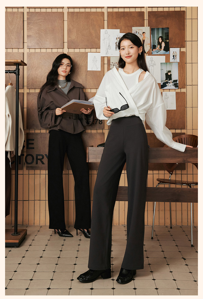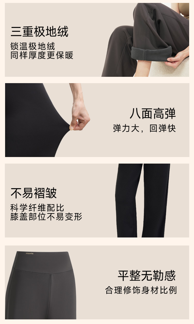 Misswiss Tummy Control Straight-Leg Pants for Women, Winter Windproof Long Pants with Fleece Lining, Warm Black Drapey Wide-Leg Pants