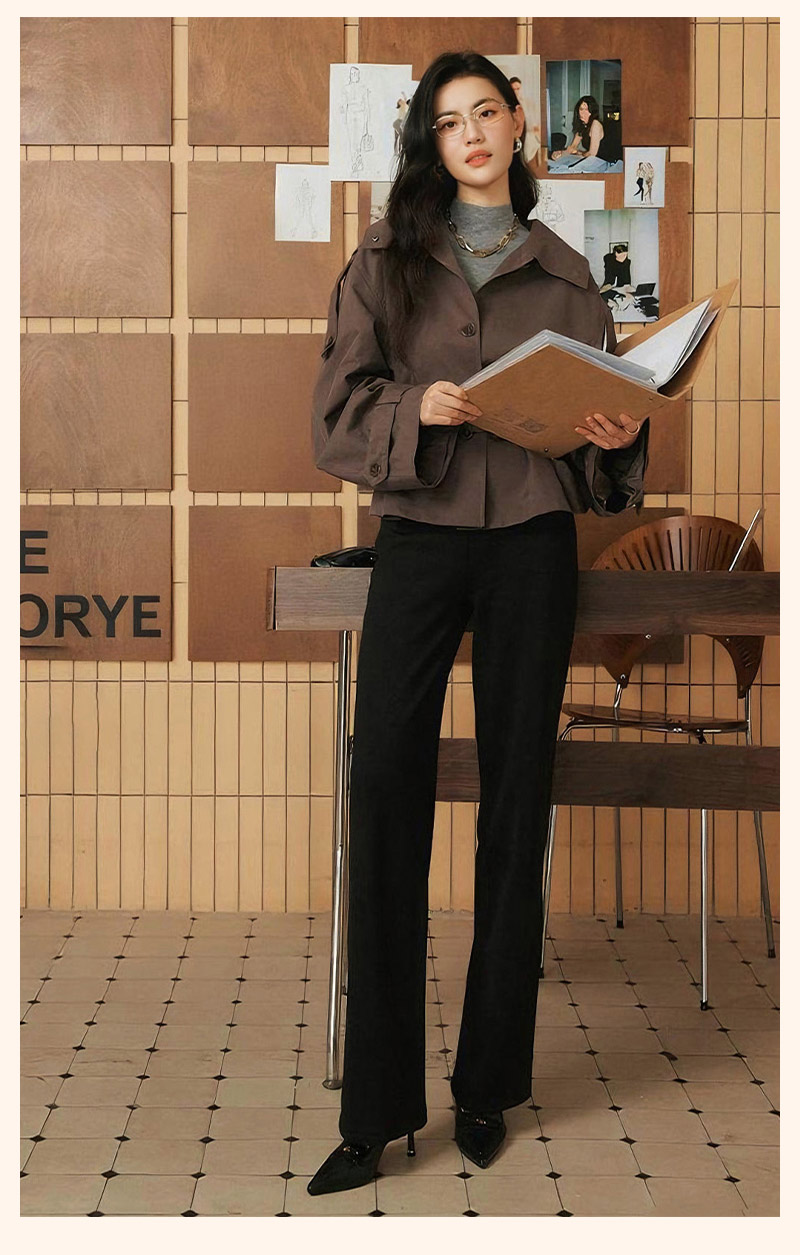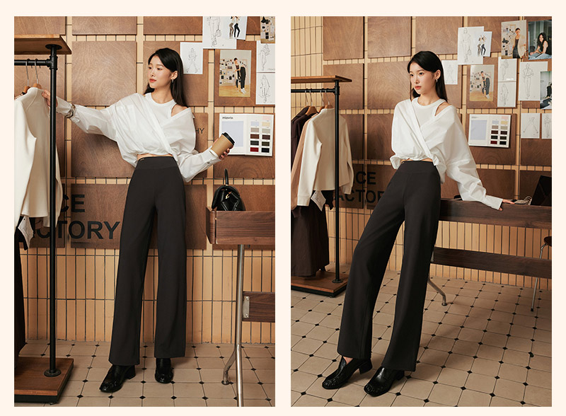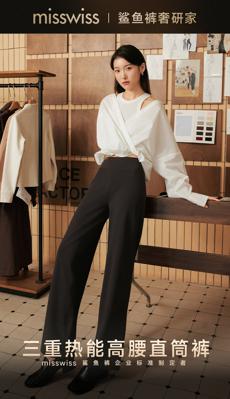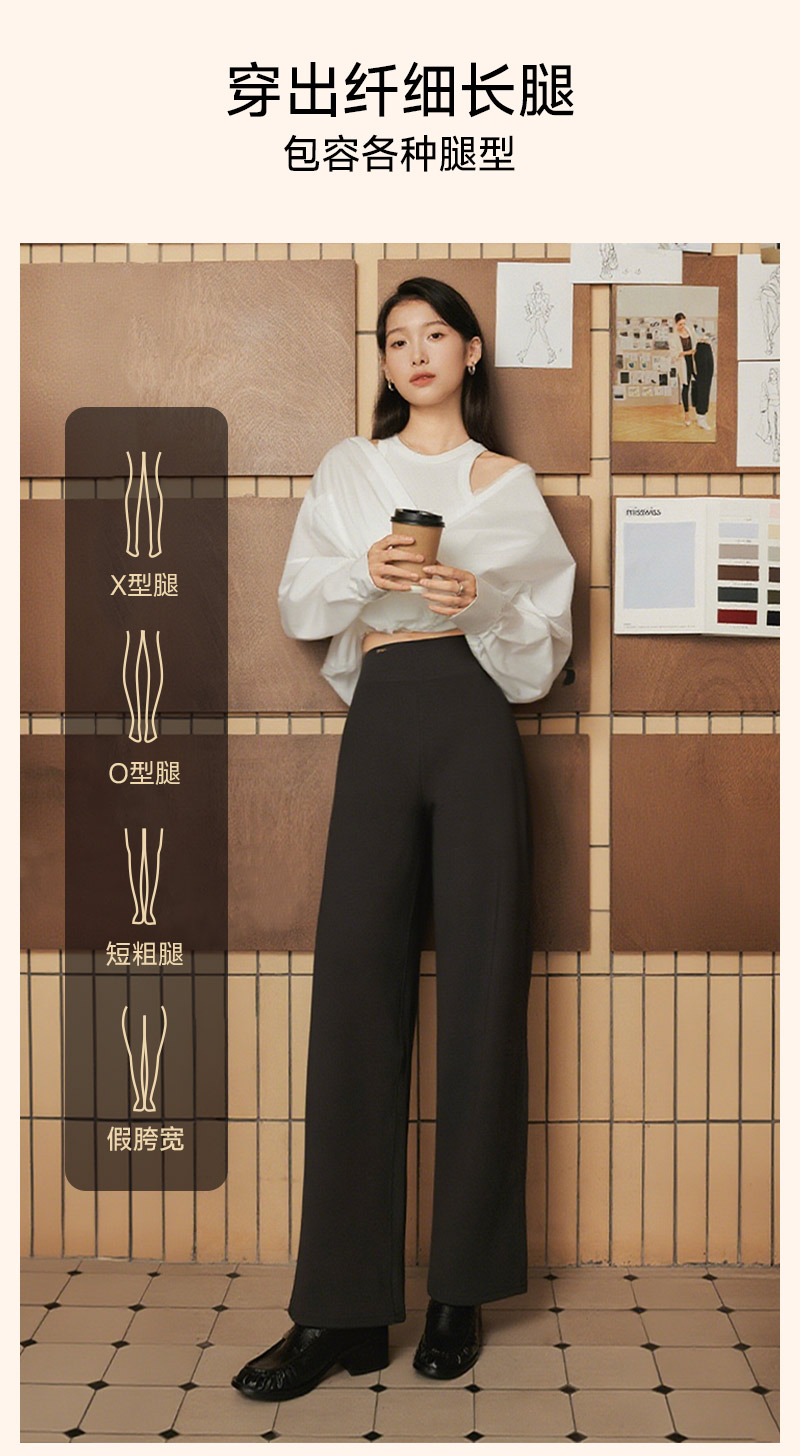 Misswiss Tummy Control Straight-Leg Pants for Women, Winter Windproof Long Pants with Fleece Lining, Warm Black Drapey Wide-Leg Pants