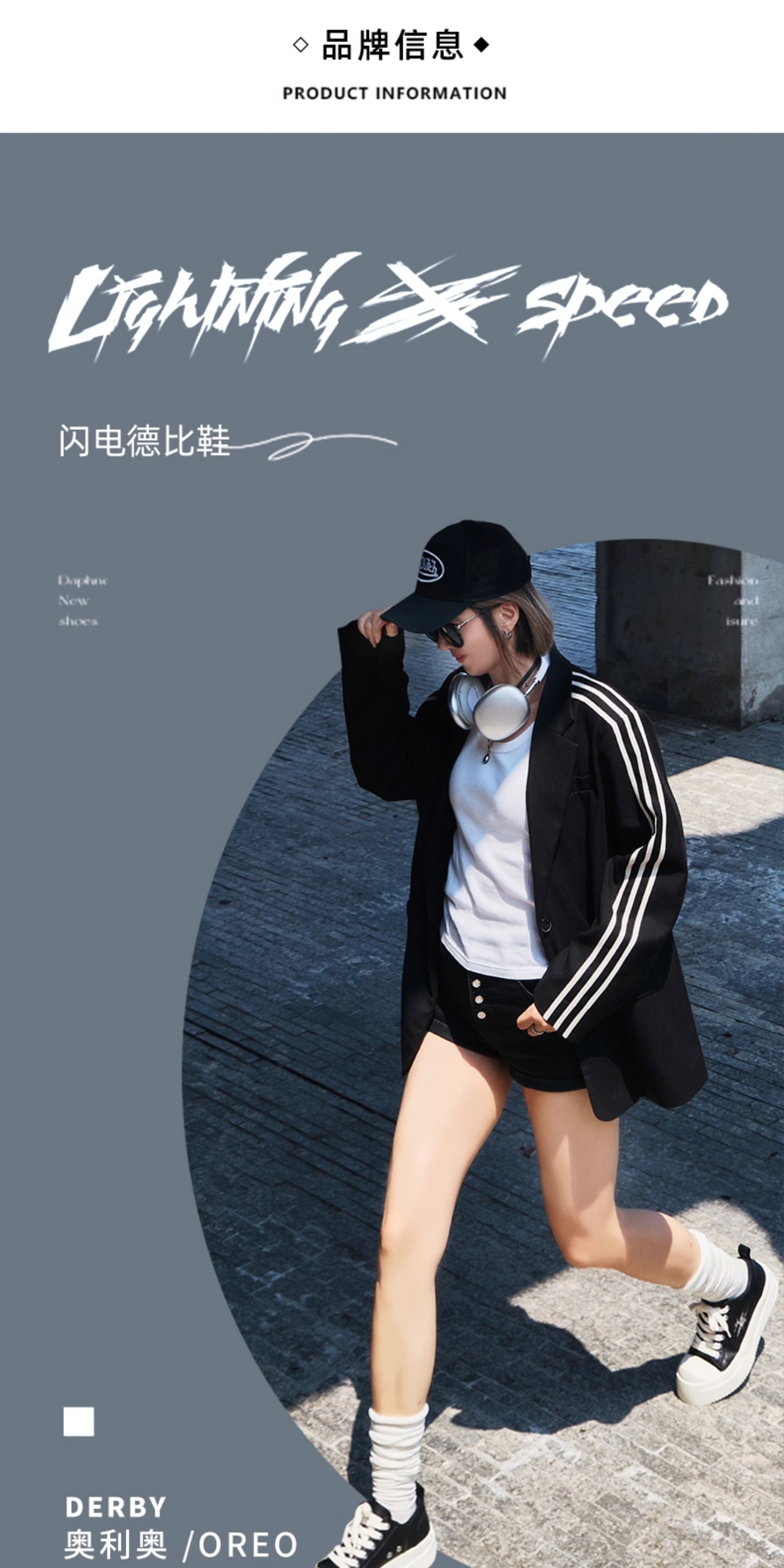 [Oreo Same Style as Jackson Wang] Lightningspeedro Lightning Derby Shoes Height-Increasing Thick-Soled Sneakers for Men