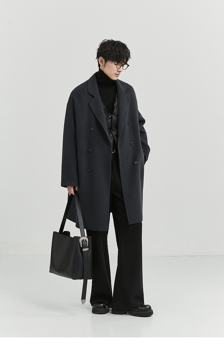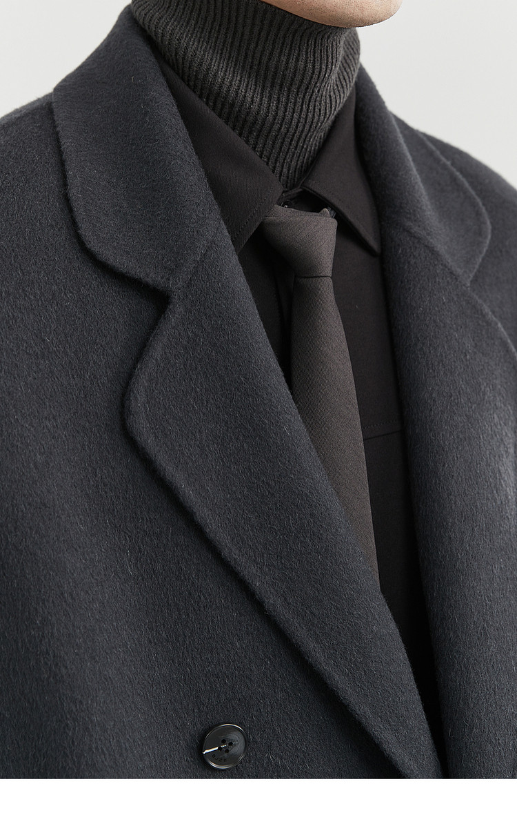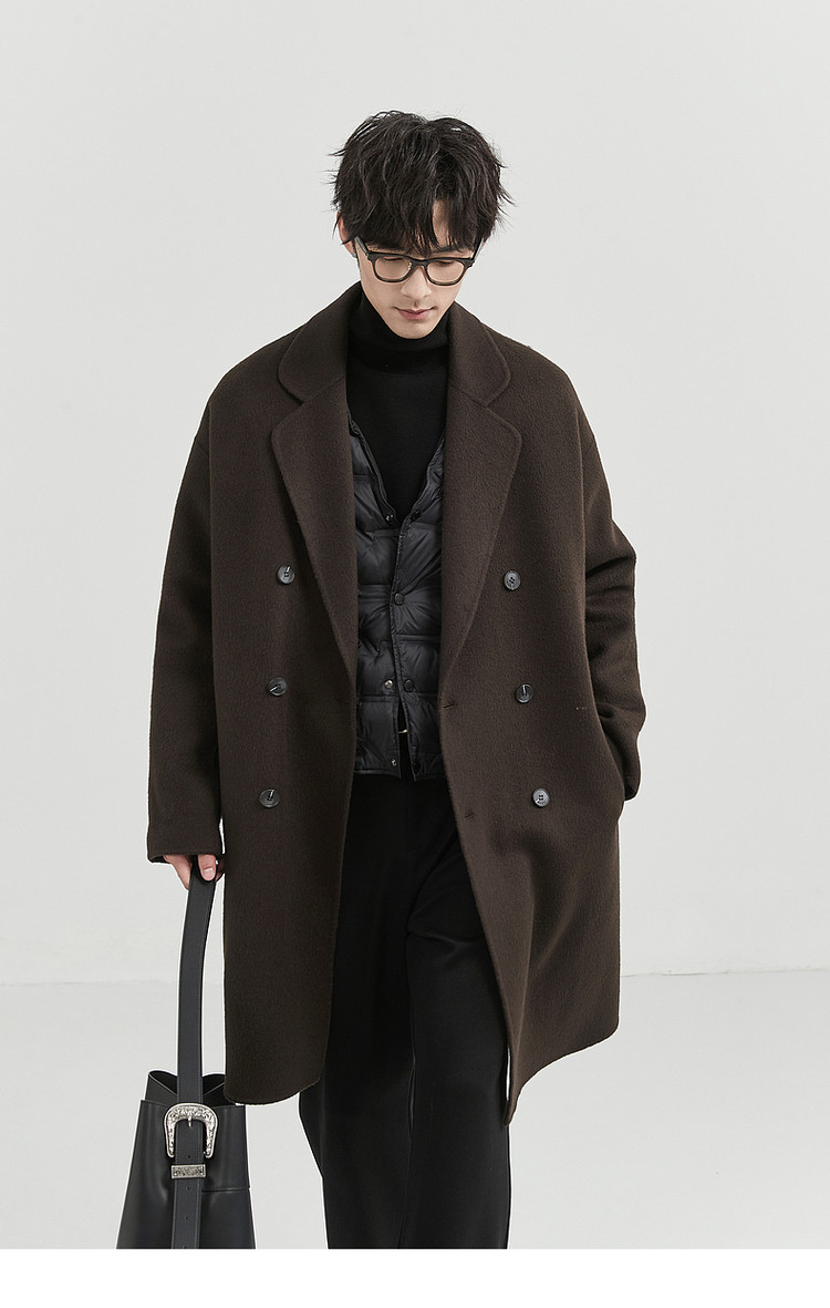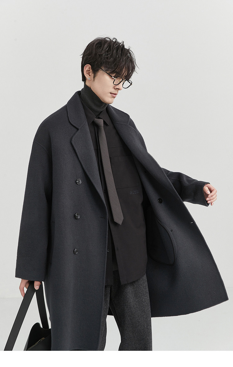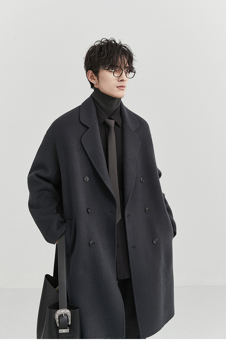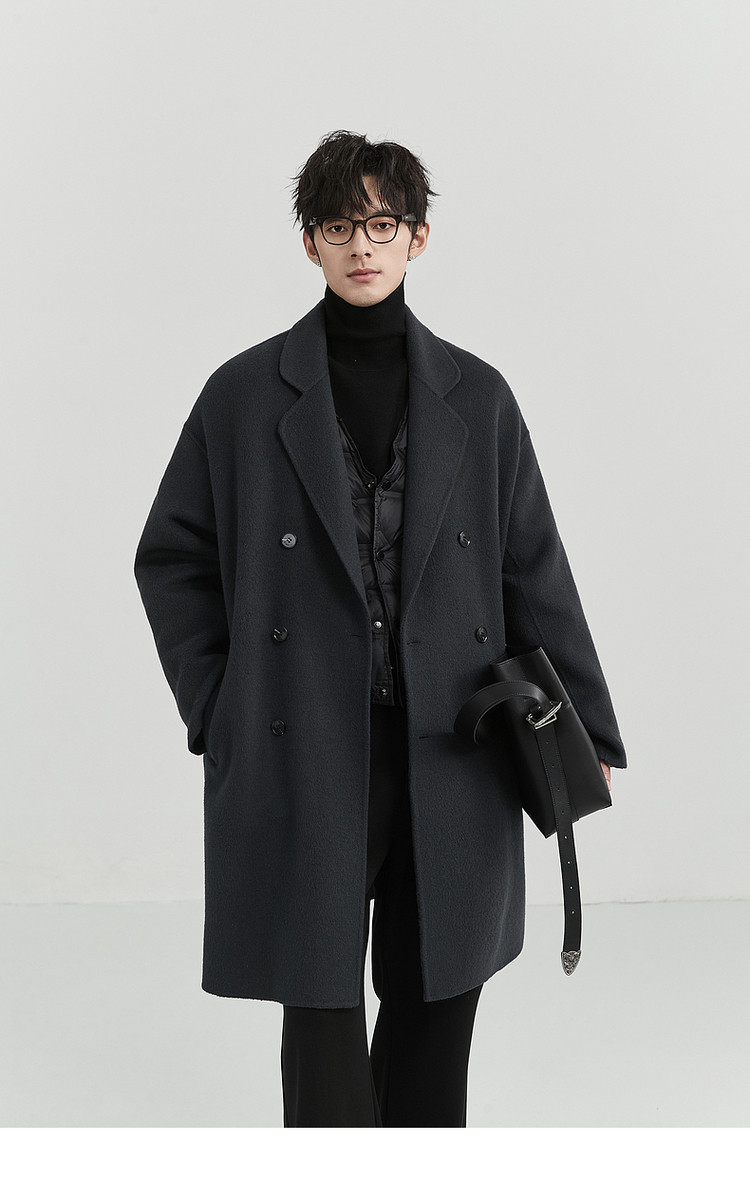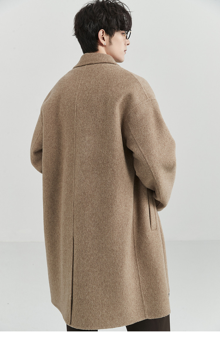 [All Wool/Goose down Lining] Bjze Autumn and Winter Warm Handmade Double-Sided Woolen Coat Mid-Length Men's Jacket