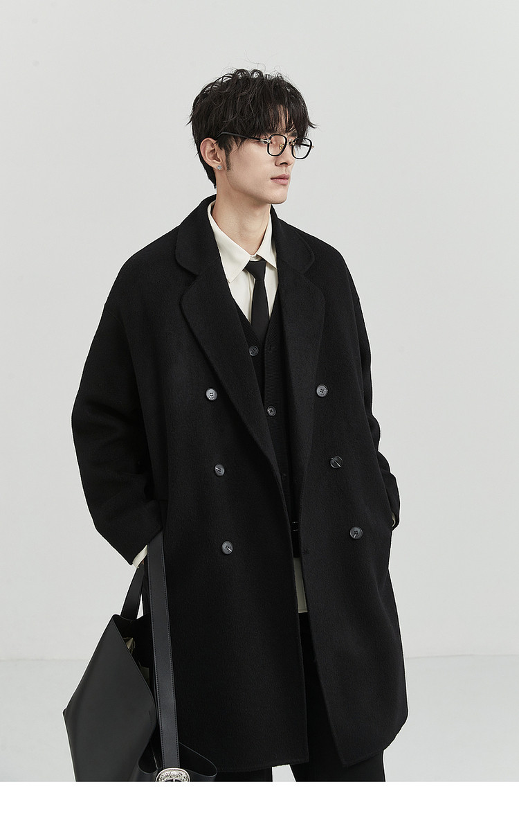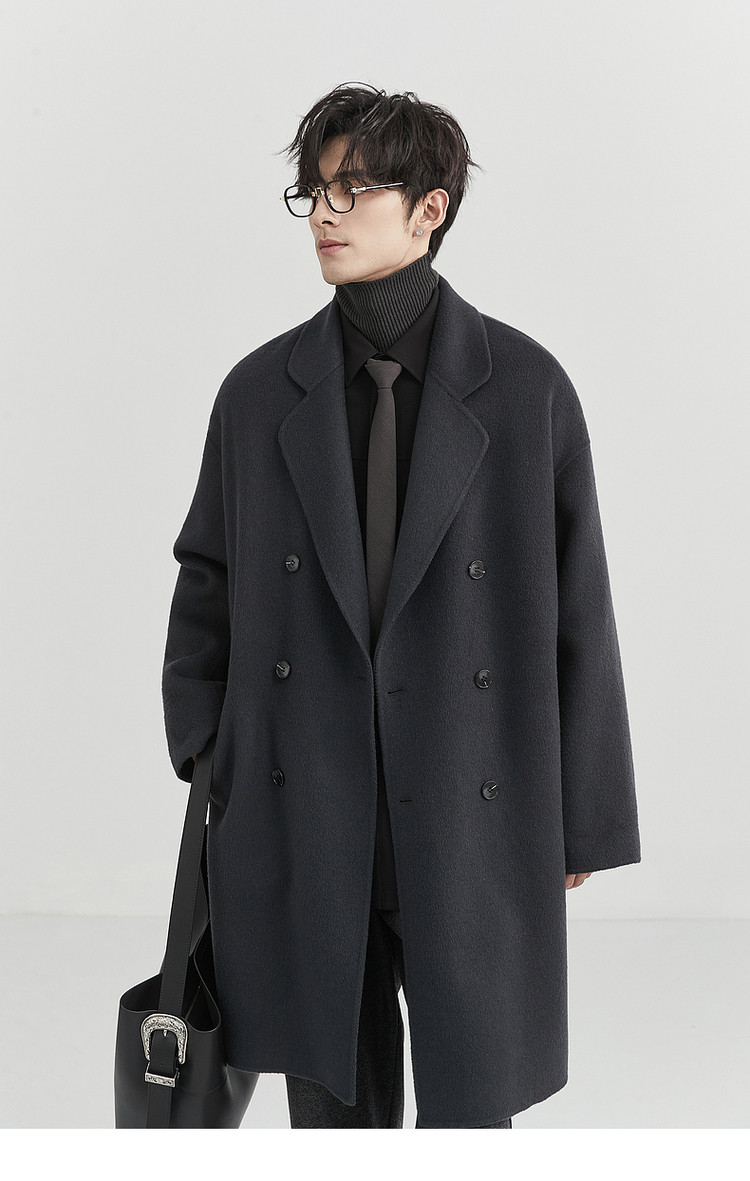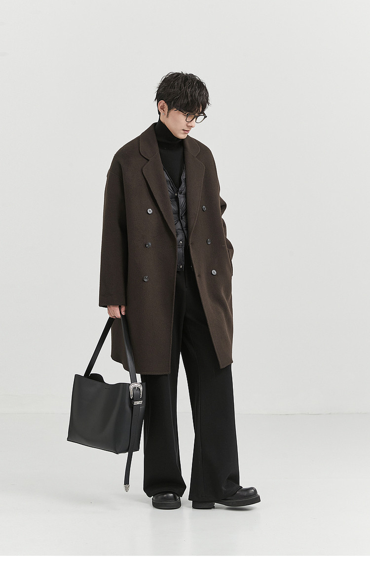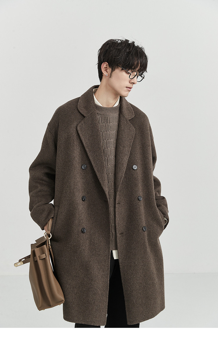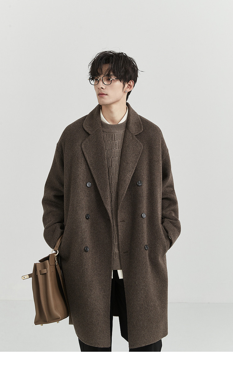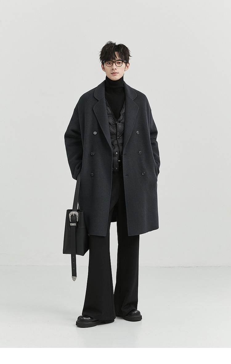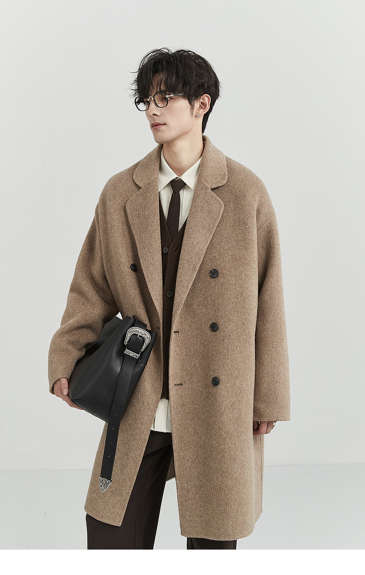 [All Wool/Goose down Lining] Bjze Autumn and Winter Warm Handmade Double-Sided Woolen Coat Mid-Length Men's Jacket