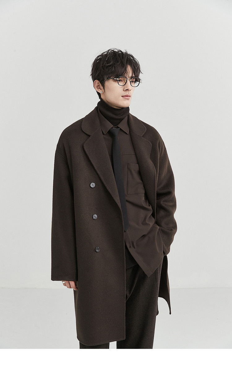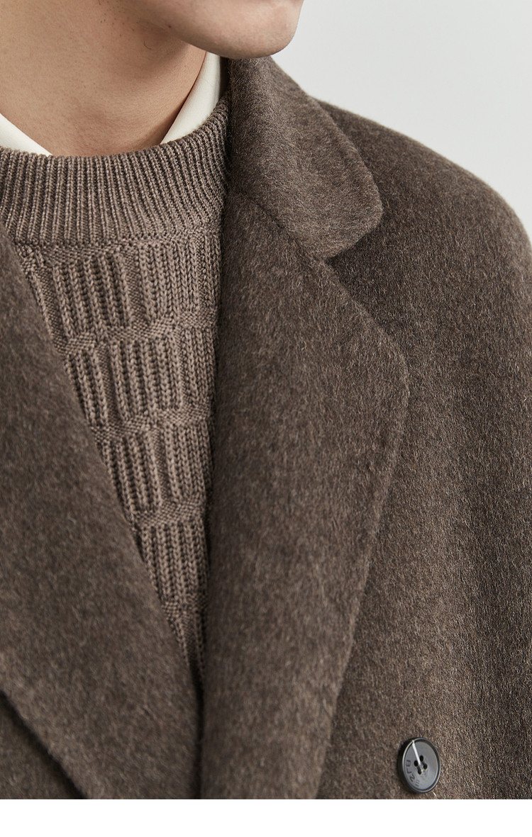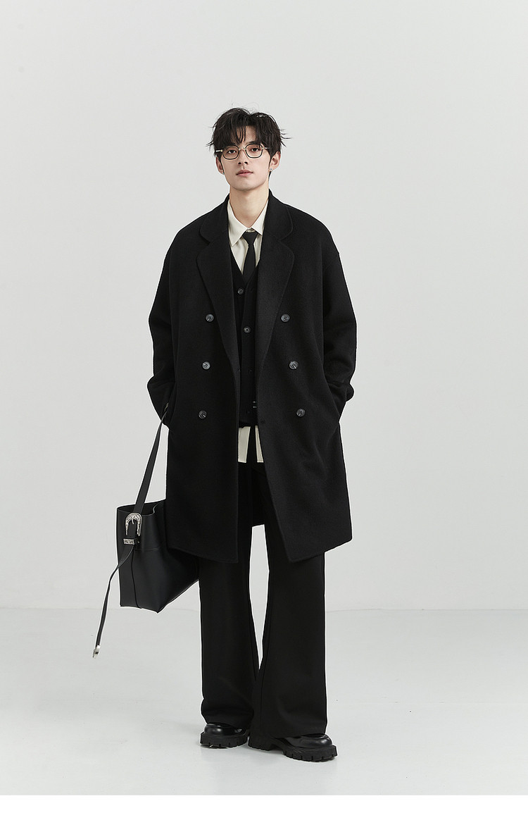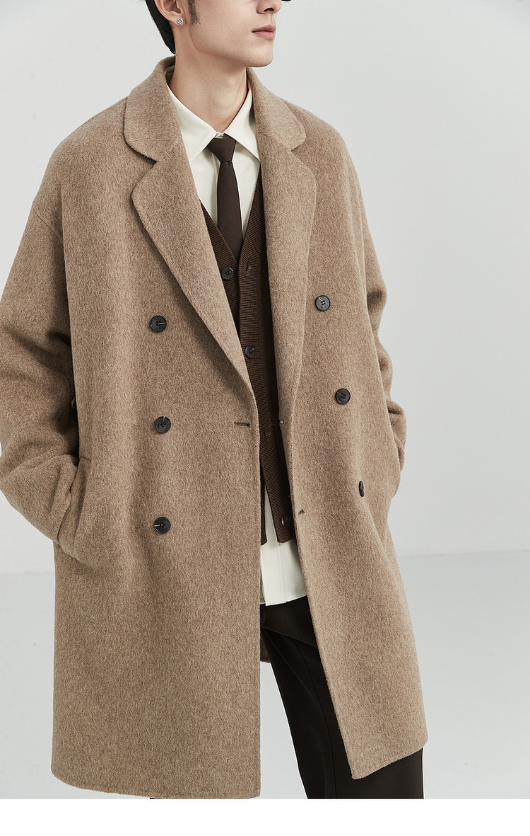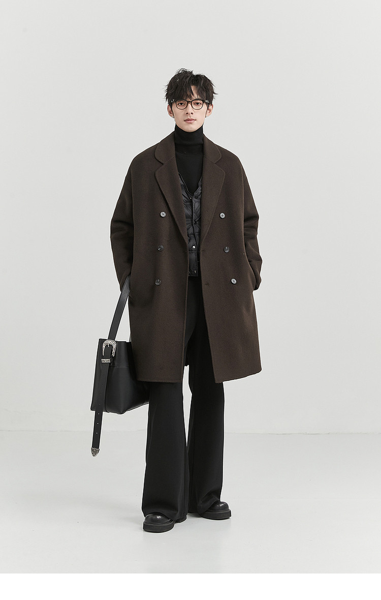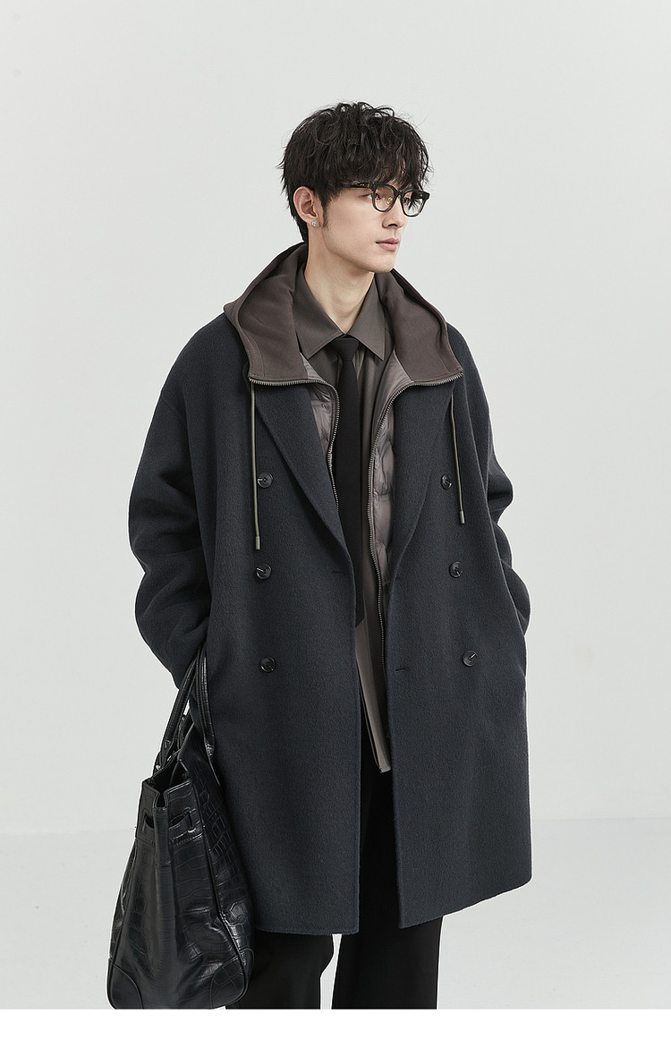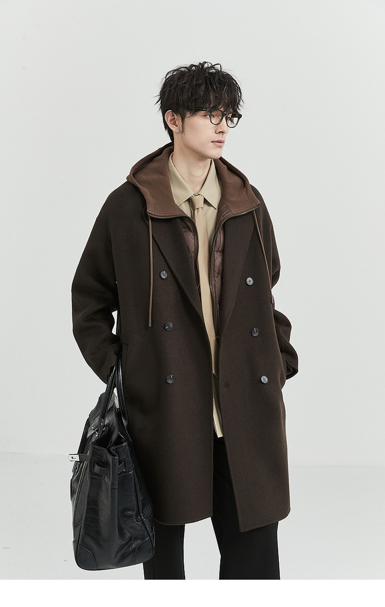 [All Wool/Goose down Lining] Bjze Autumn and Winter Warm Handmade Double-Sided Woolen Coat Mid-Length Men's Jacket