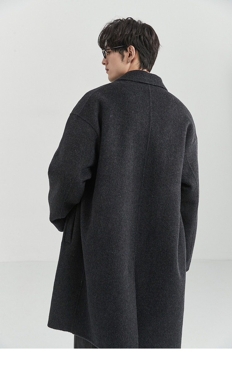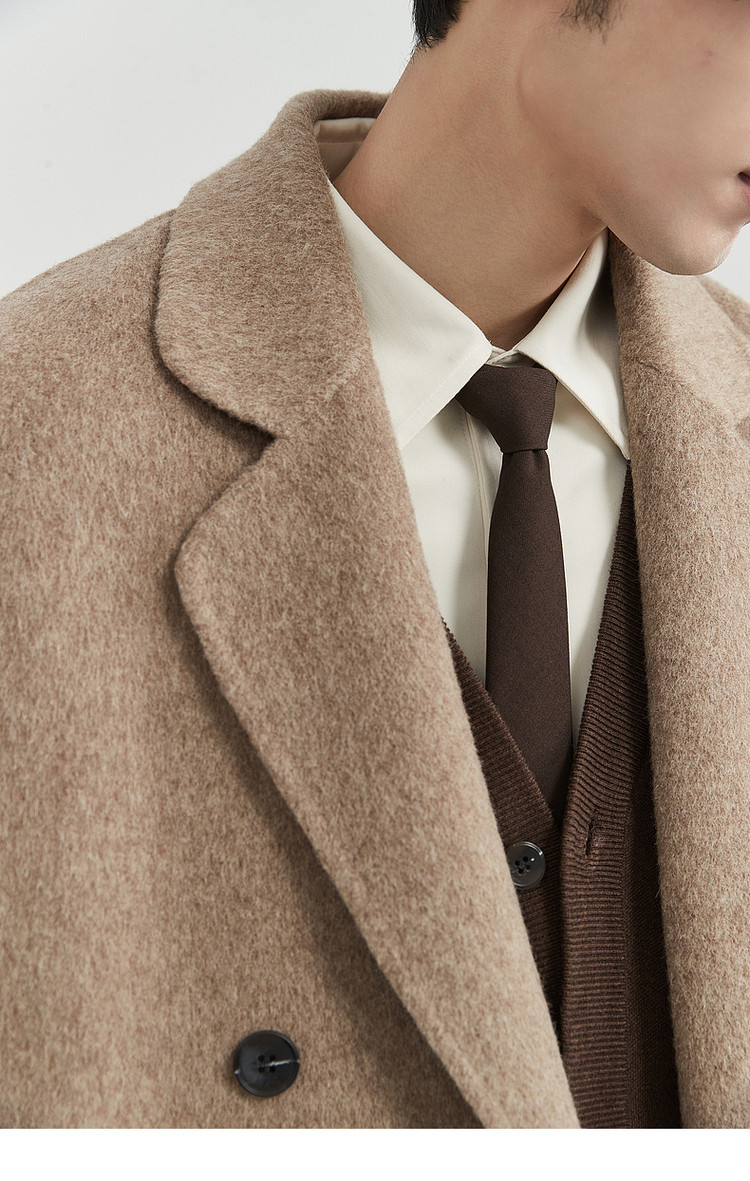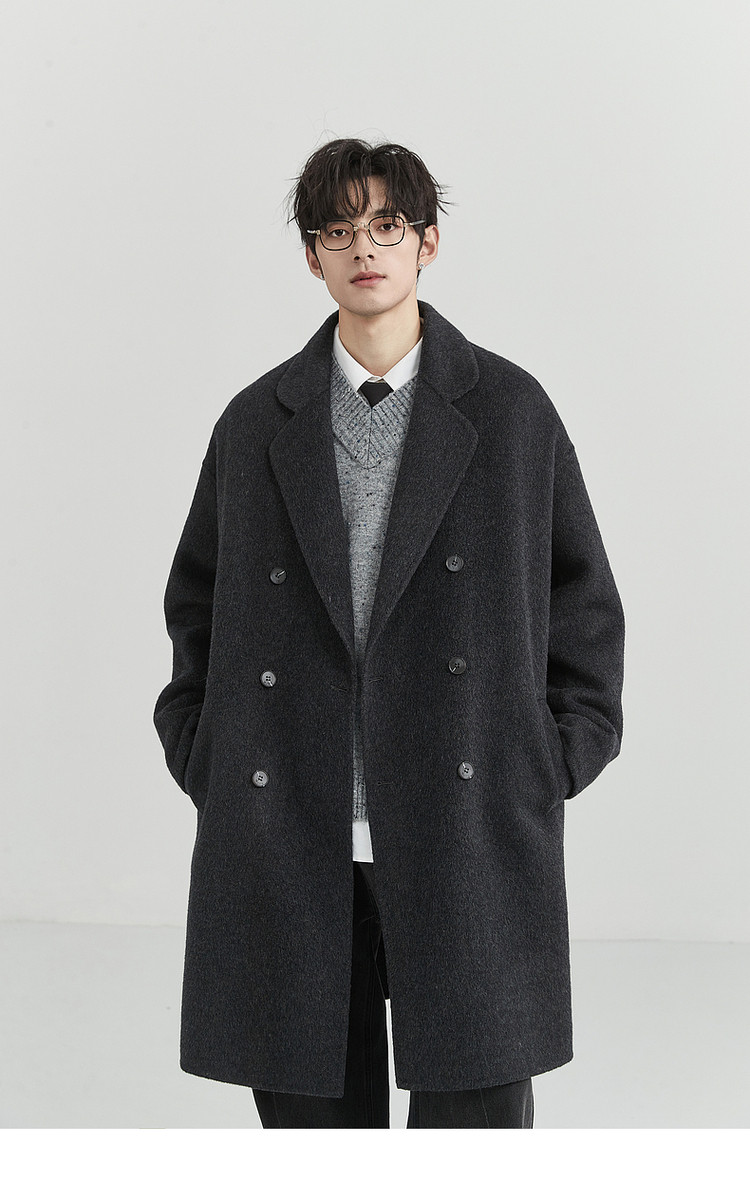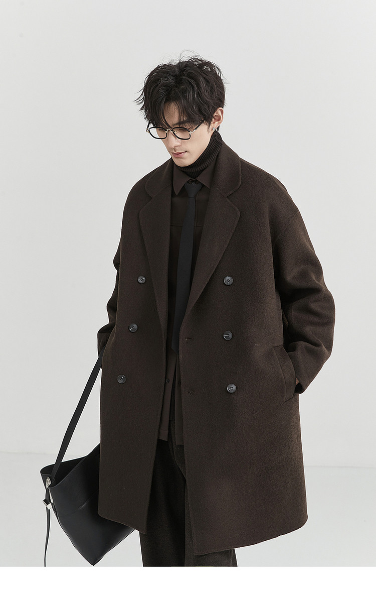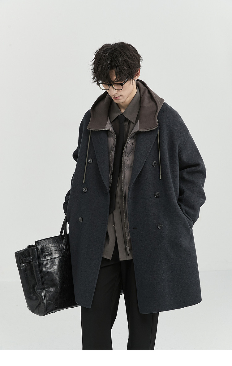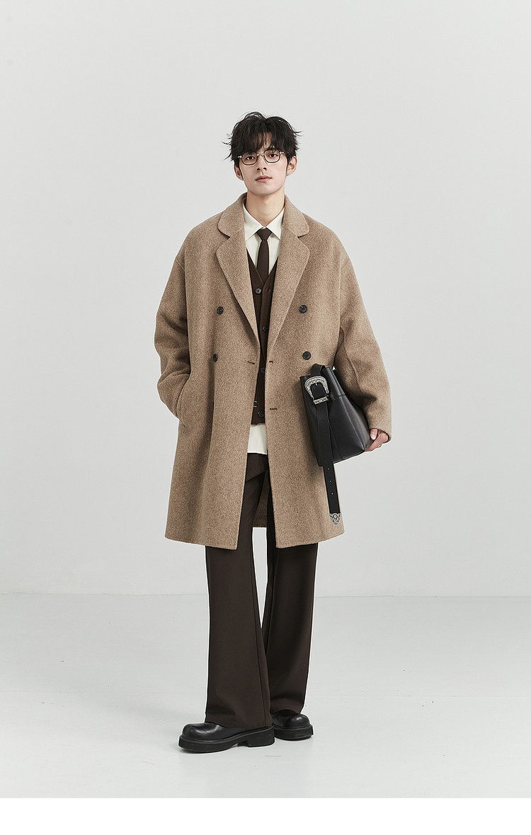 [All Wool/Goose down Lining] Bjze Autumn and Winter Warm Handmade Double-Sided Woolen Coat Mid-Length Men's Jacket