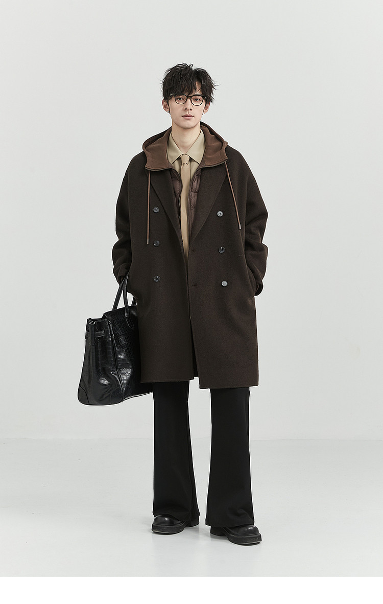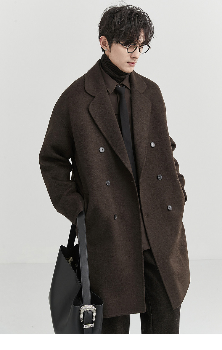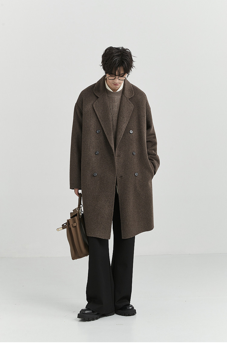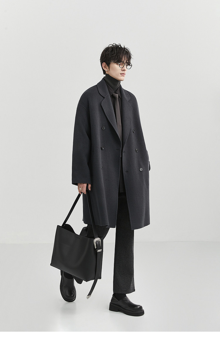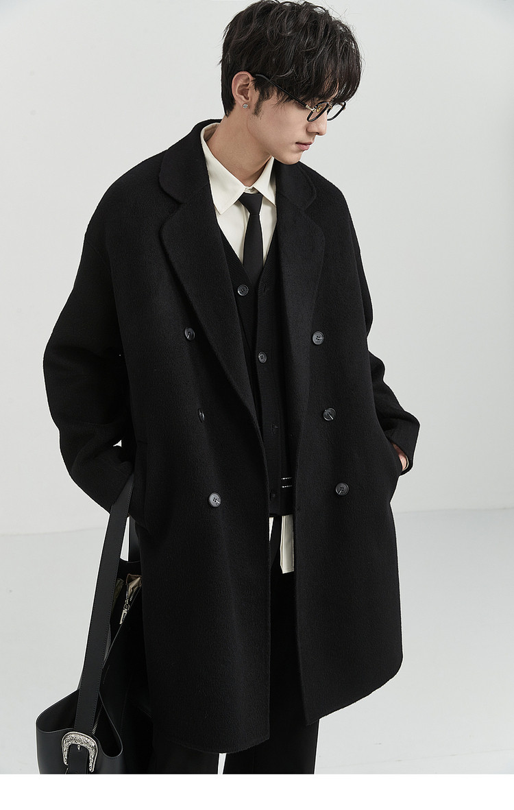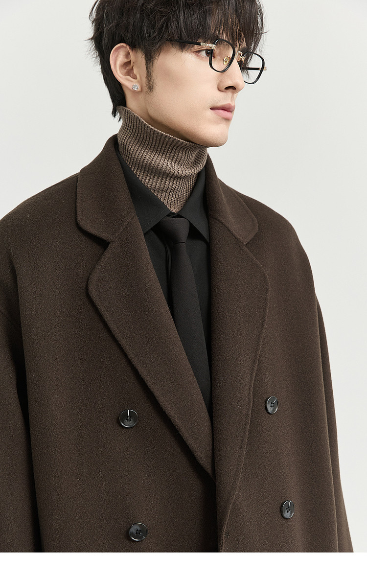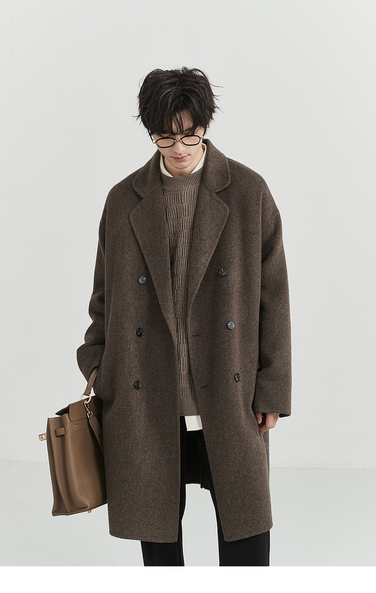 [All Wool/Goose down Lining] Bjze Autumn and Winter Warm Handmade Double-Sided Woolen Coat Mid-Length Men's Jacket