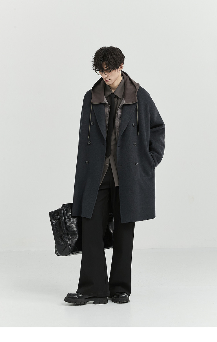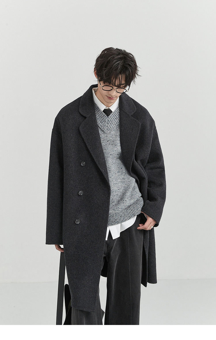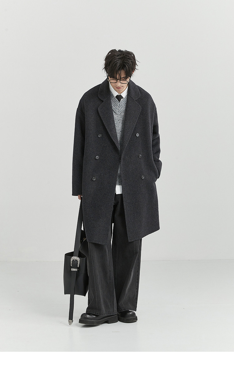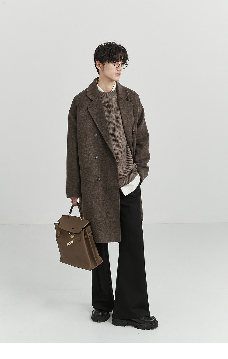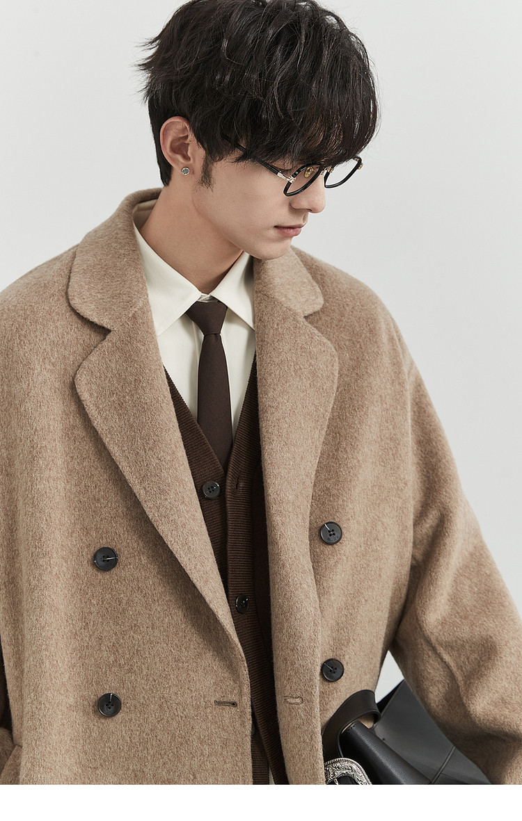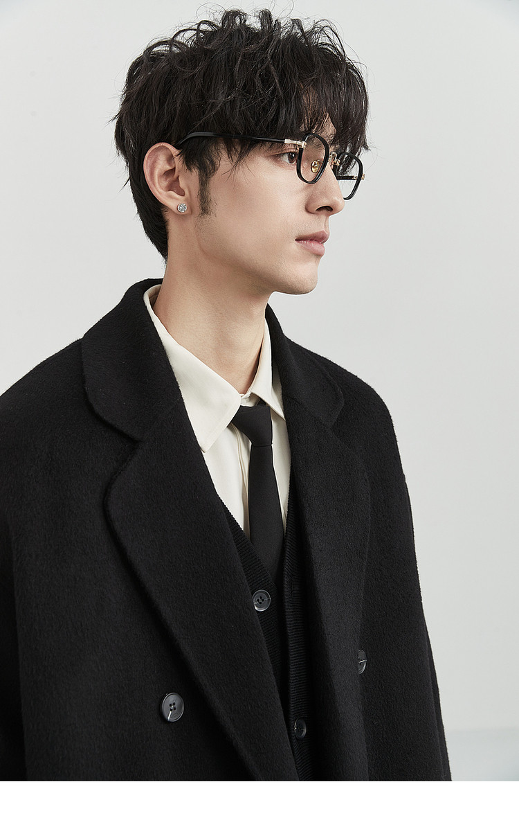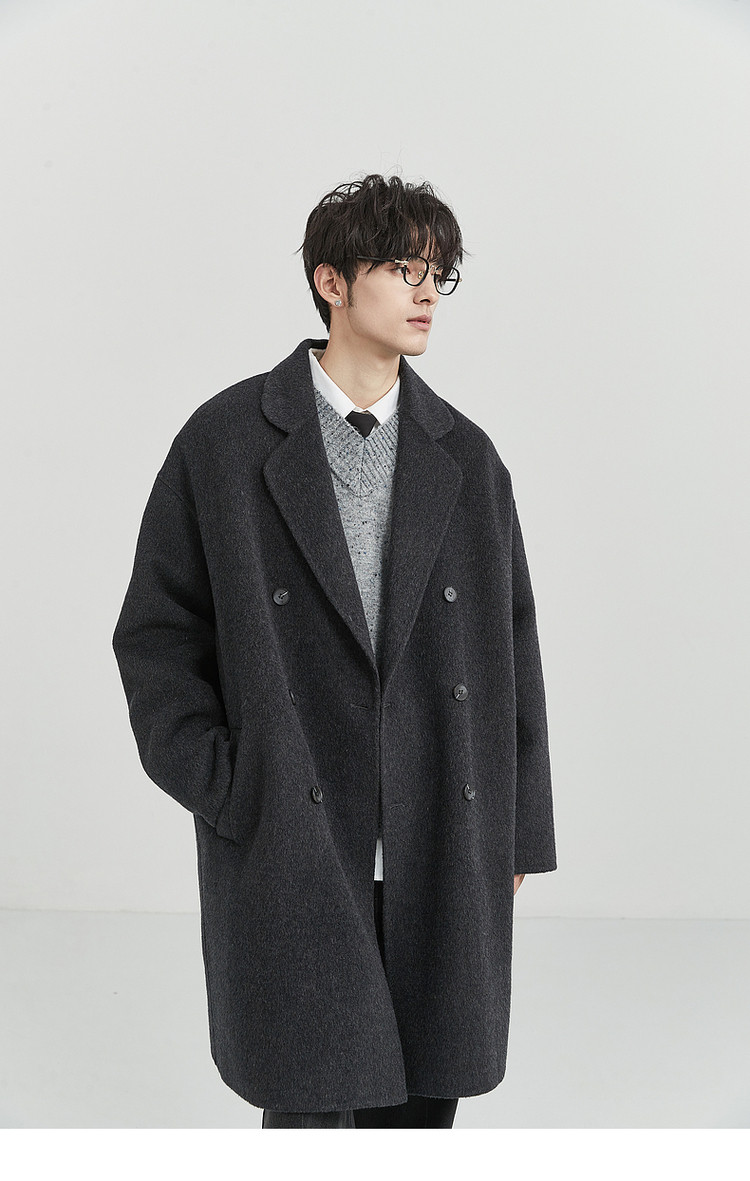 [All Wool/Goose down Lining] Bjze Autumn and Winter Warm Handmade Double-Sided Woolen Coat Mid-Length Men's Jacket