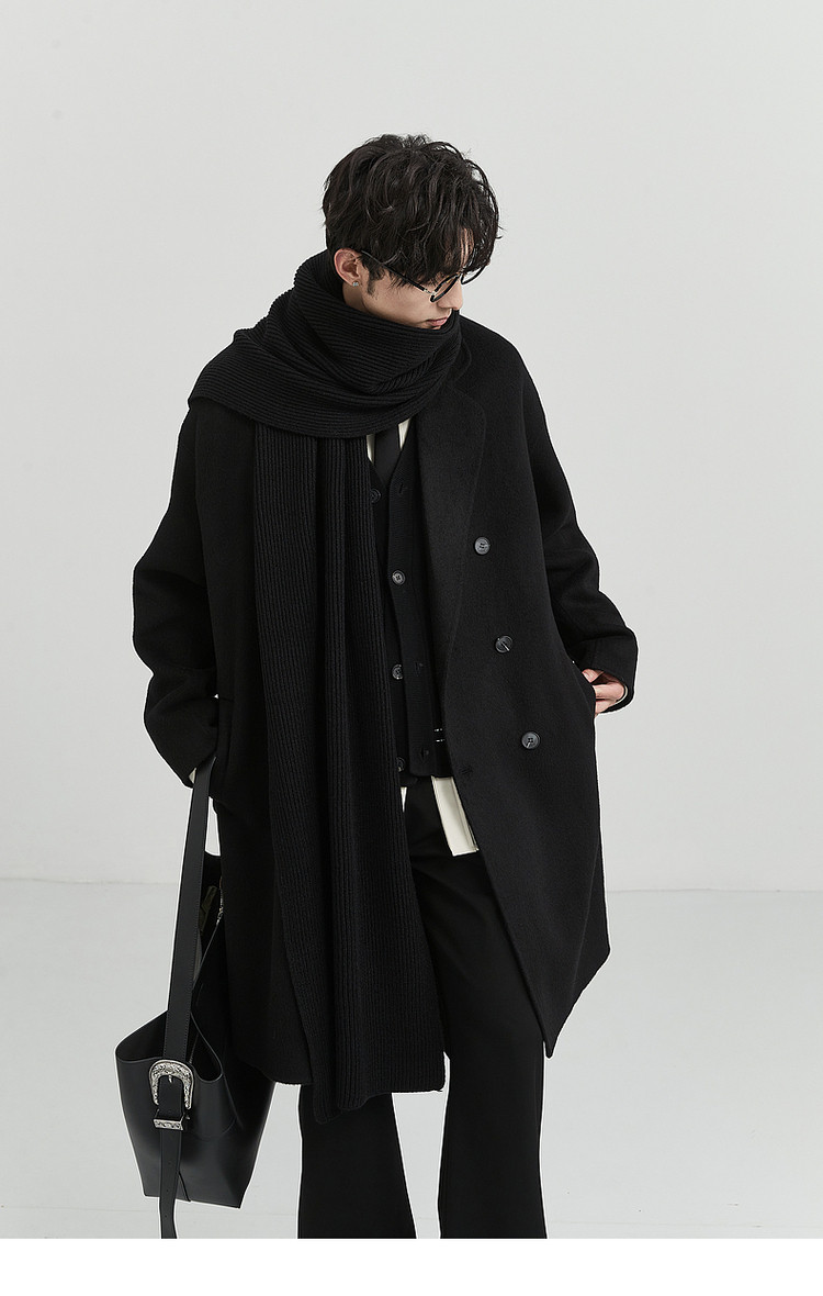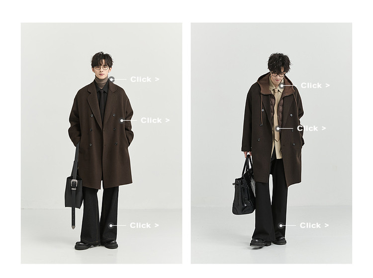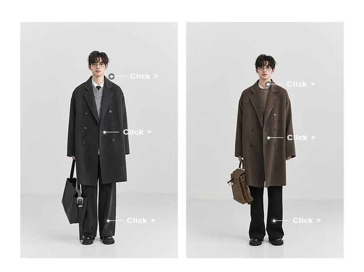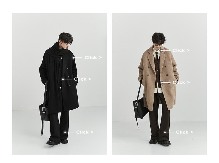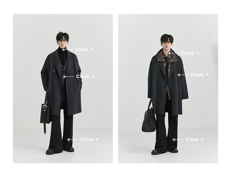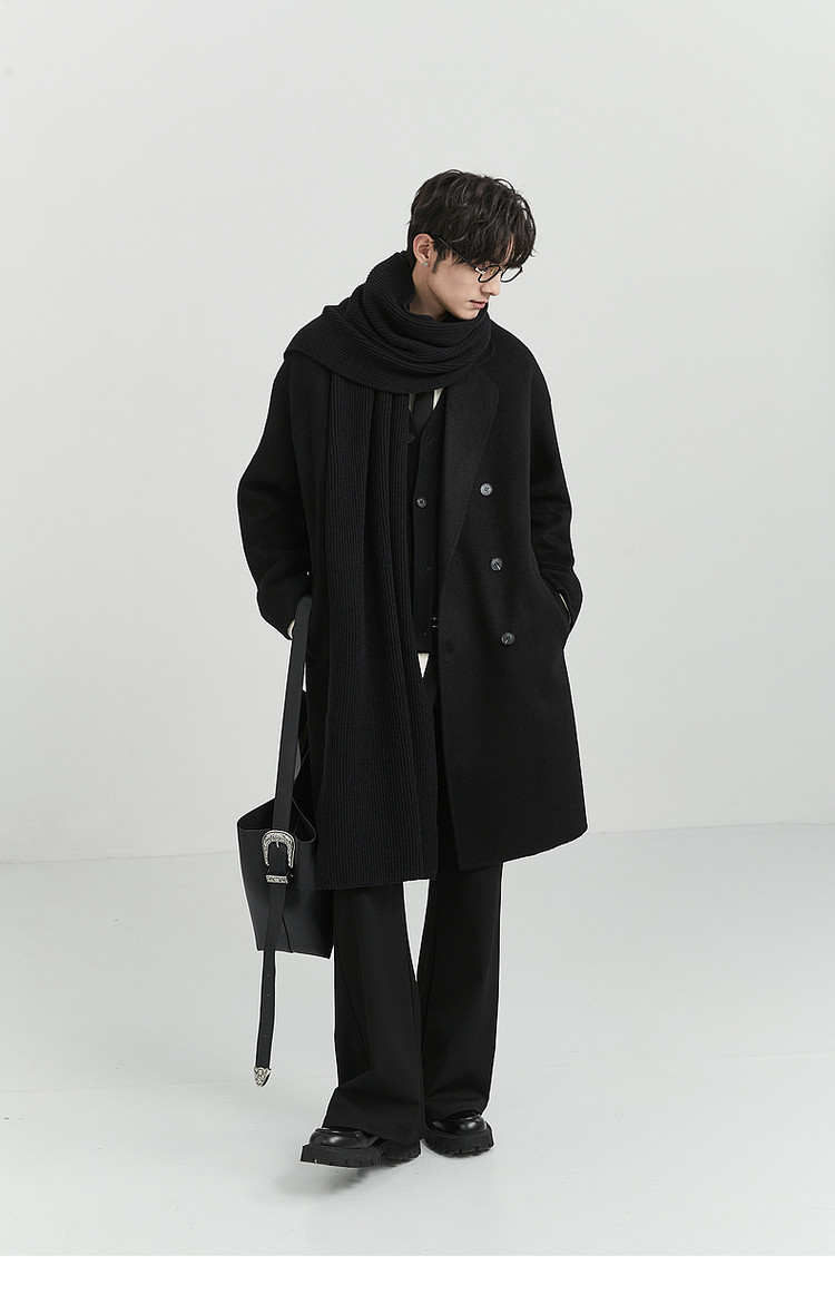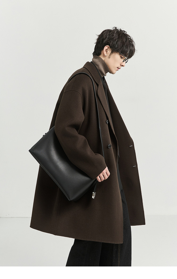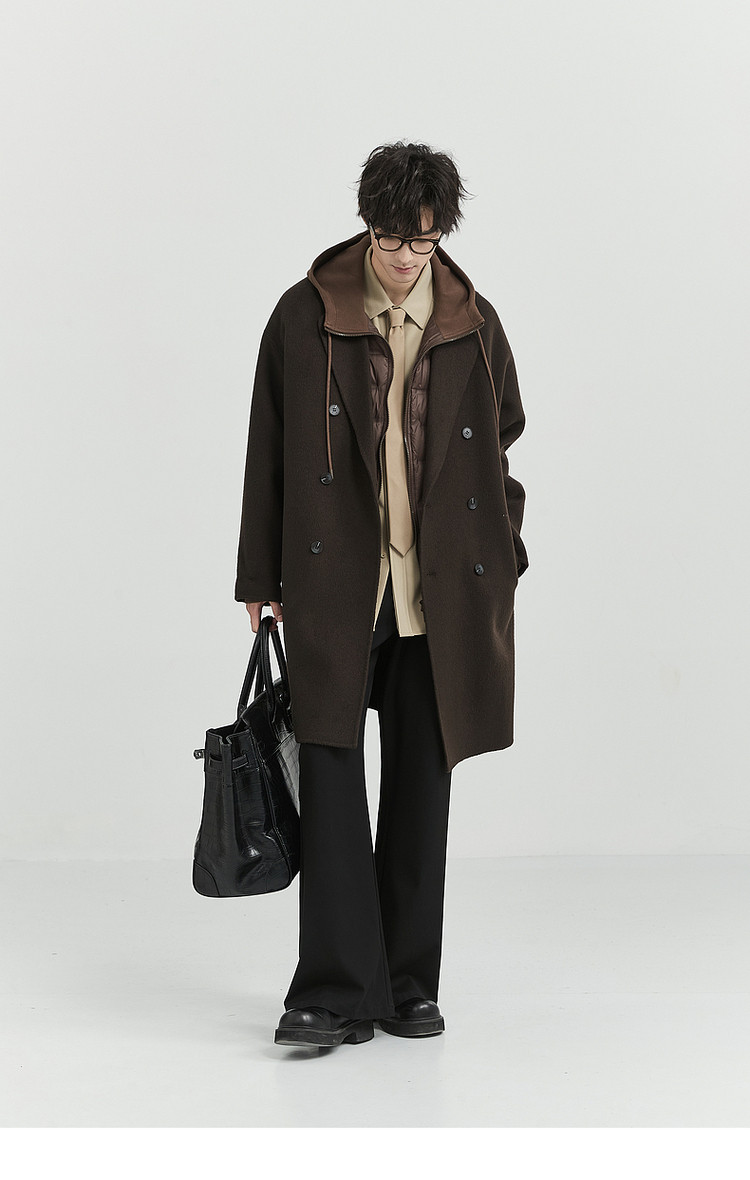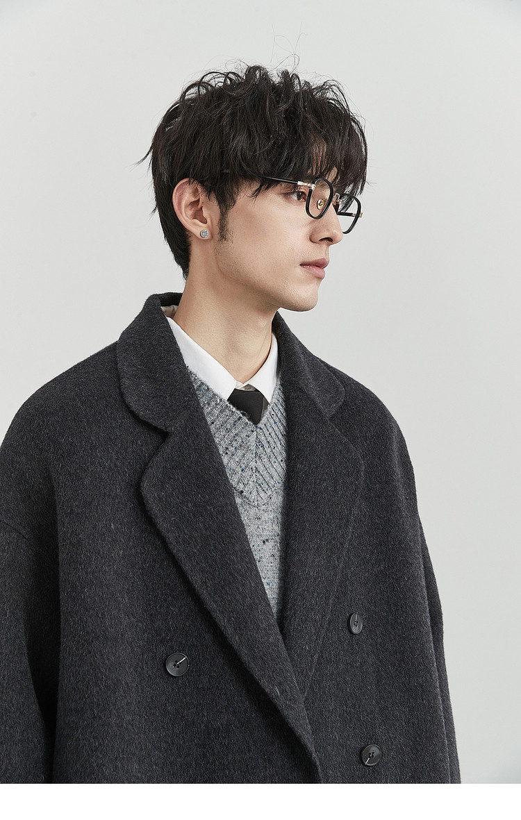 [All Wool/Goose down Lining] Bjze Autumn and Winter Warm Handmade Double-Sided Woolen Coat Mid-Length Men's Jacket