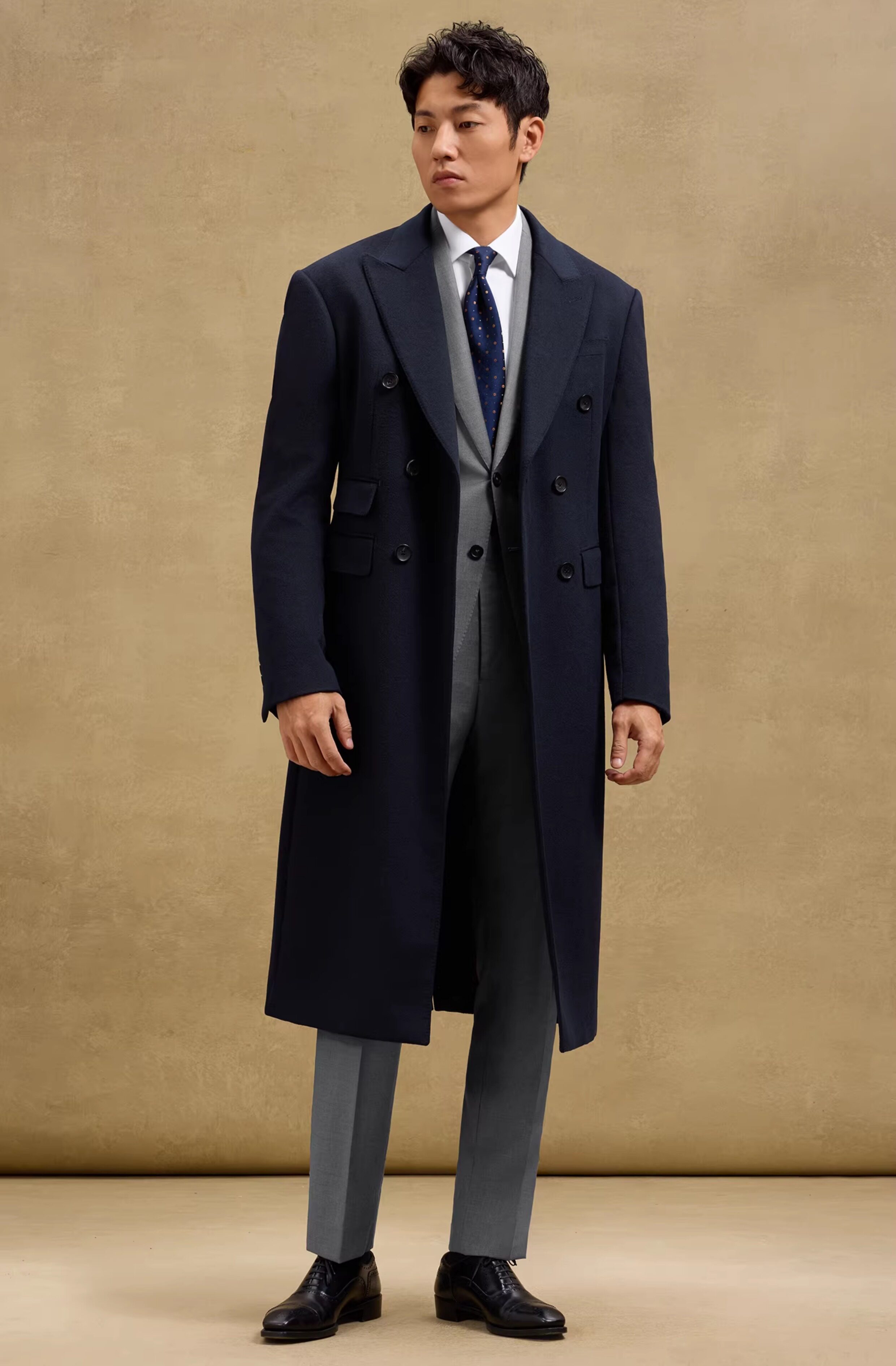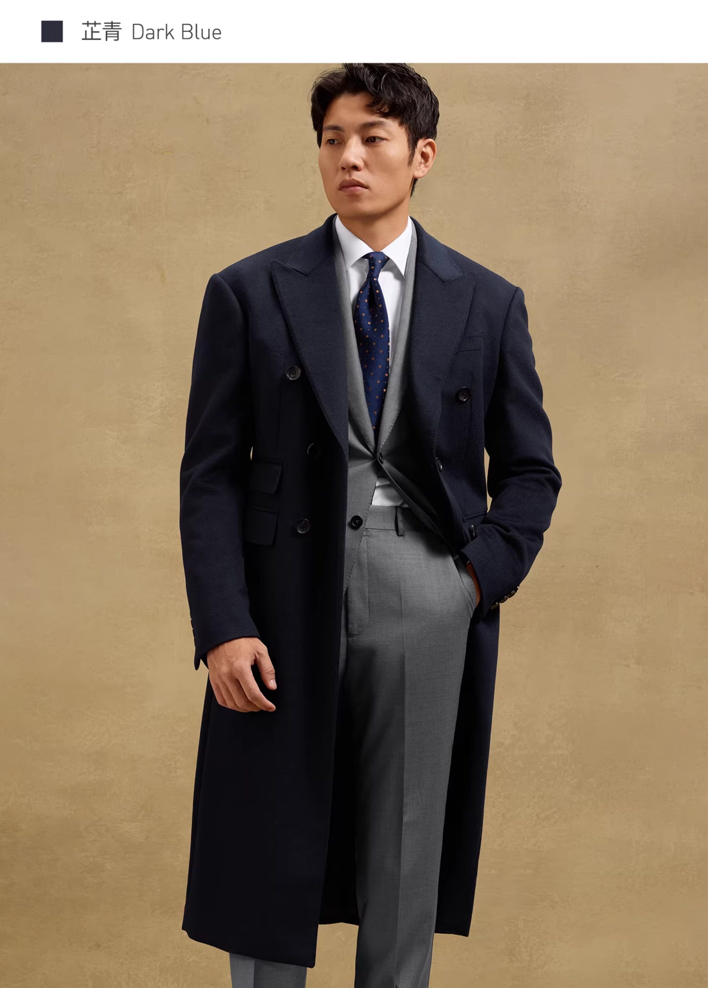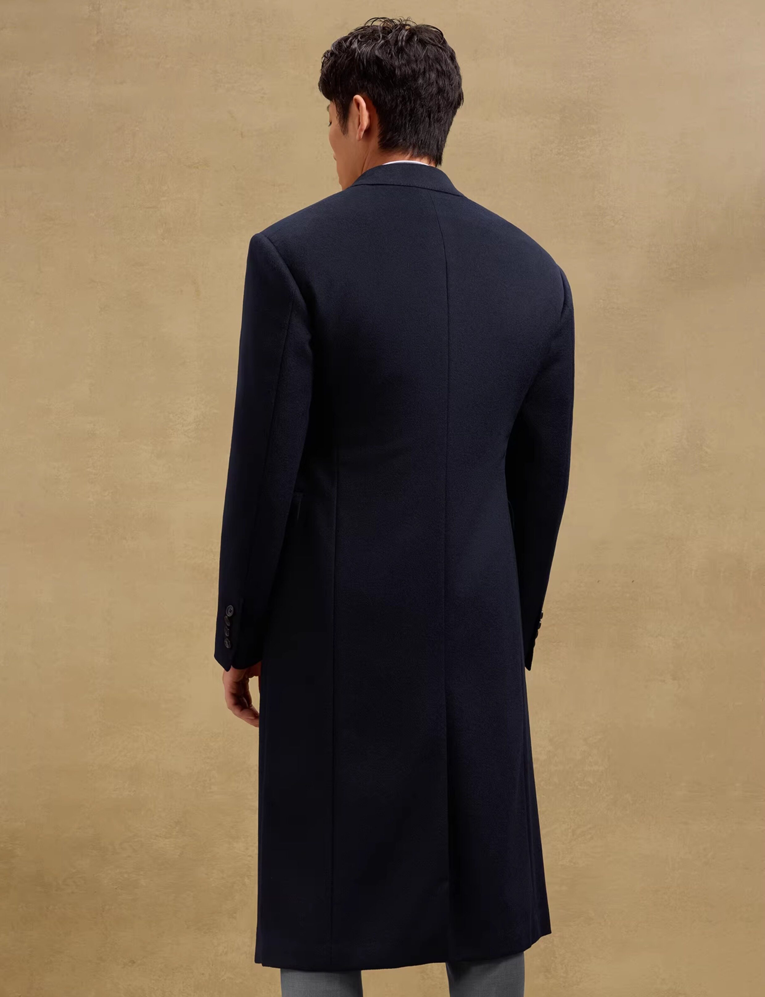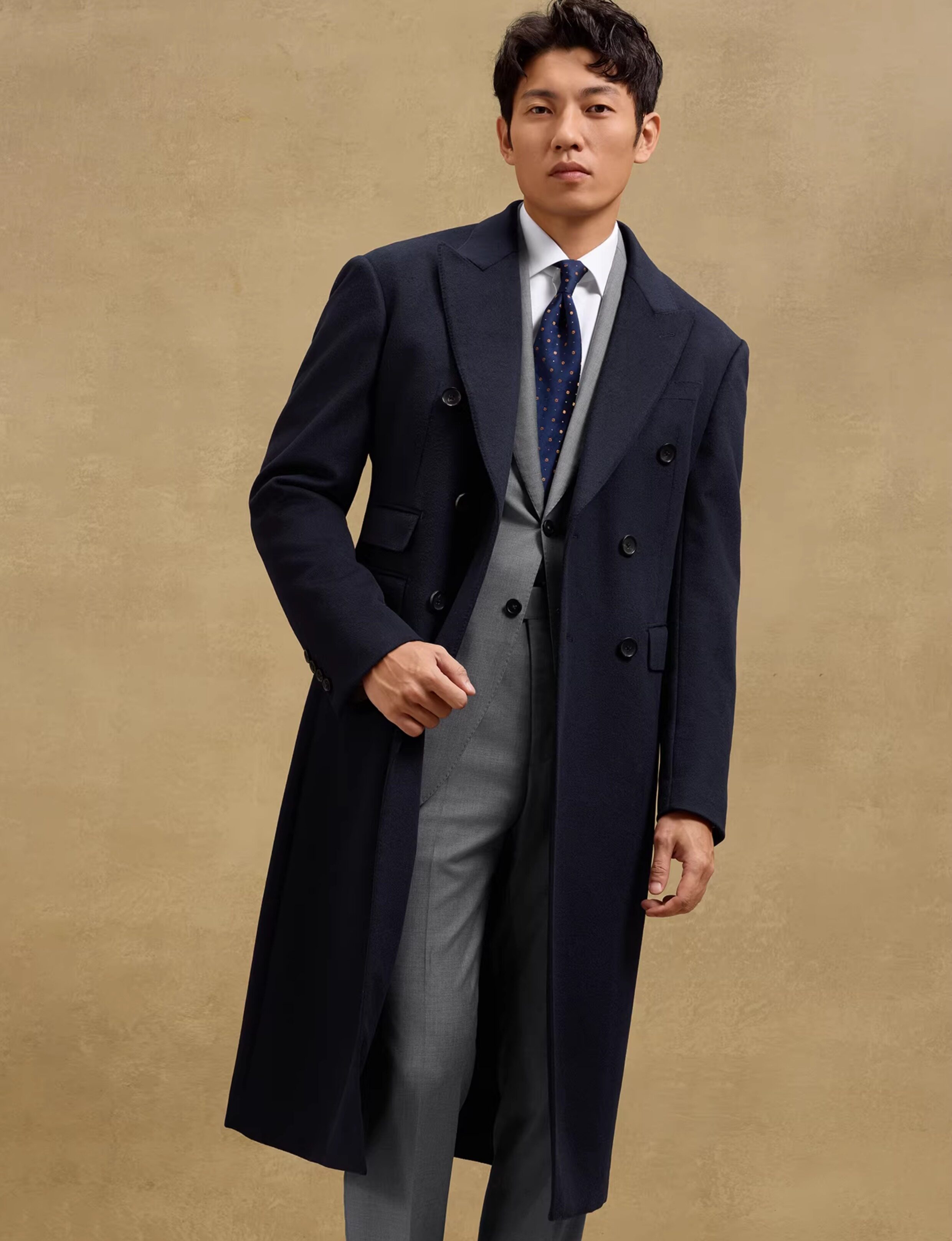 [Contains Cashmere, Handcrafted Milan Eye Pattern] Skaro Chester Coat for Men, Double-Breasted Long Woolen Overcoat