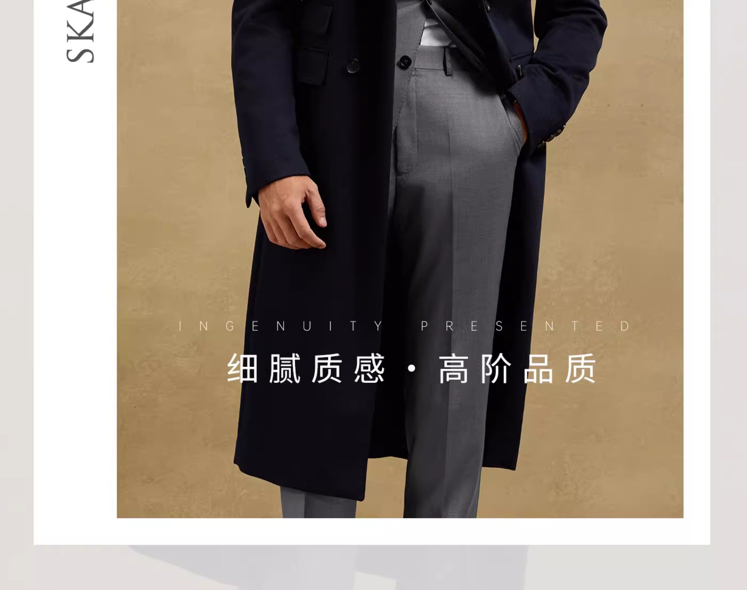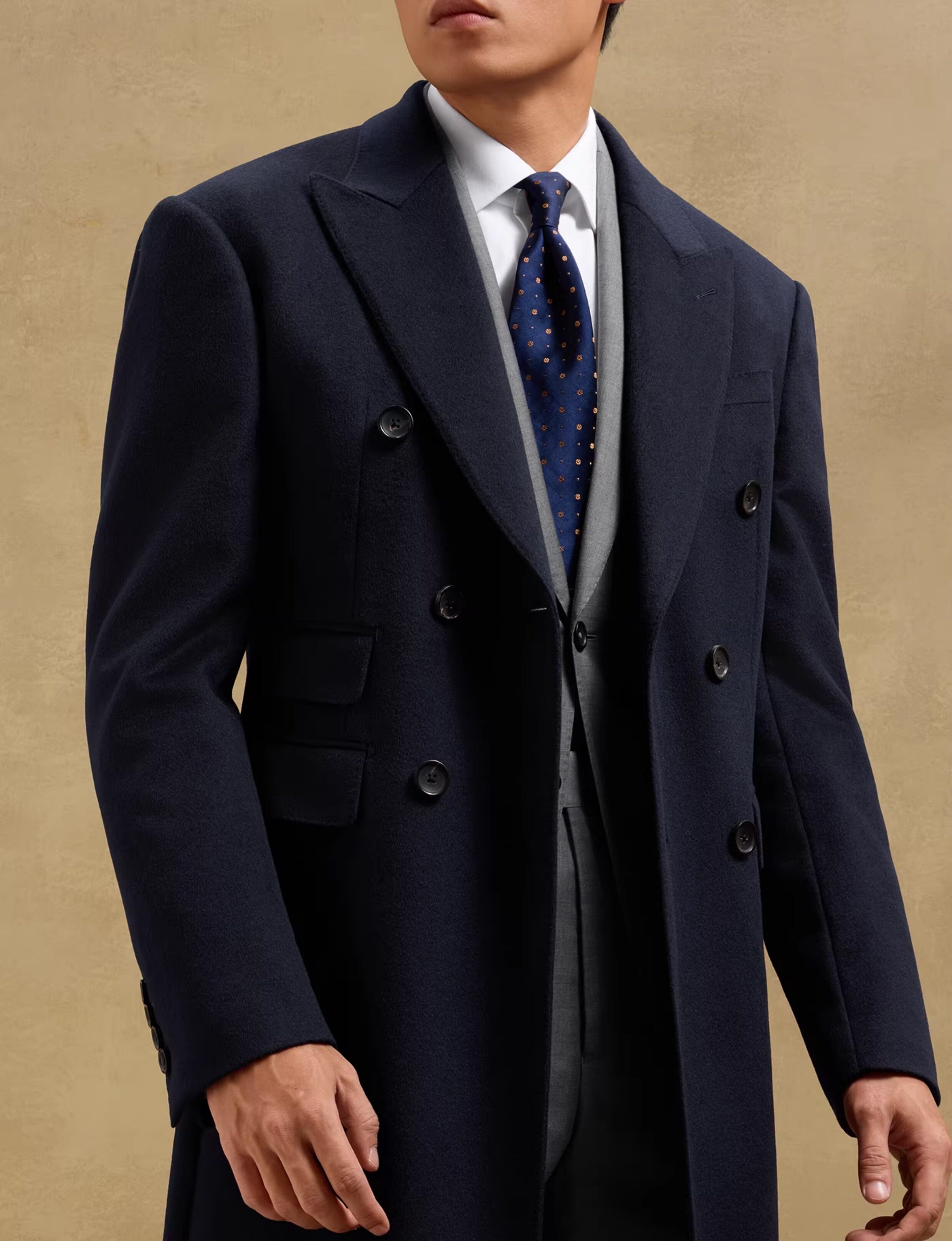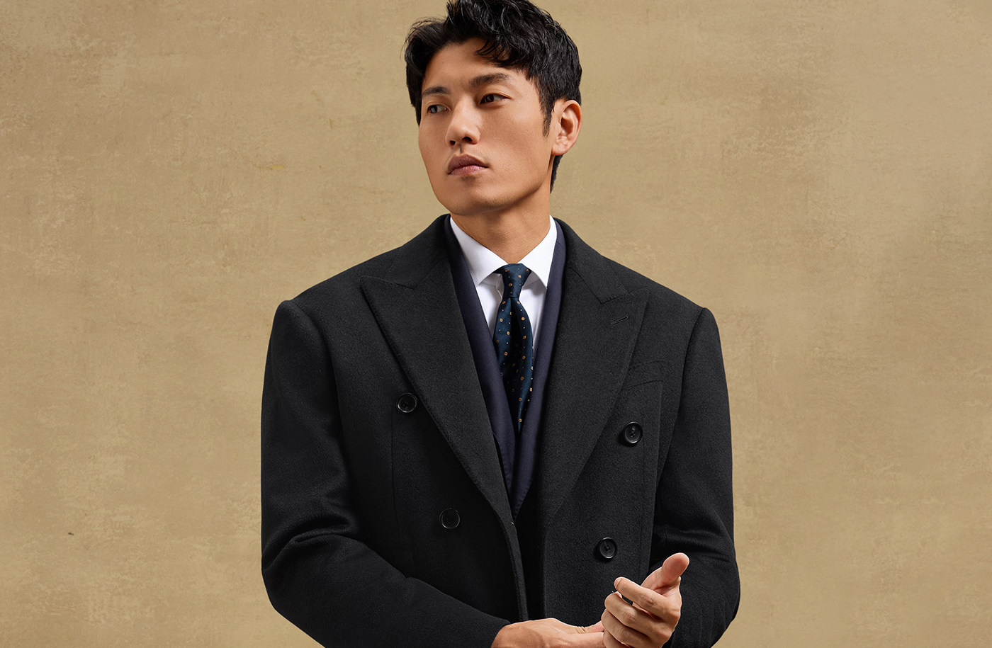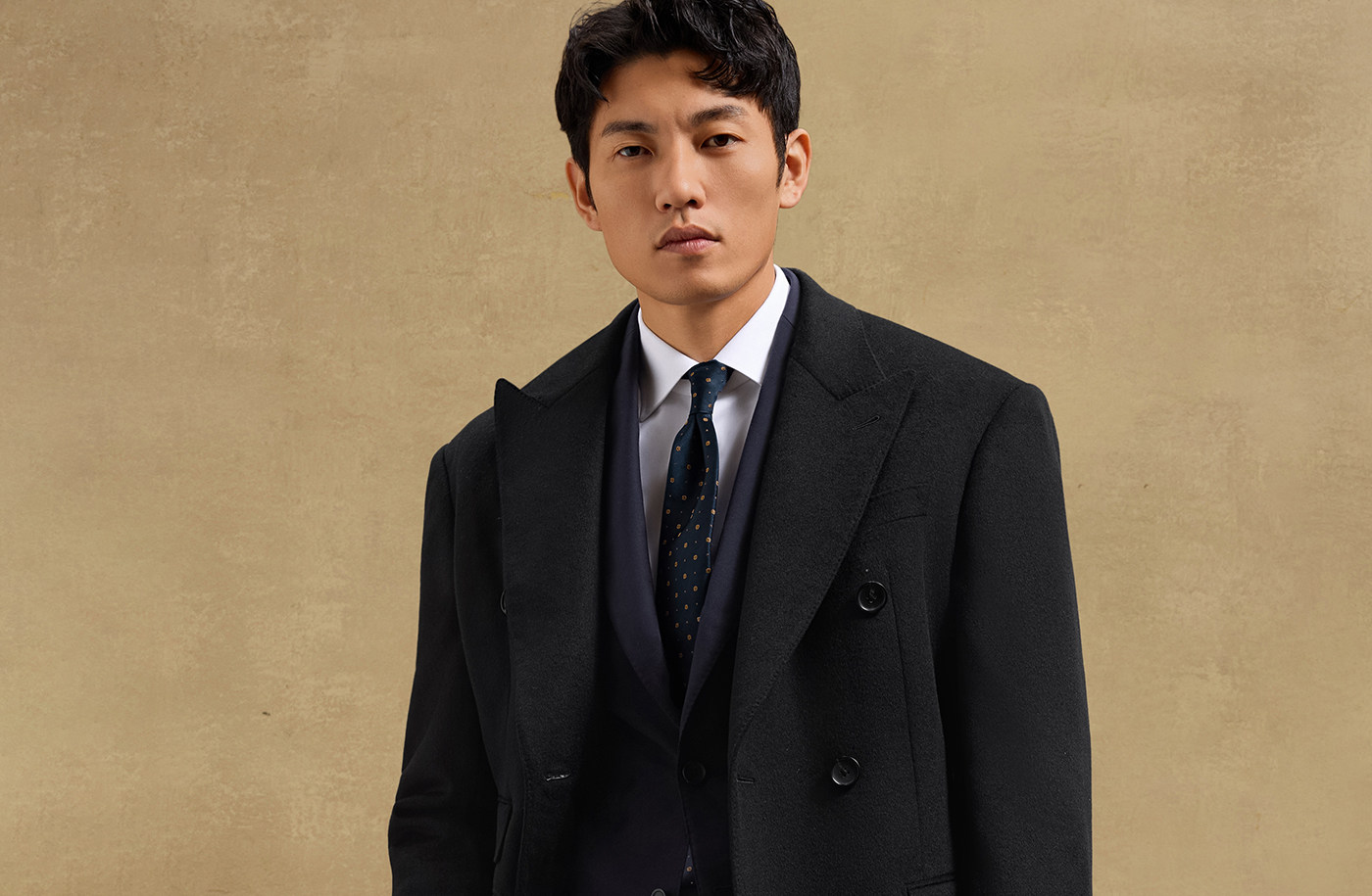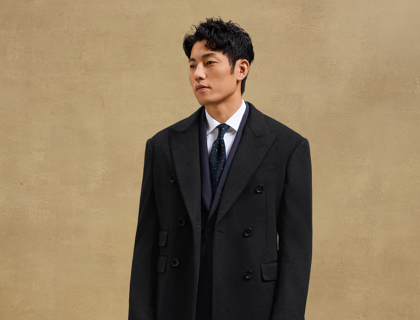 [Contains Cashmere, Handcrafted Milan Eye Pattern] Skaro Chester Coat for Men, Double-Breasted Long Woolen Overcoat