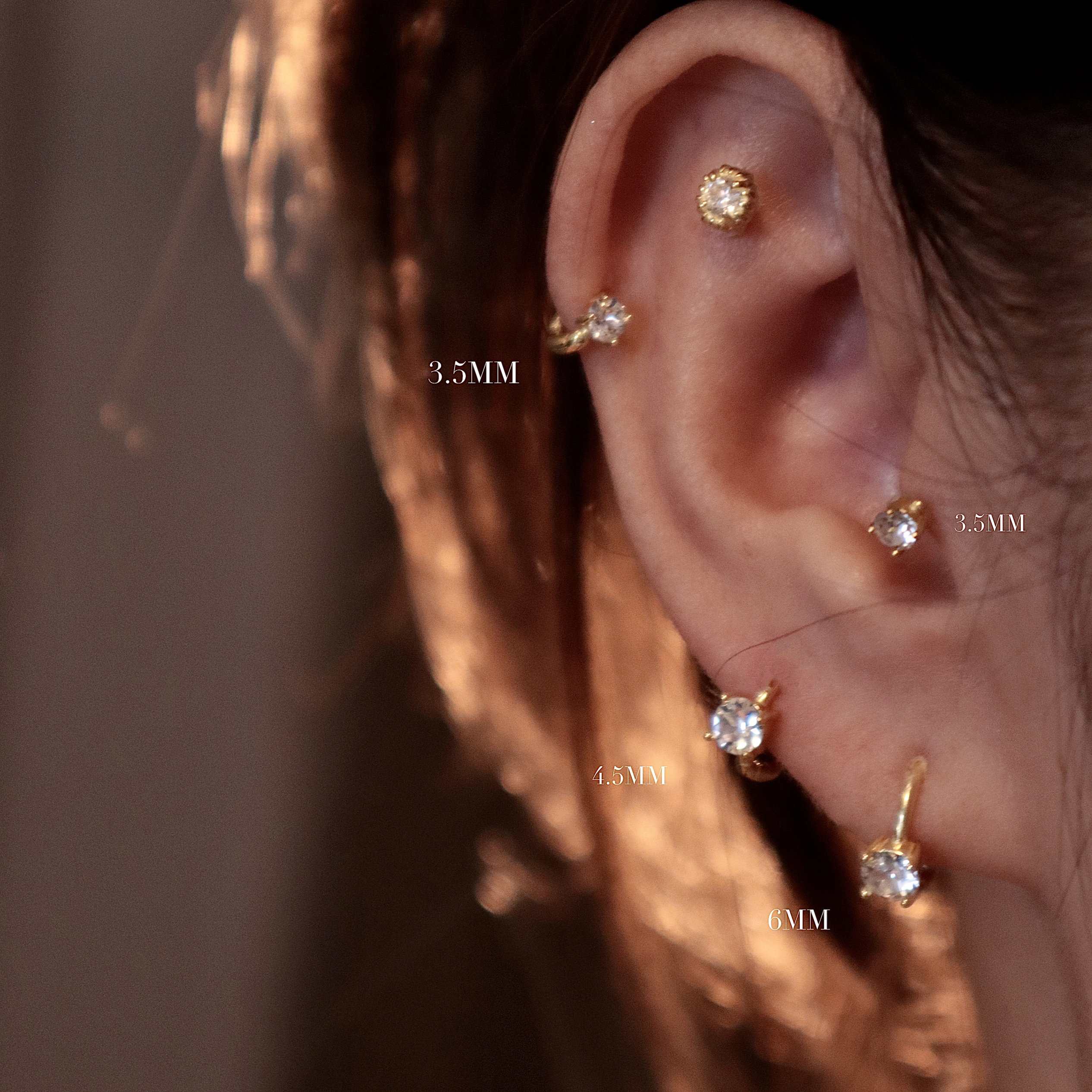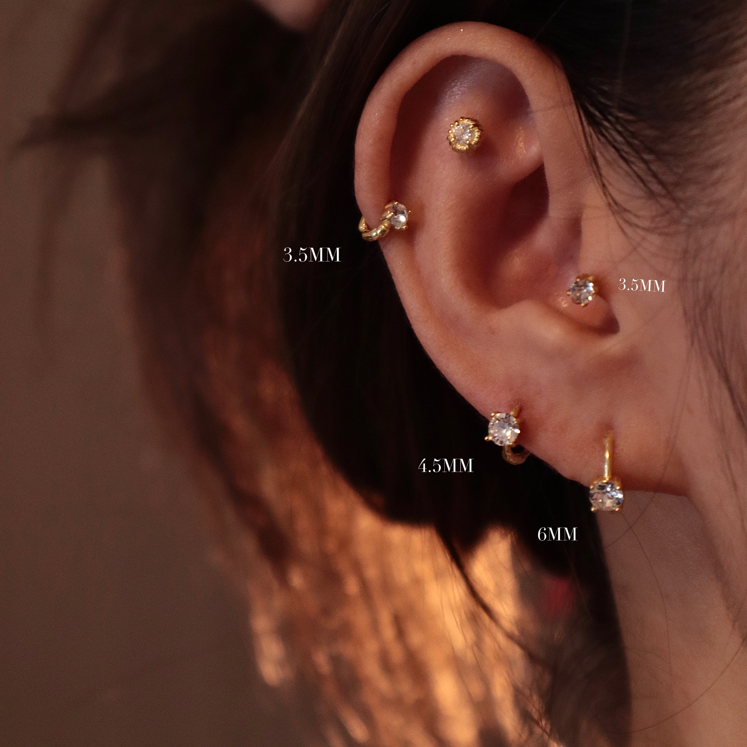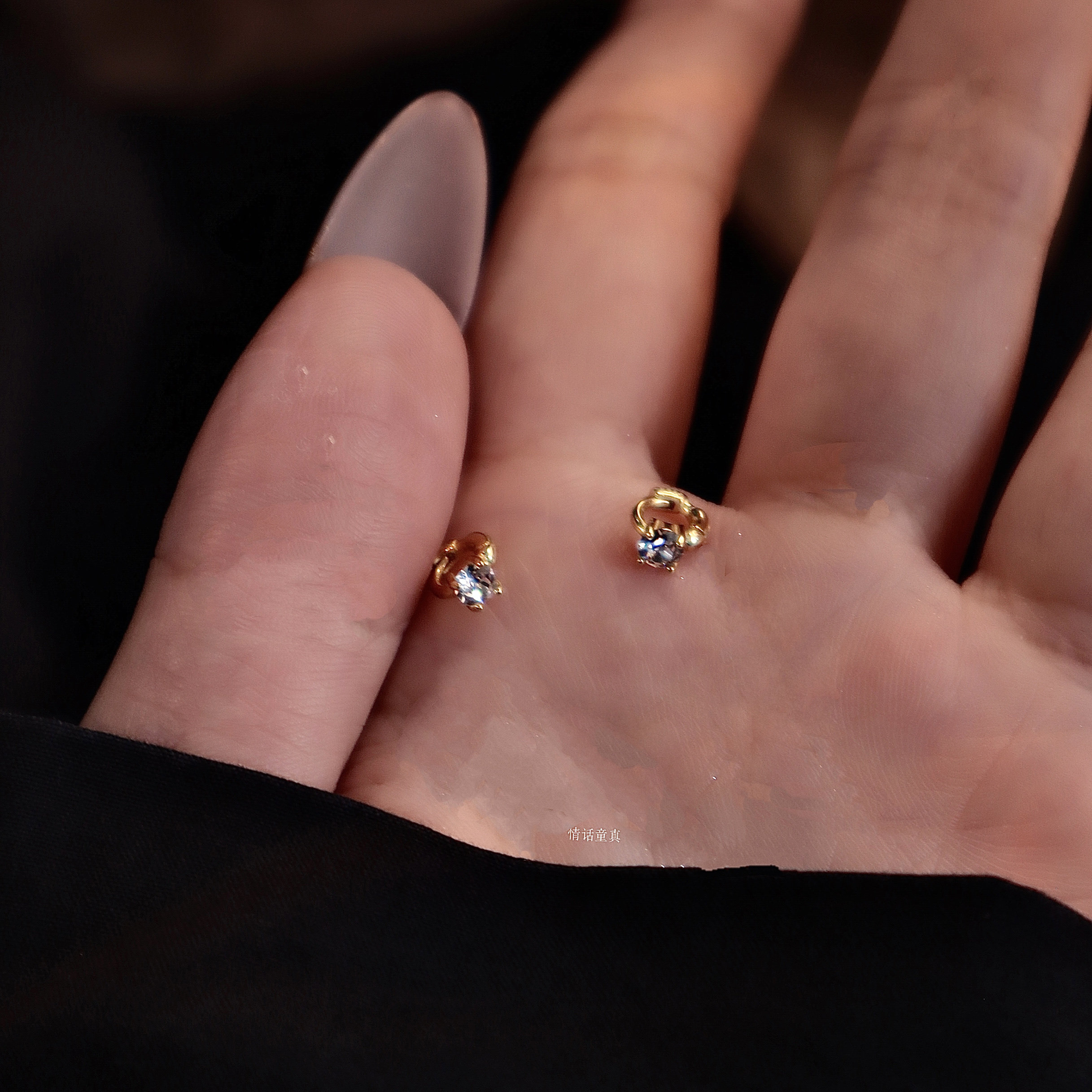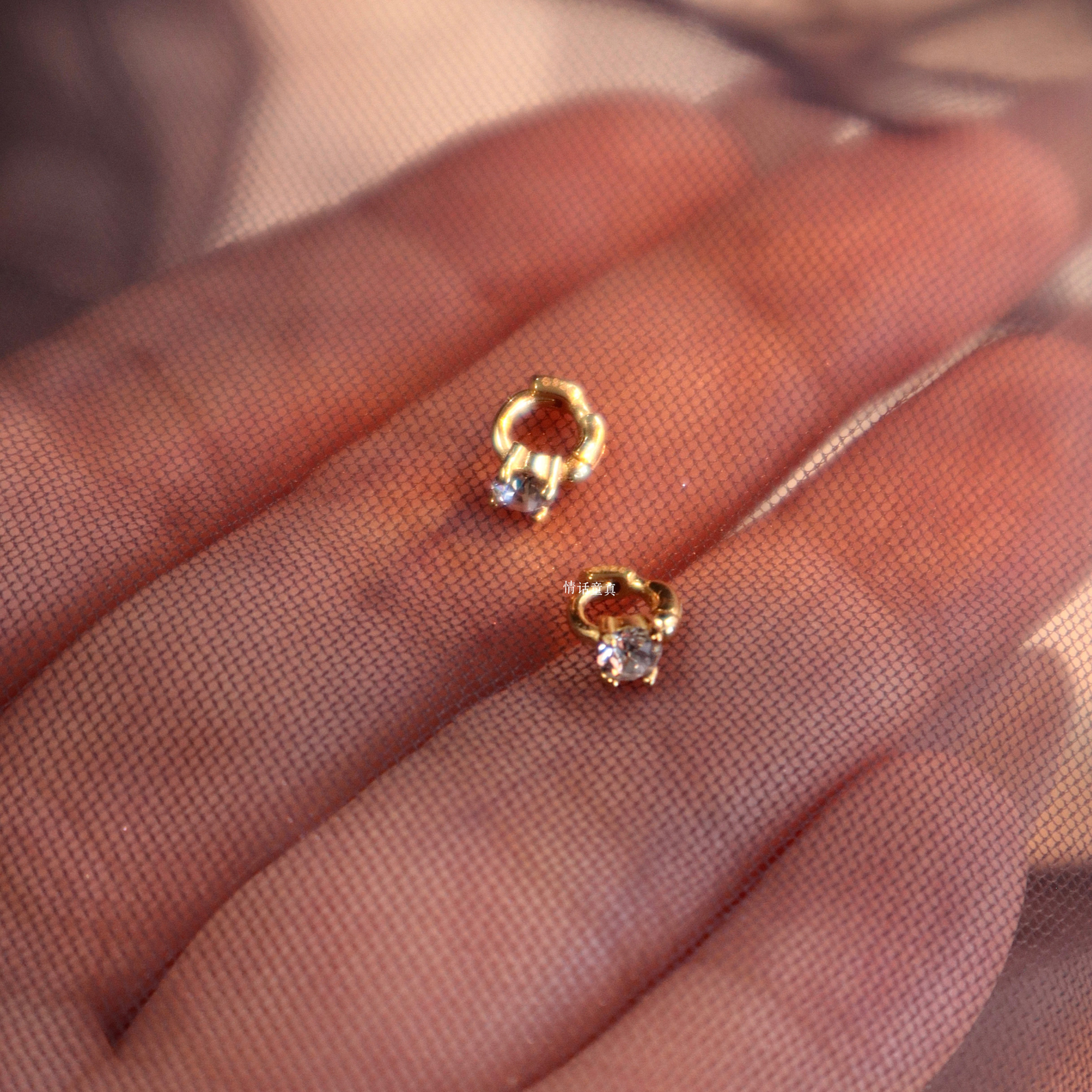 Single Piece Ultra-Mini Ear Studs, No Need to Remove When Sleeping, Swarovski Rhinestone Small Hoop Earrings, Pure Silver Thick Gold-Plated Ear Cartilage Studs