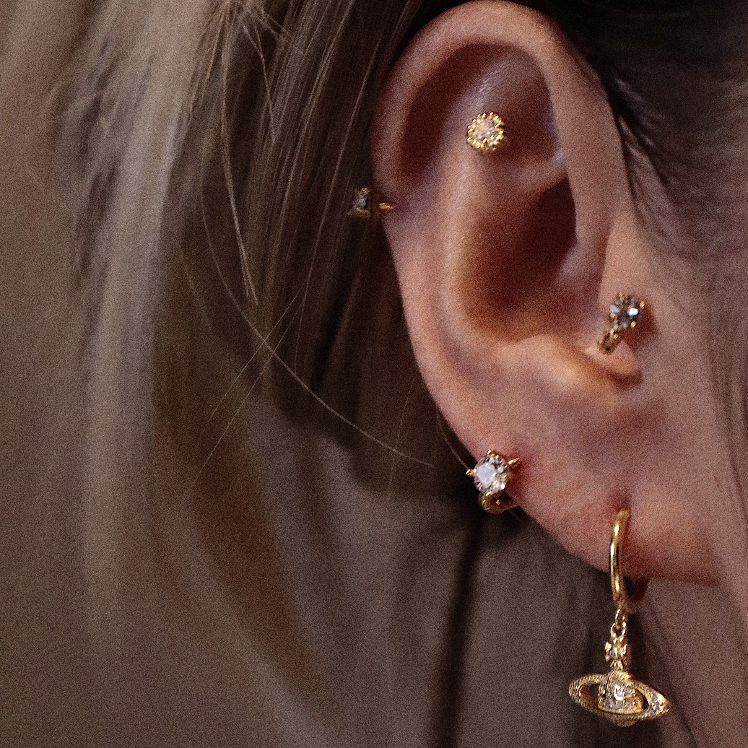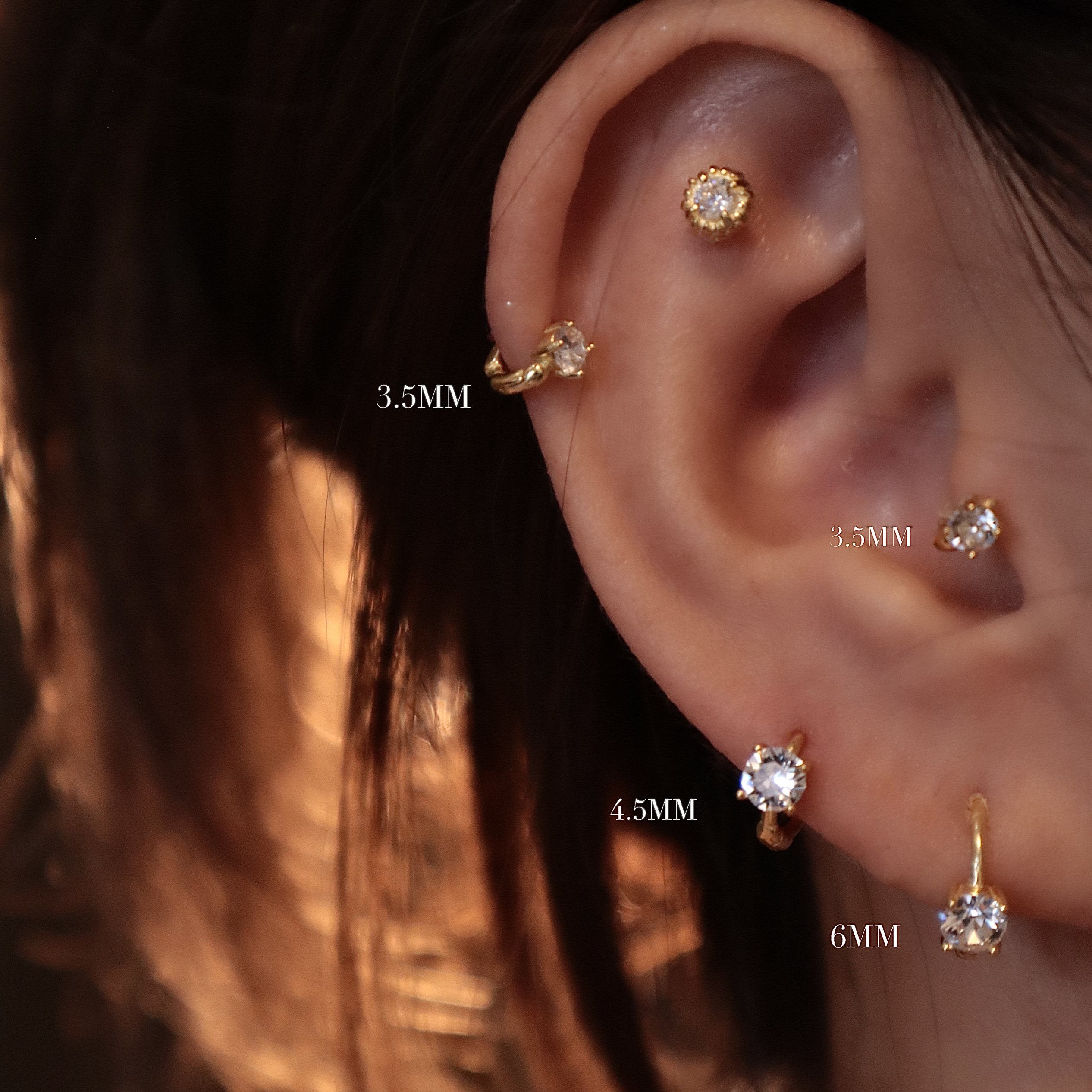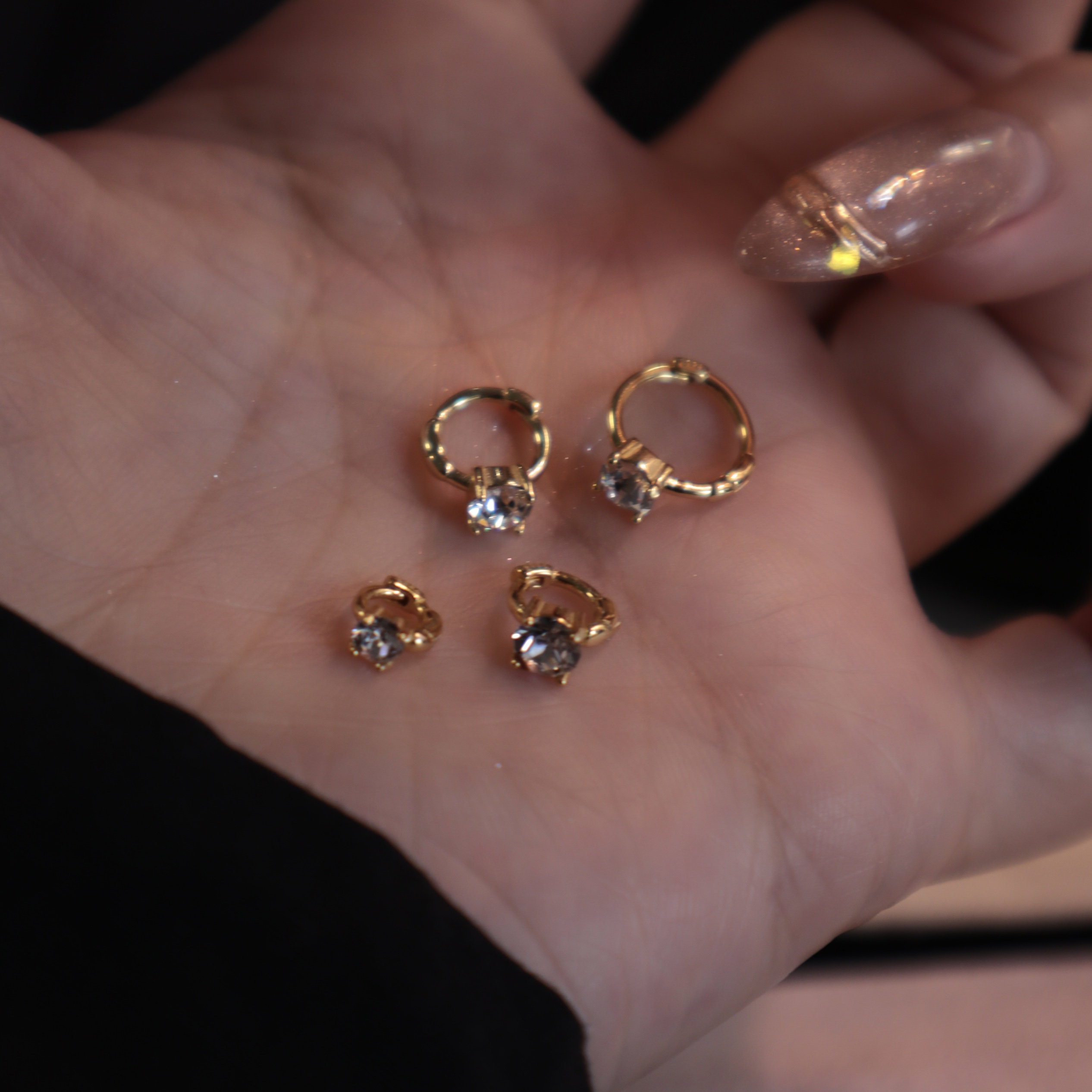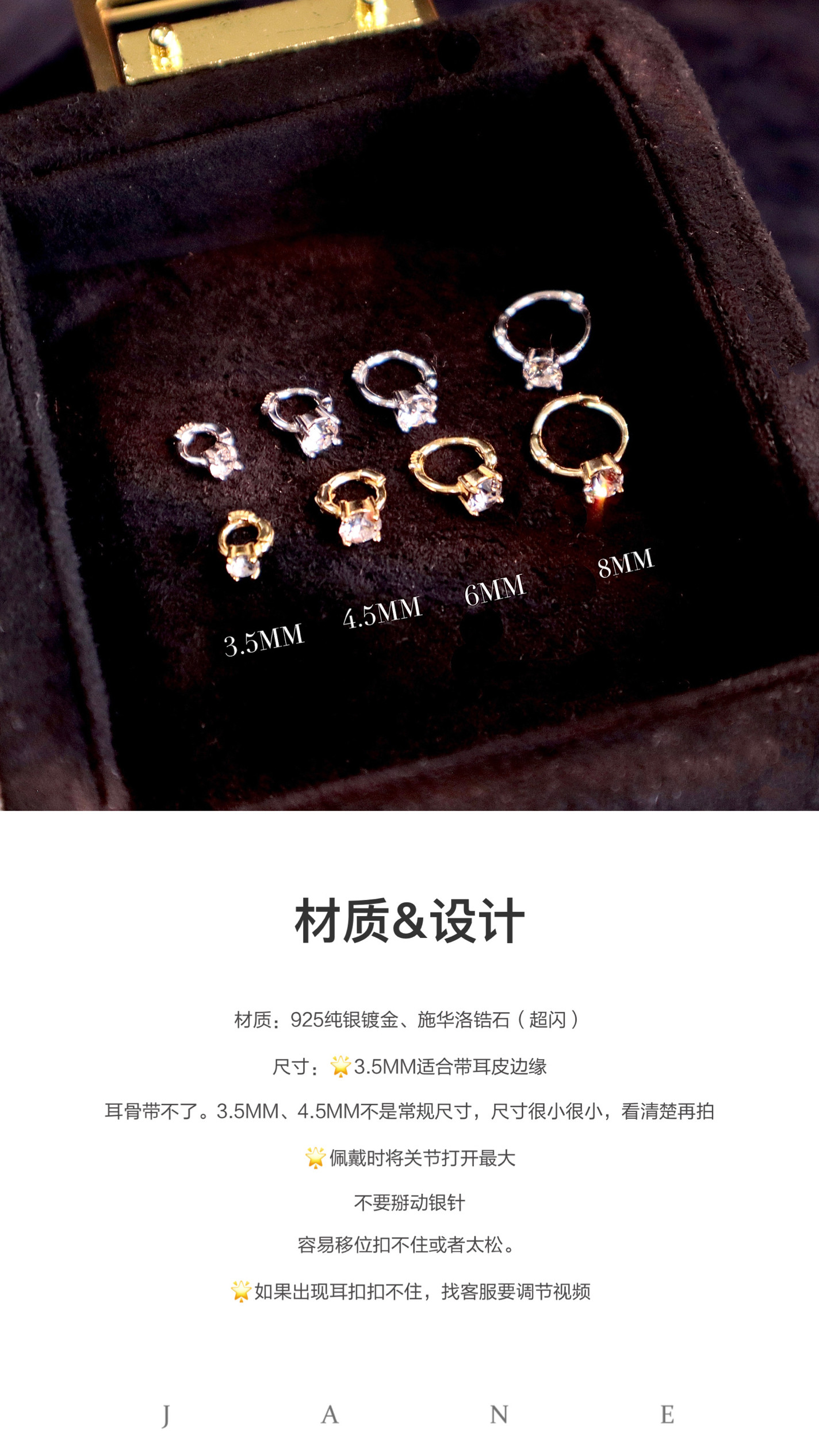Single Piece Ultra-Mini Ear Studs, No Need to Remove When Sleeping, Swarovski Rhinestone Small Hoop Earrings, Pure Silver Thick Gold-Plated Ear Cartilage Studs