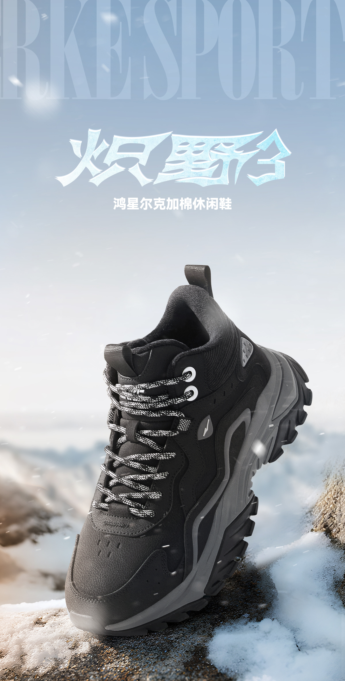 Hongxing Erke Chiyi 3 Men's Shoes, New Winter High-Top Thick Cotton Shoes, Non-Slip, Warm Snow Boots, Thickened Sports Shoes