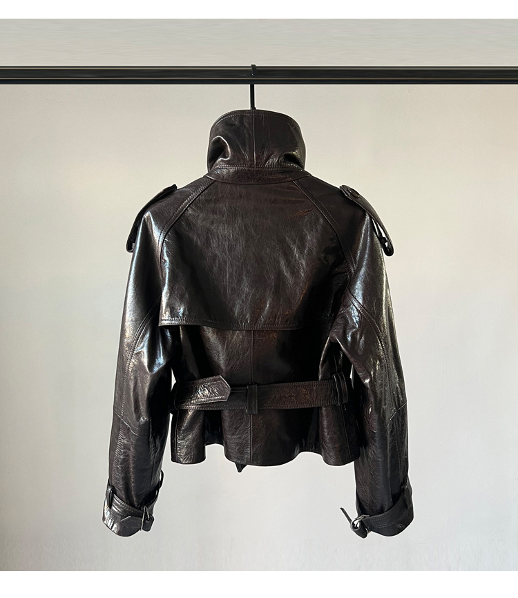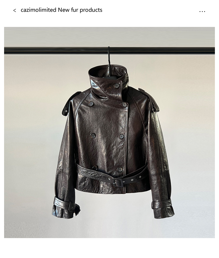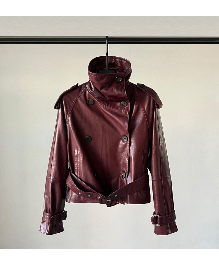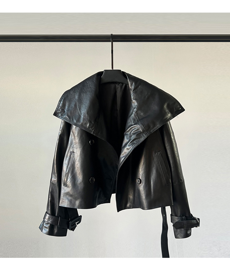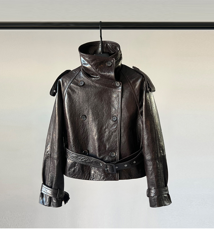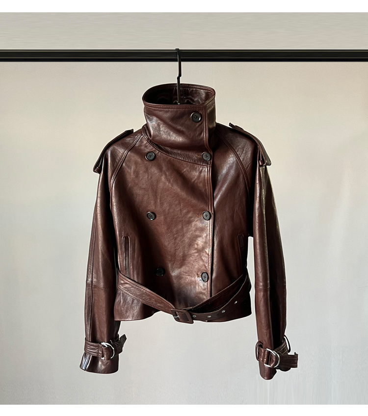 2025 New Genuine Leather Jacket for Women, Short Sheepskin Biker Jacket with Double-Breasted Lace-Up, Oil Wax Leather Coat, Trendy