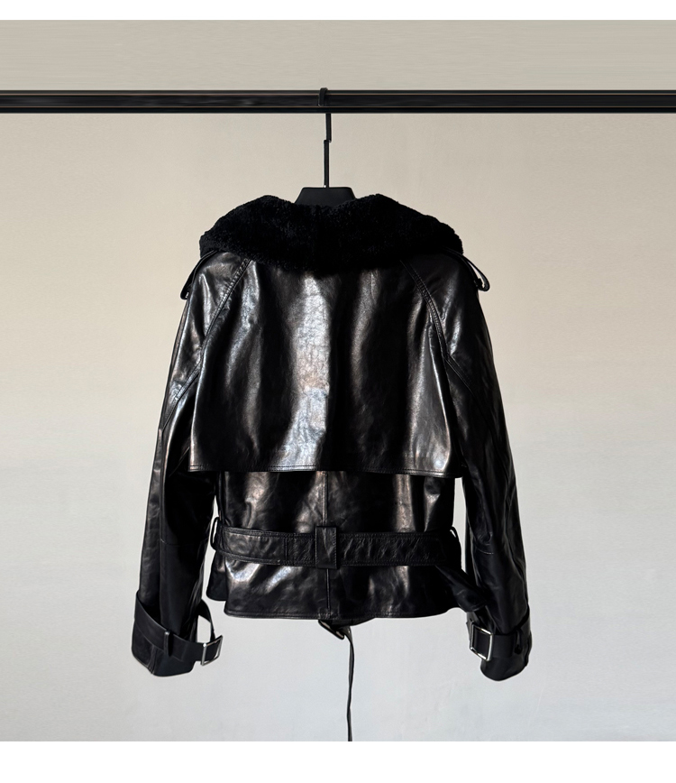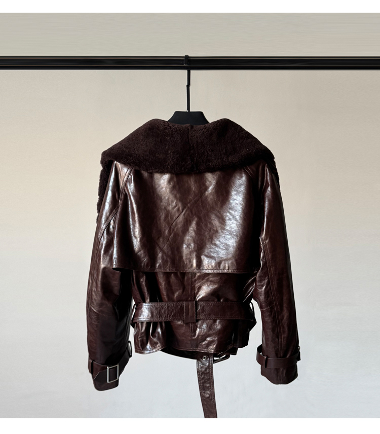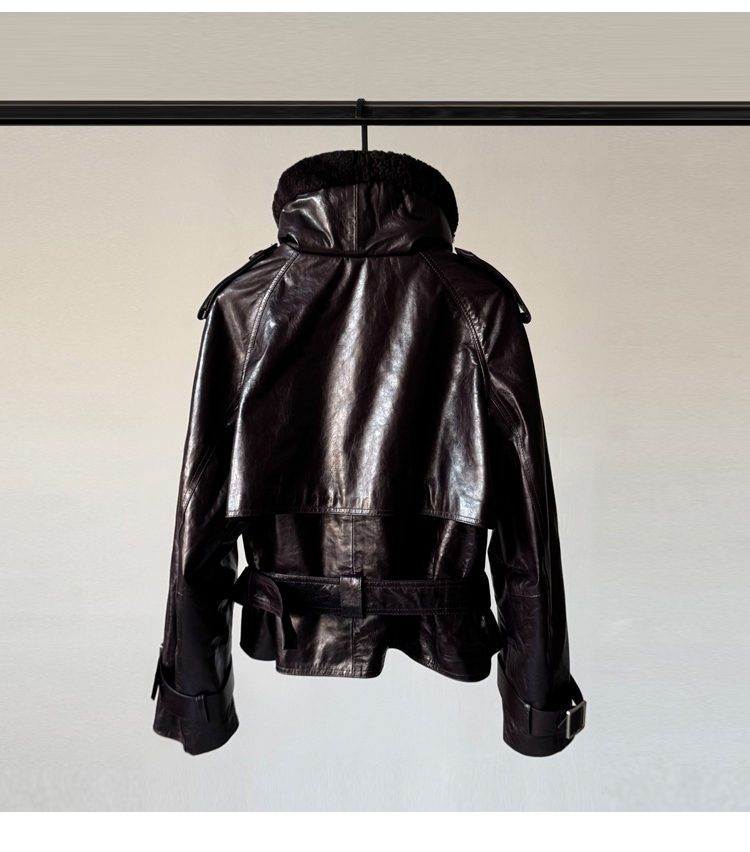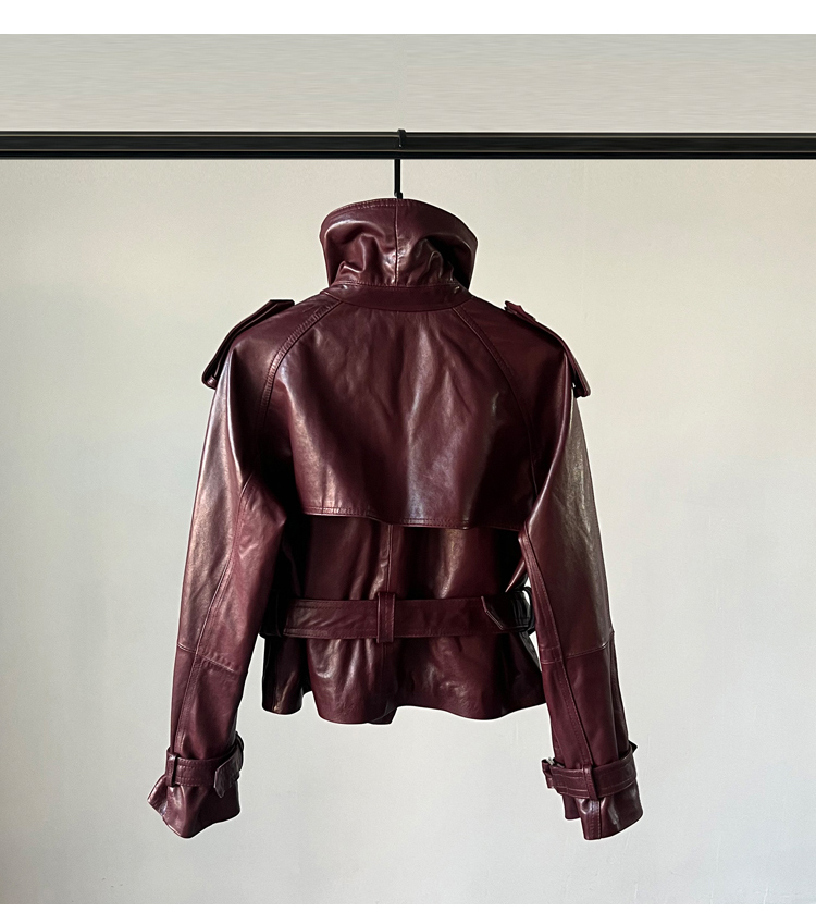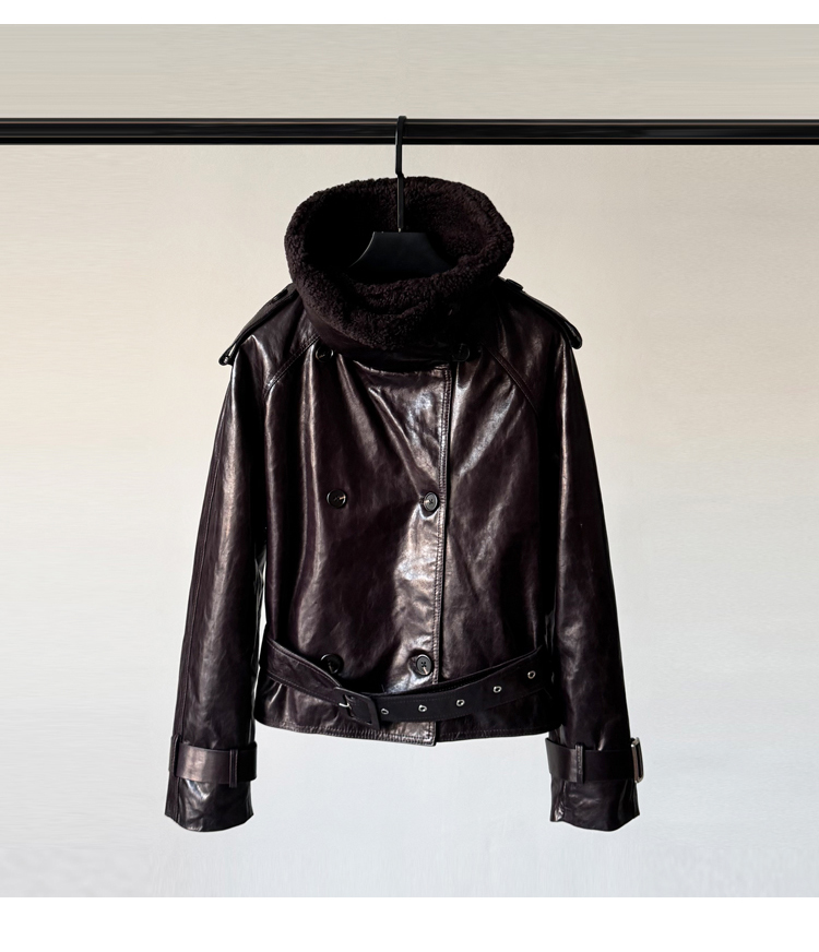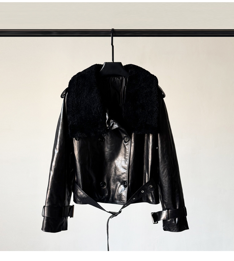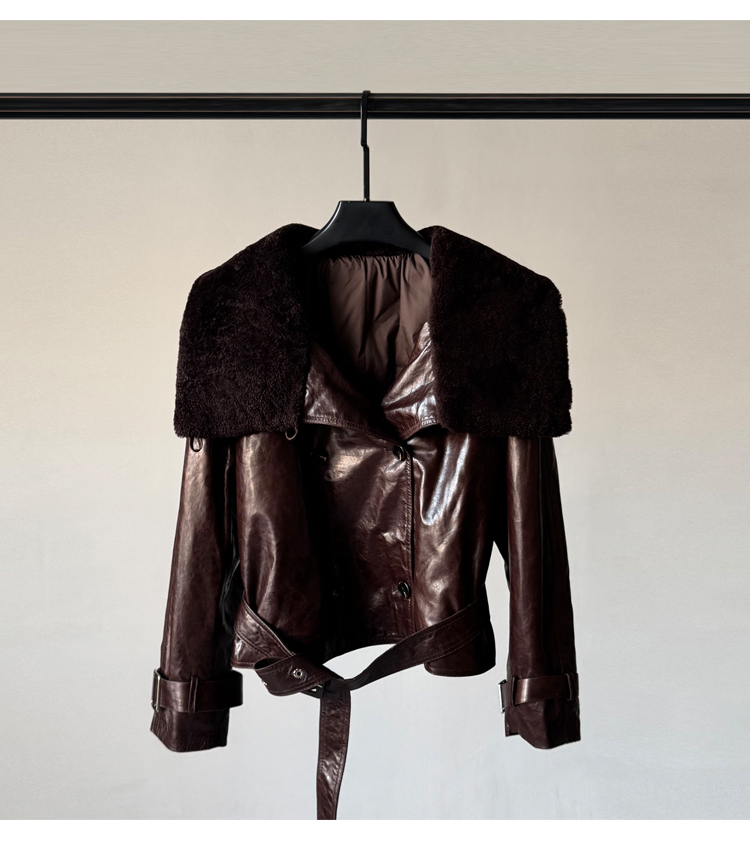 2025 New Genuine Leather Jacket for Women, Short Sheepskin Biker Jacket with Double-Breasted Lace-Up, Oil Wax Leather Coat, Trendy