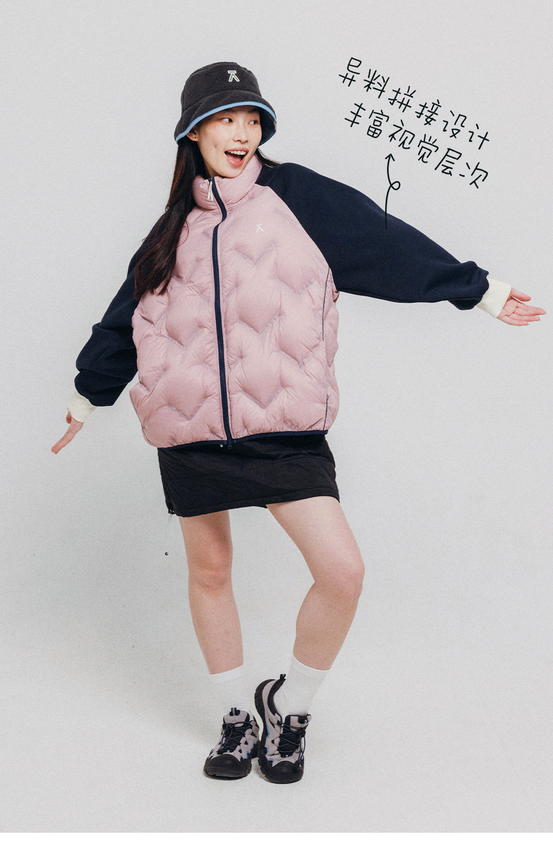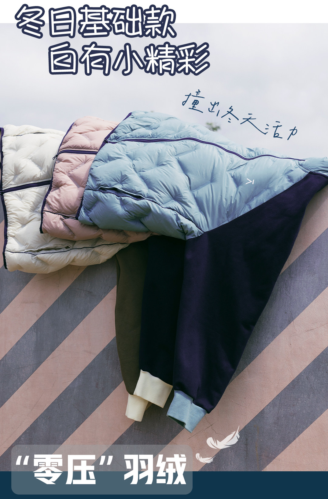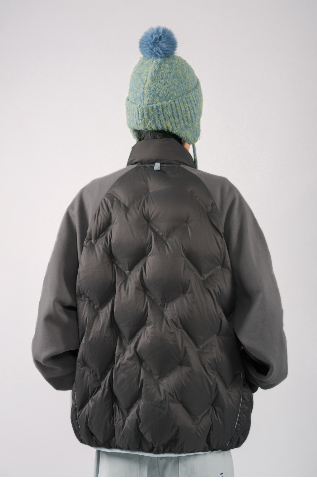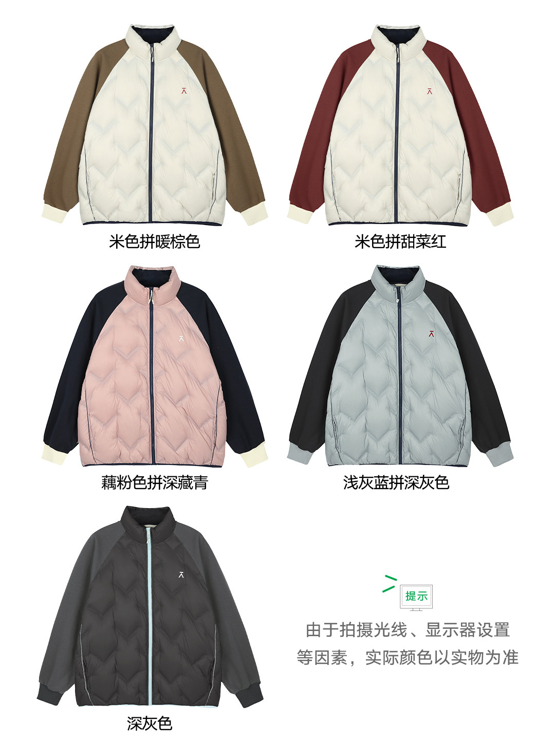Acmeitem Outdoor Patchwork Stand-Up Collar down Jacket Lightweight Water-Repellent Loose down Jacket for Men and Women