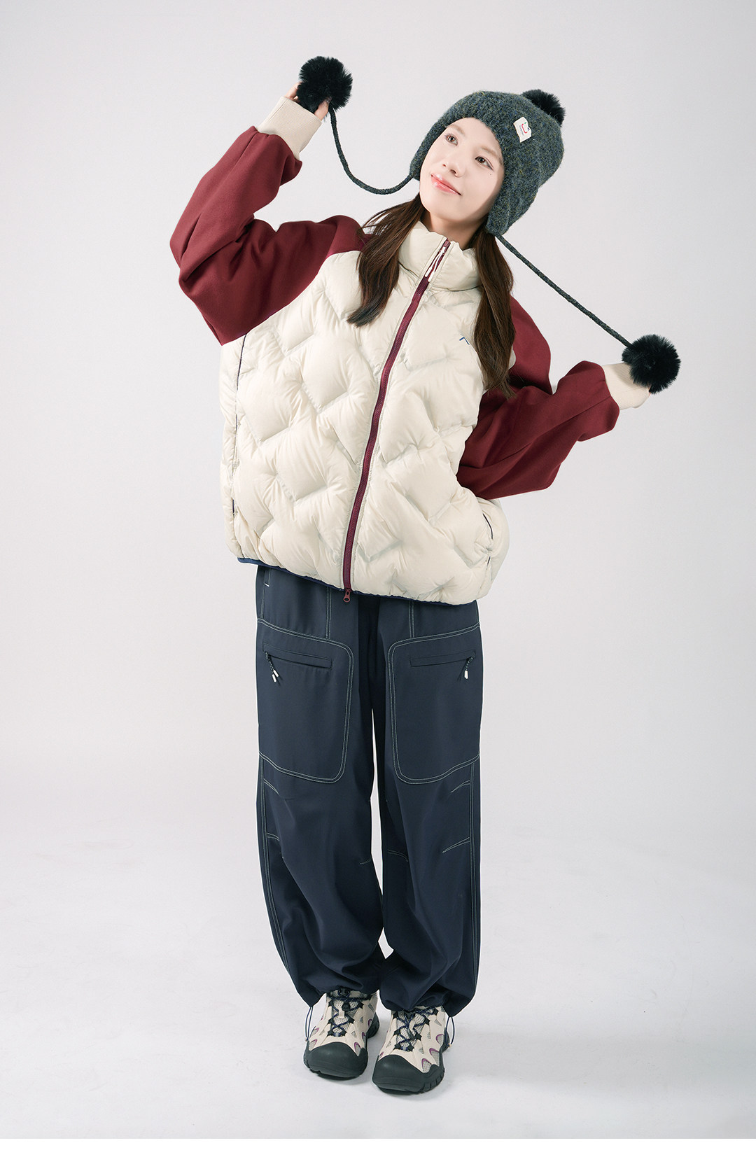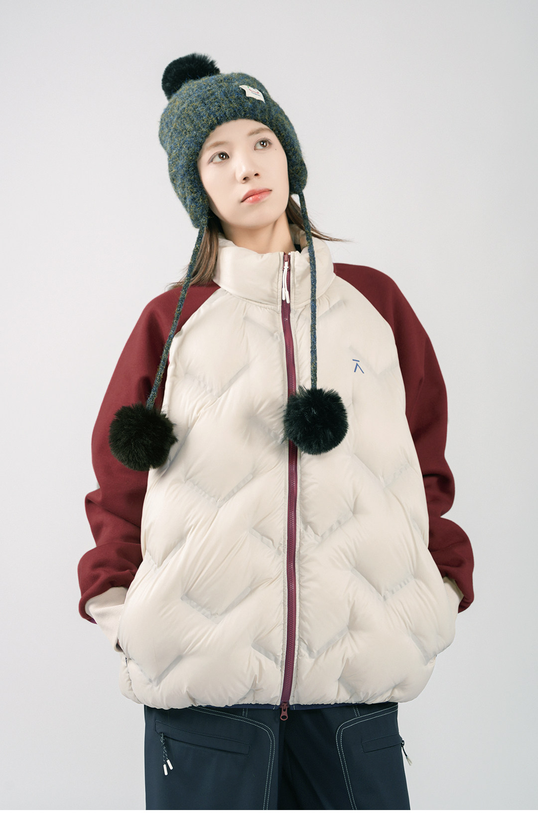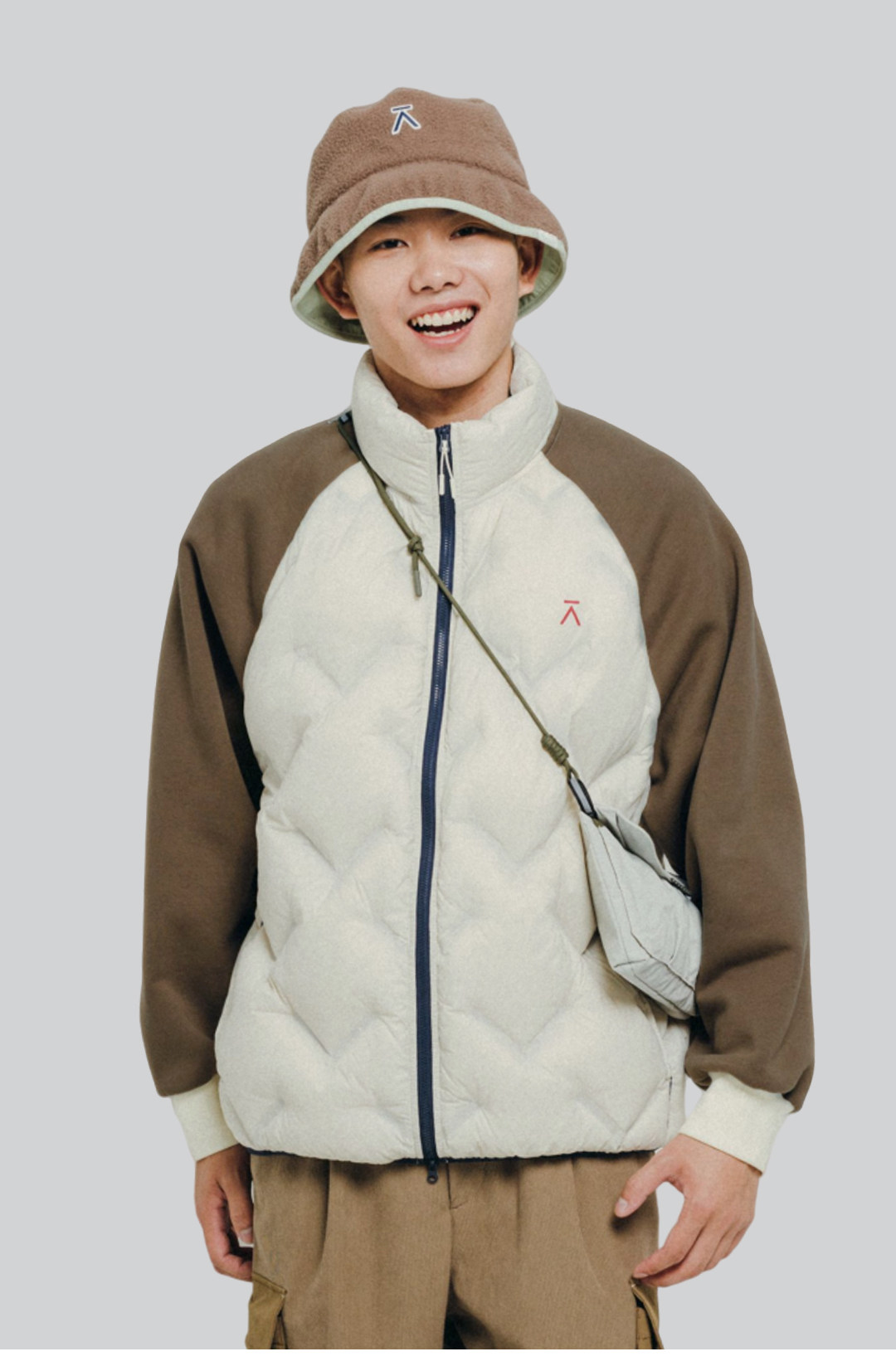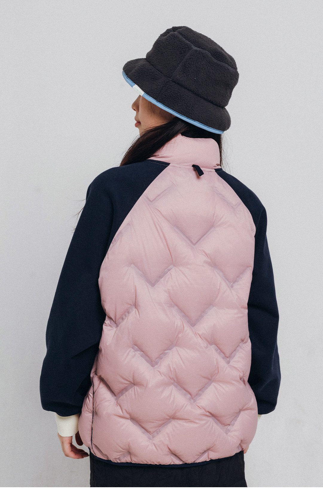 Acmeitem Outdoor Patchwork Stand-Up Collar down Jacket Lightweight Water-Repellent Loose down Jacket for Men and Women