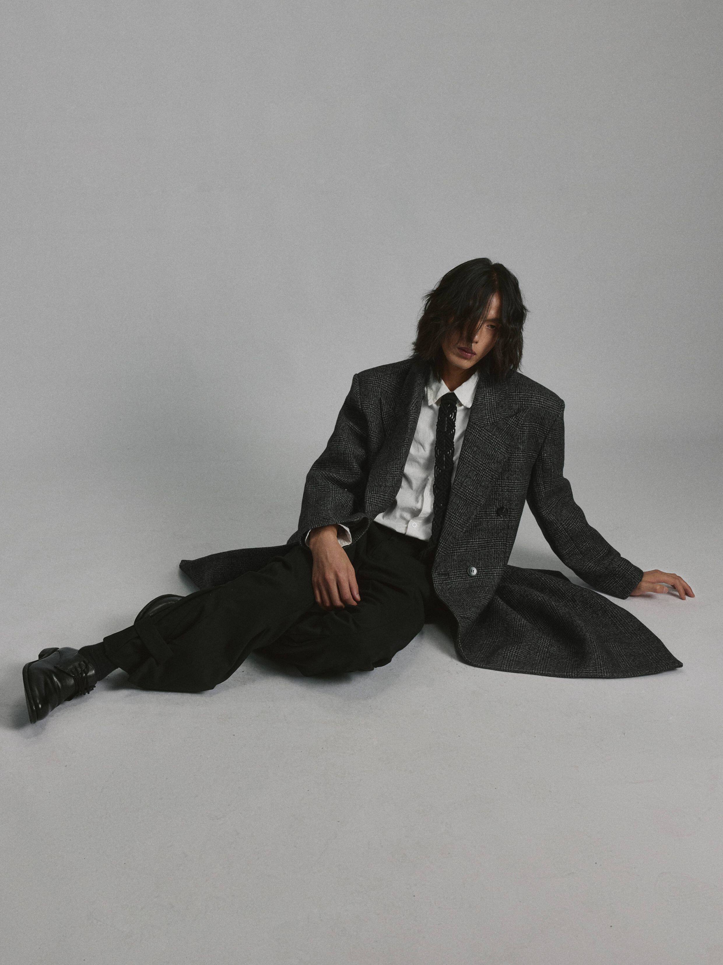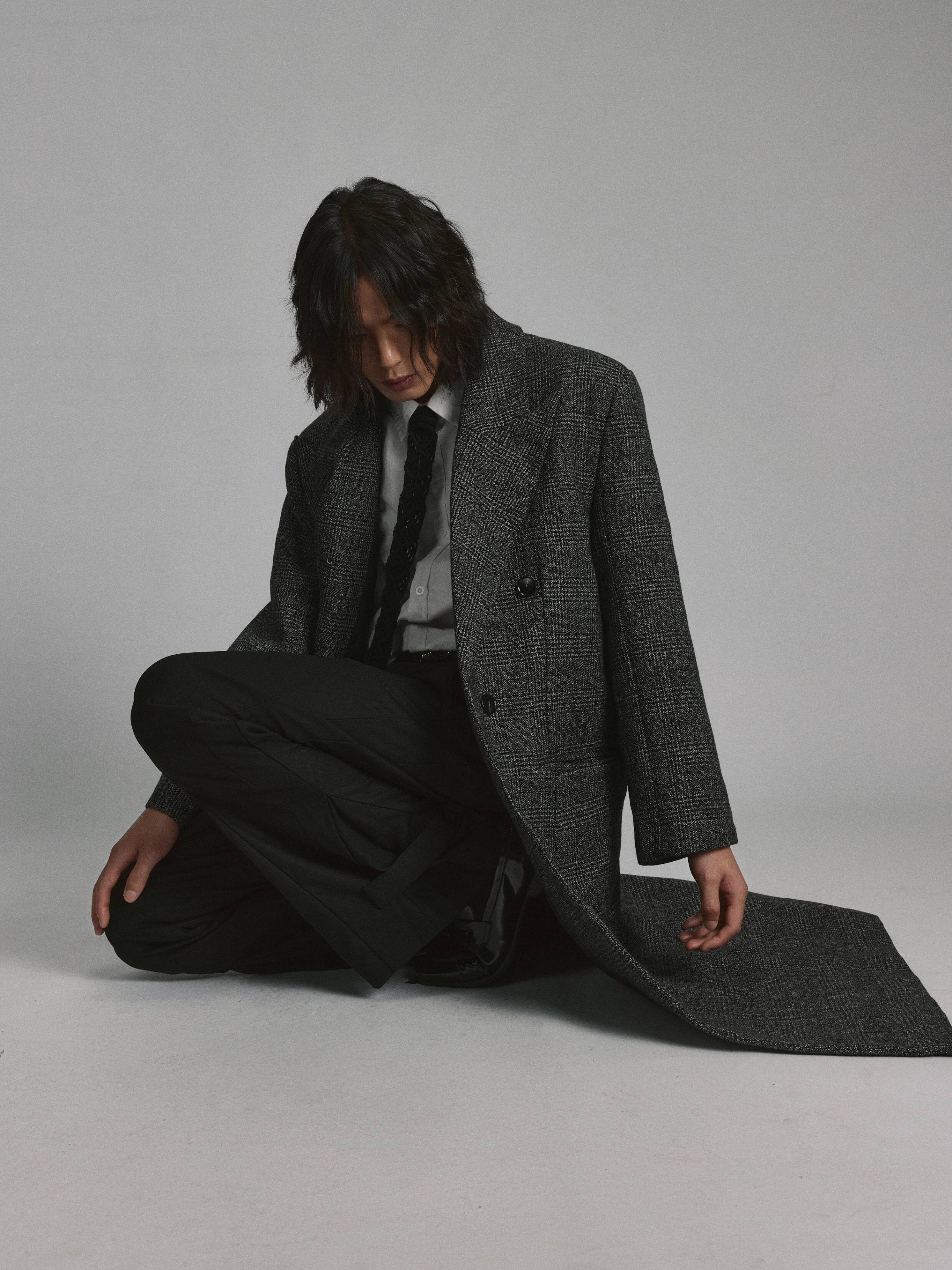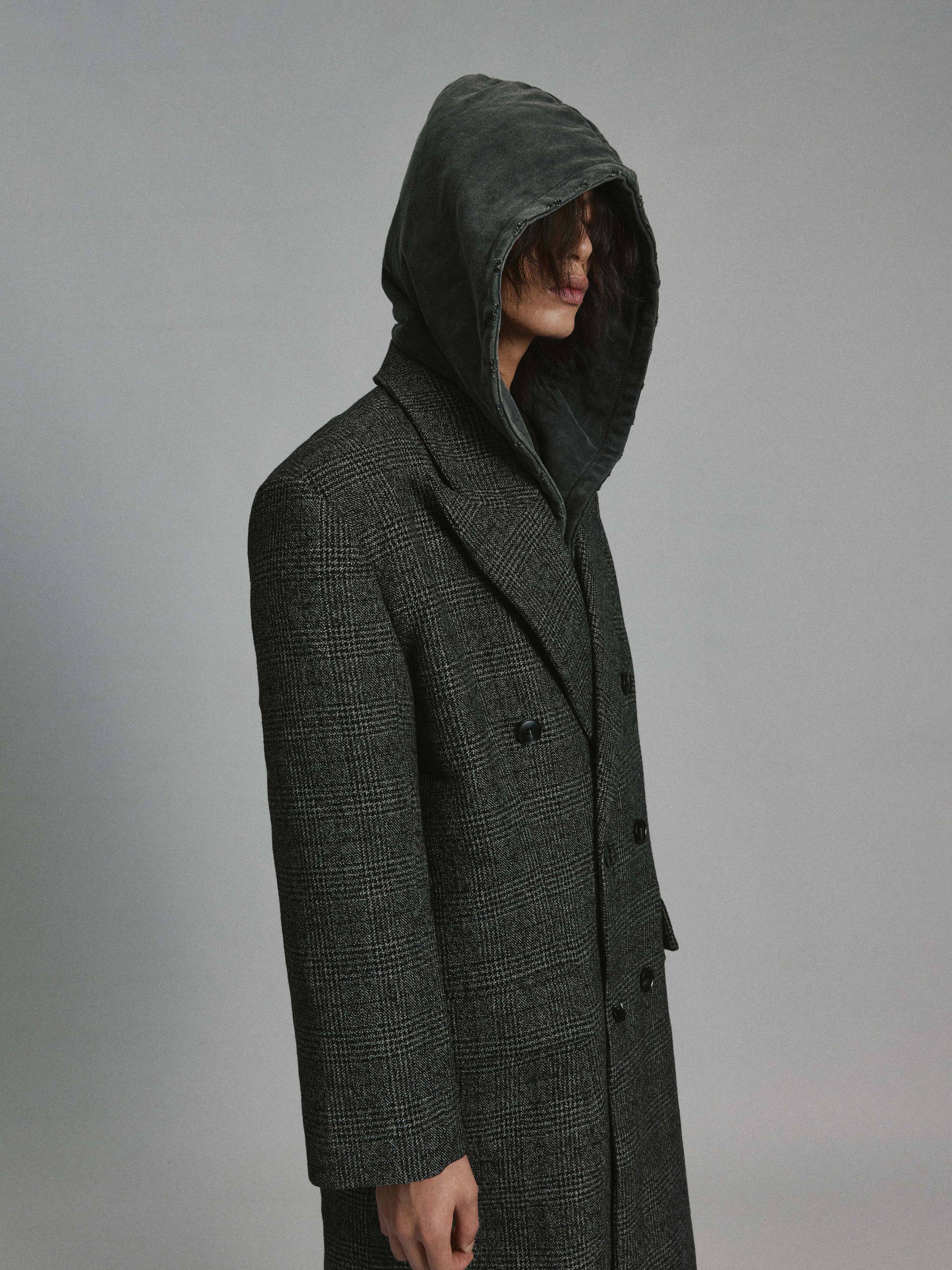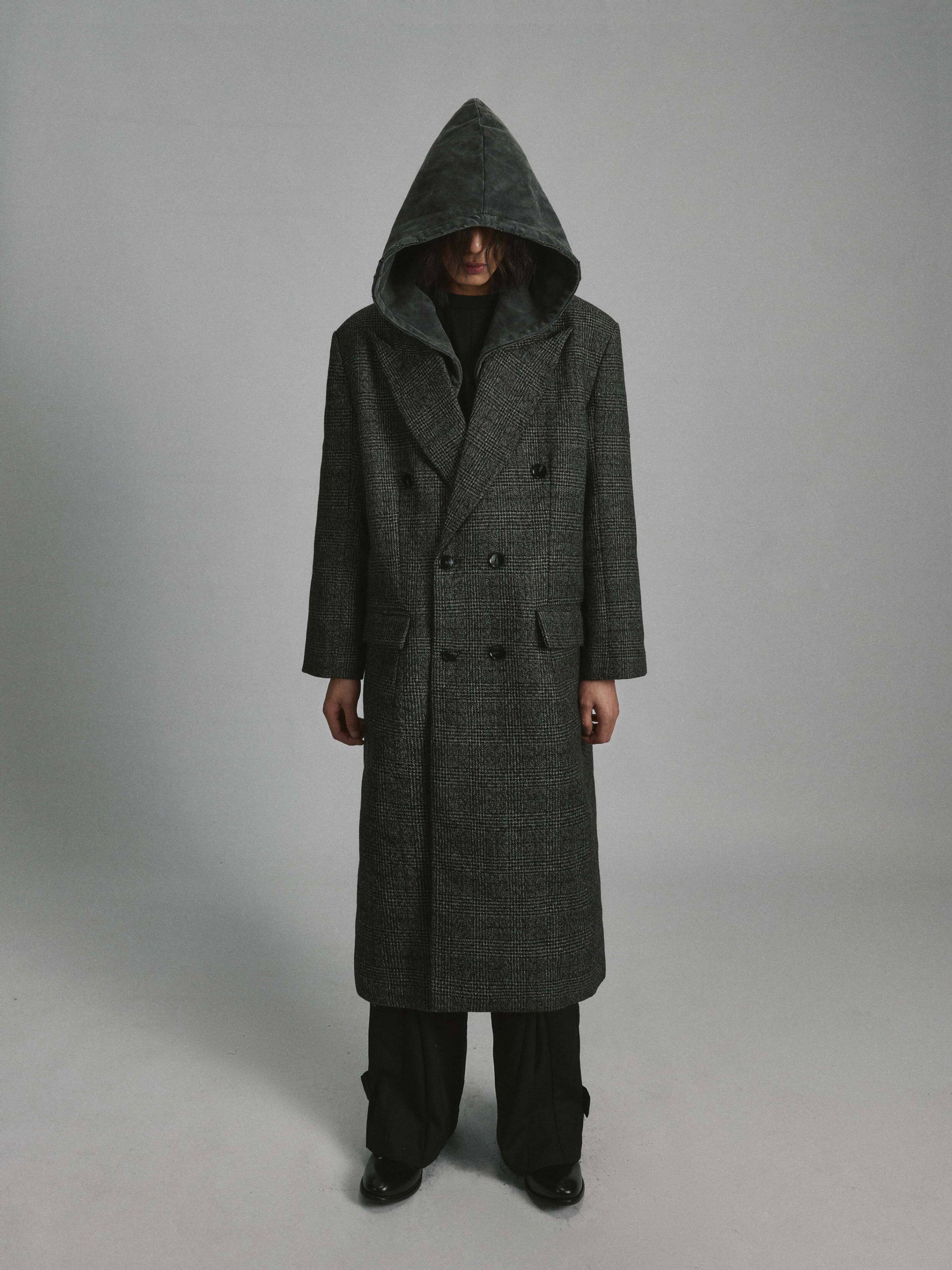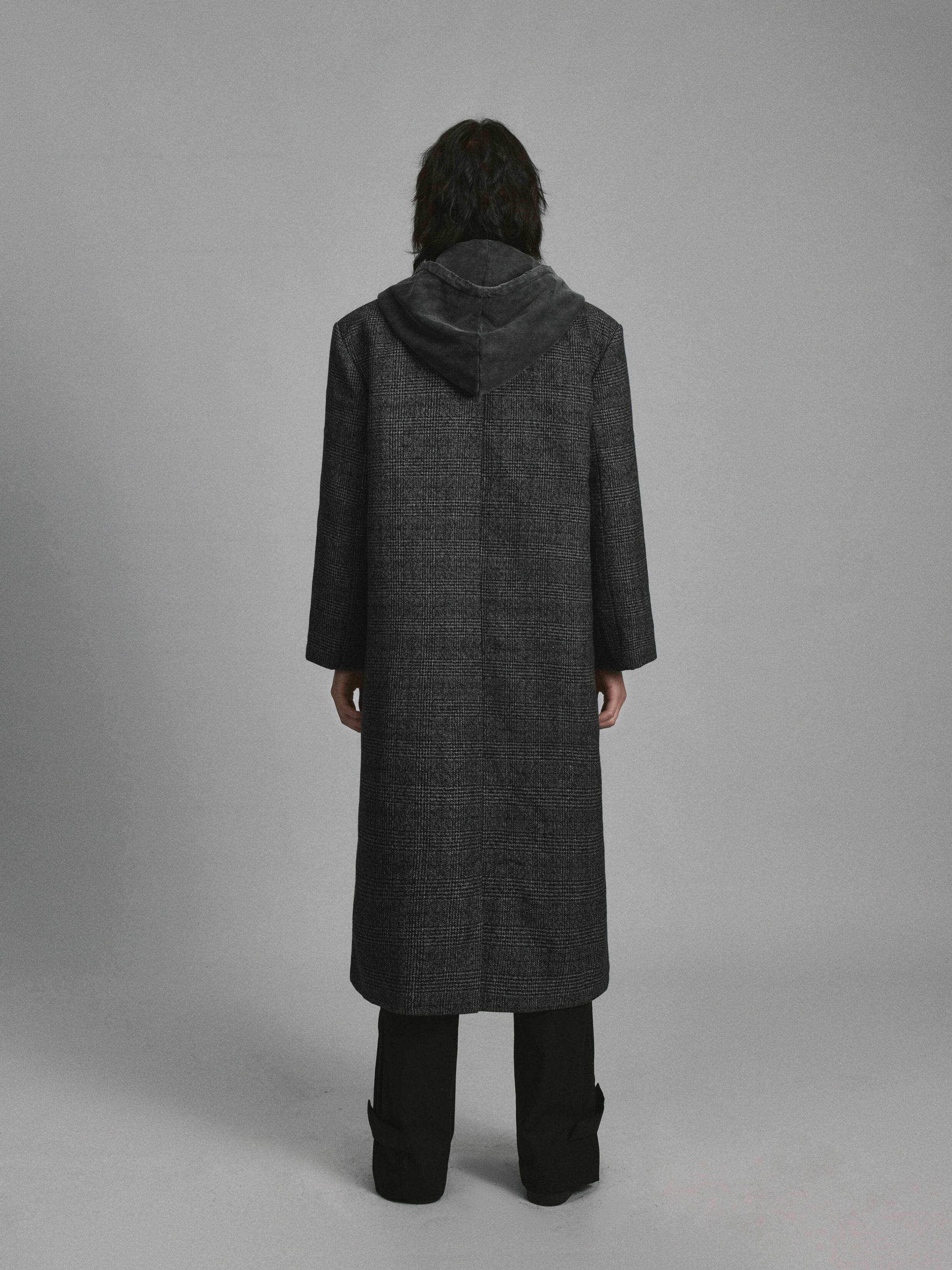 2000Rsk Hebrew Loom Houndstooth Wool Hooded Coat