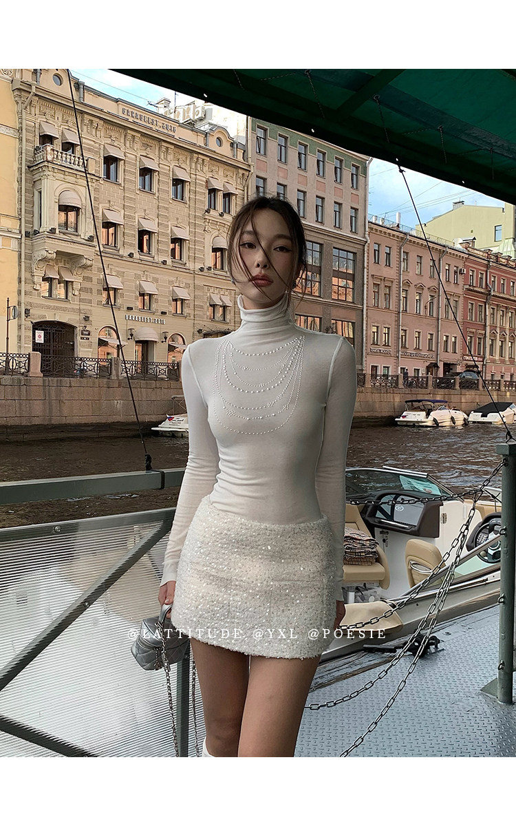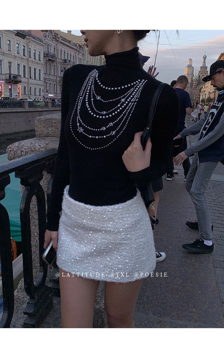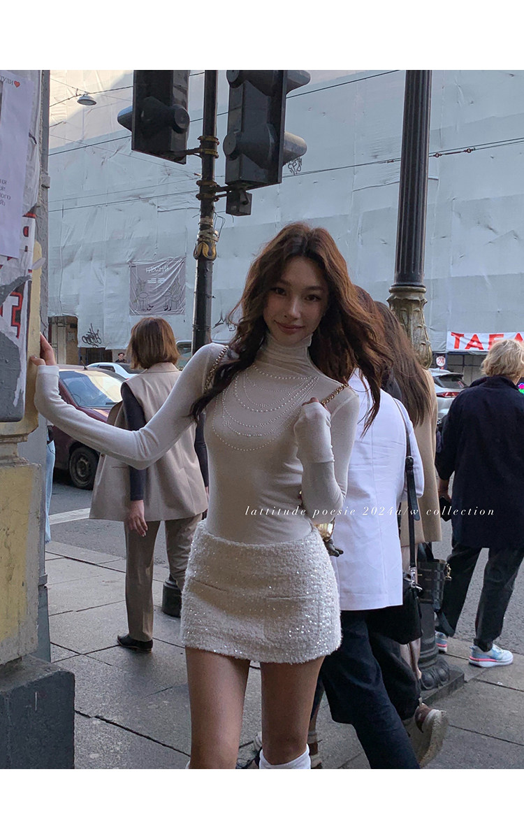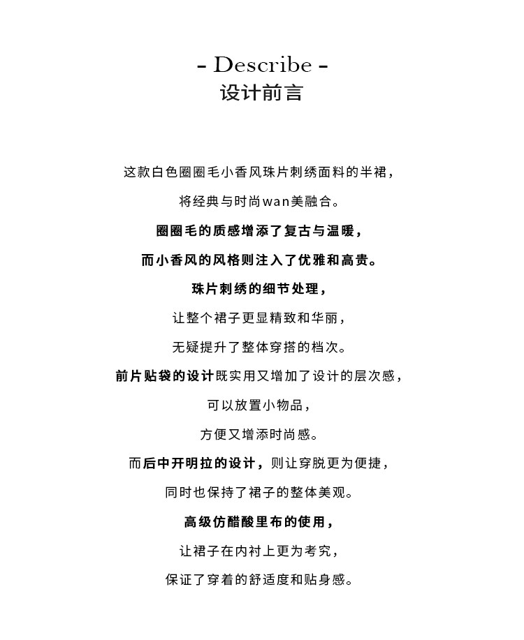 Lattitude/Yang Xiaolu White Sequin Looped Wool Skirt Versatile Slimming A-Line Skirt Short Skirt
