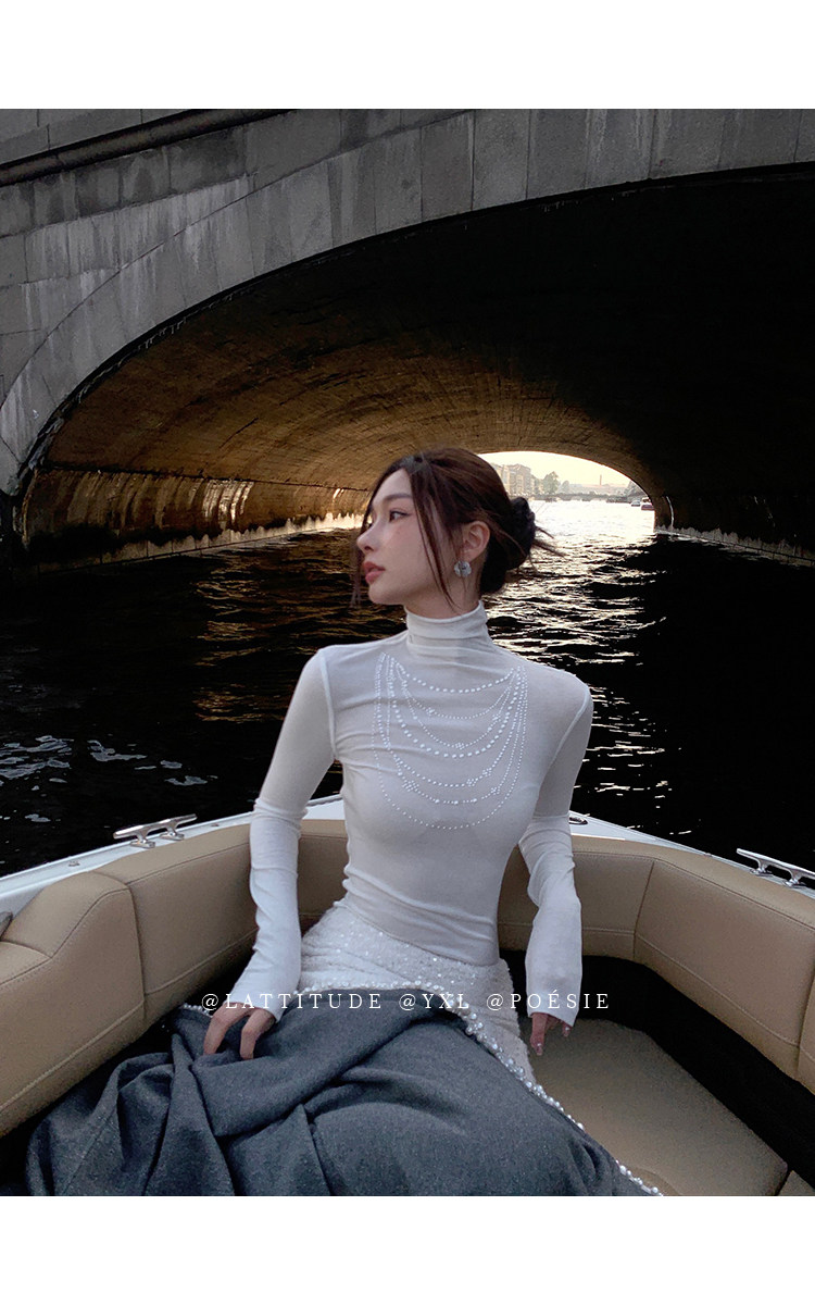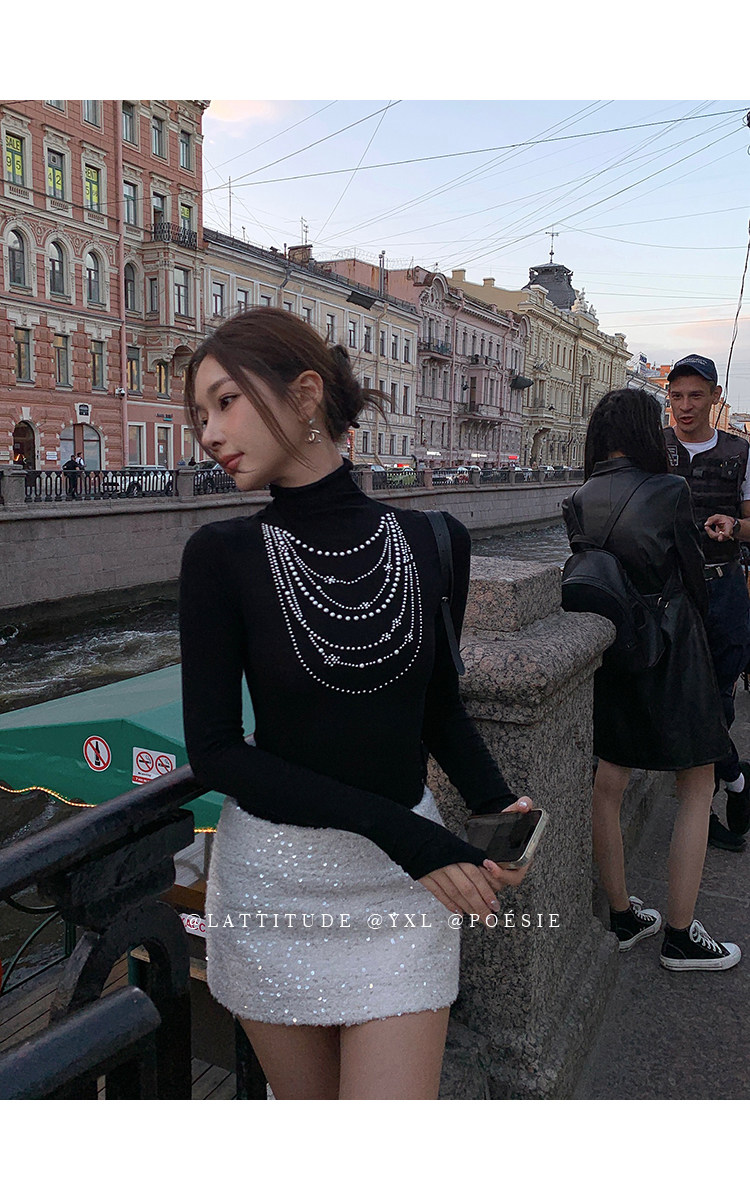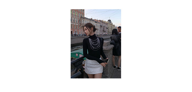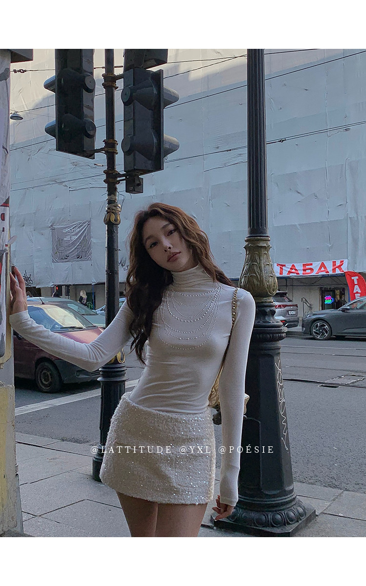 Lattitude/Yang Xiaolu White Sequin Looped Wool Skirt Versatile Slimming A-Line Skirt Short Skirt