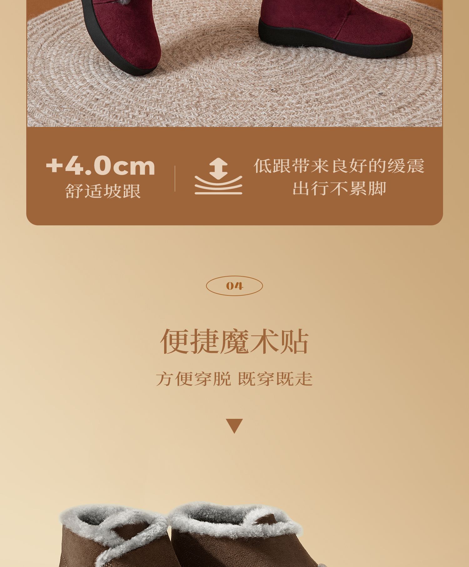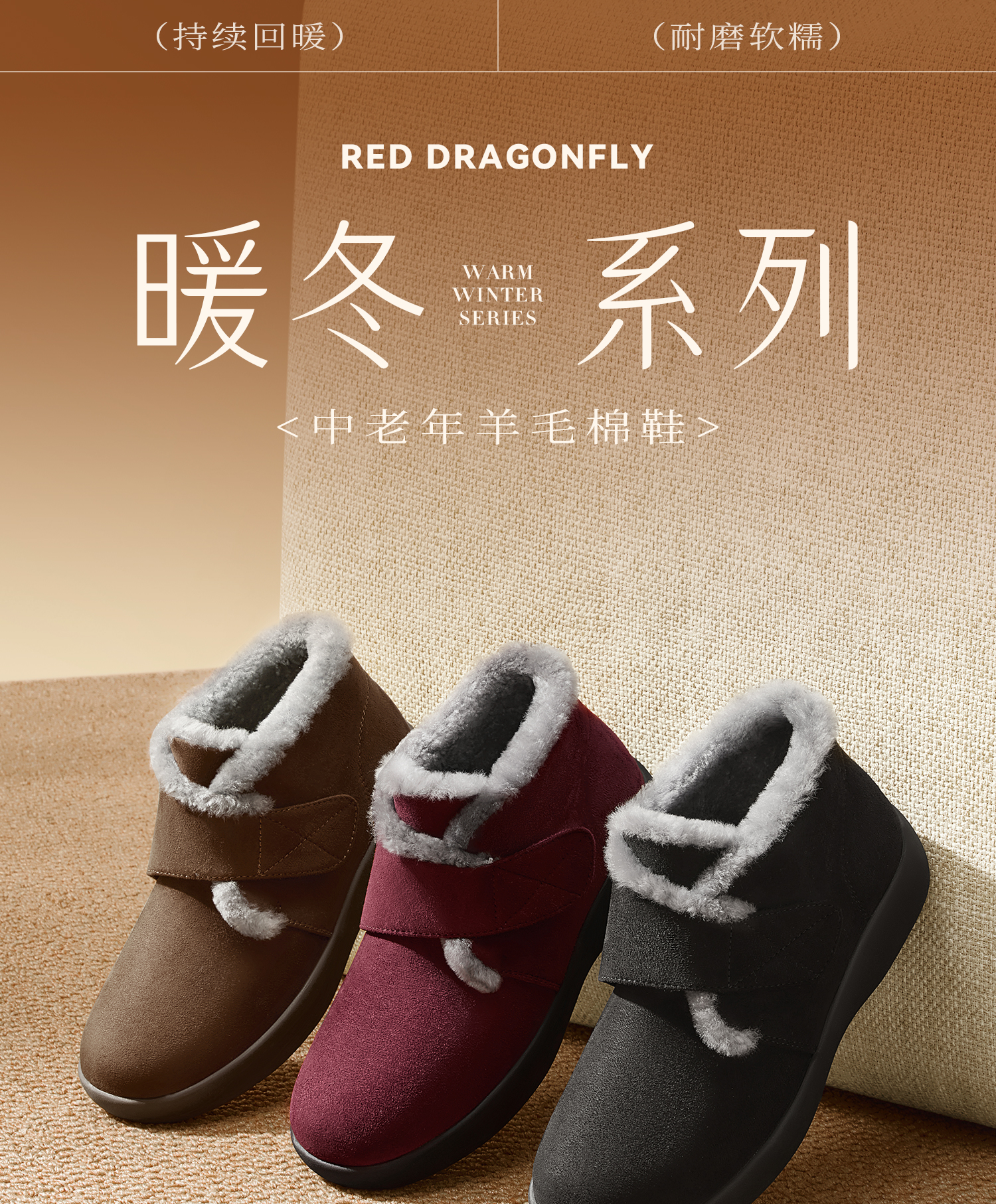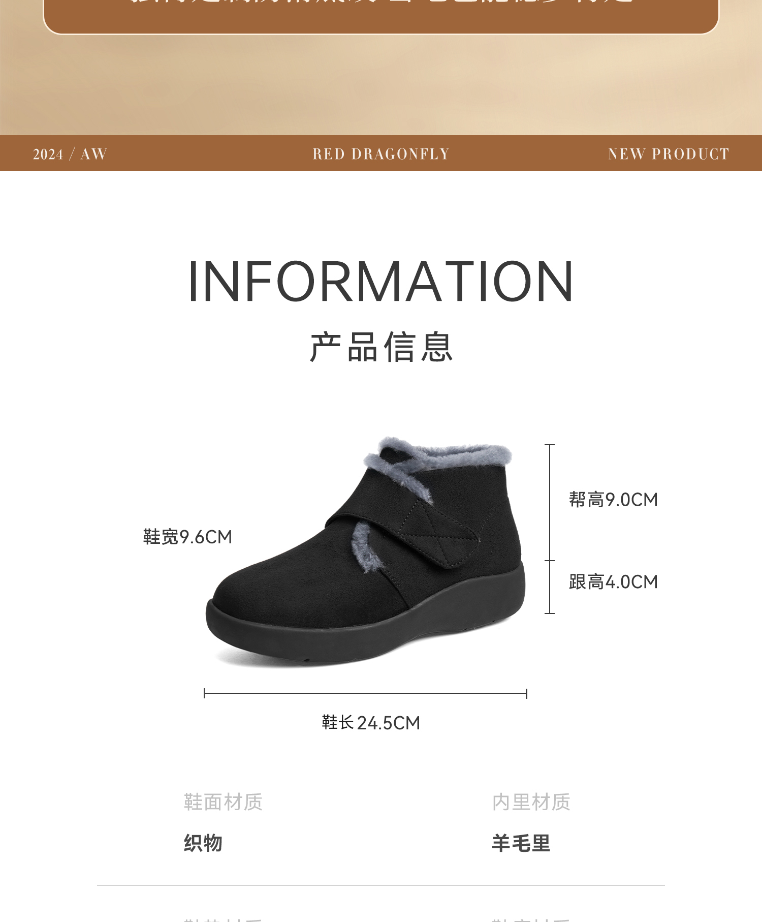 Red Dragonfly Mom Cotton Shoes Winter Fleece-Lined Women's Shoes Elderly Shoes Middle-Aged and Elderly Shoes Warm Non-Slip Wool Snow Boots
