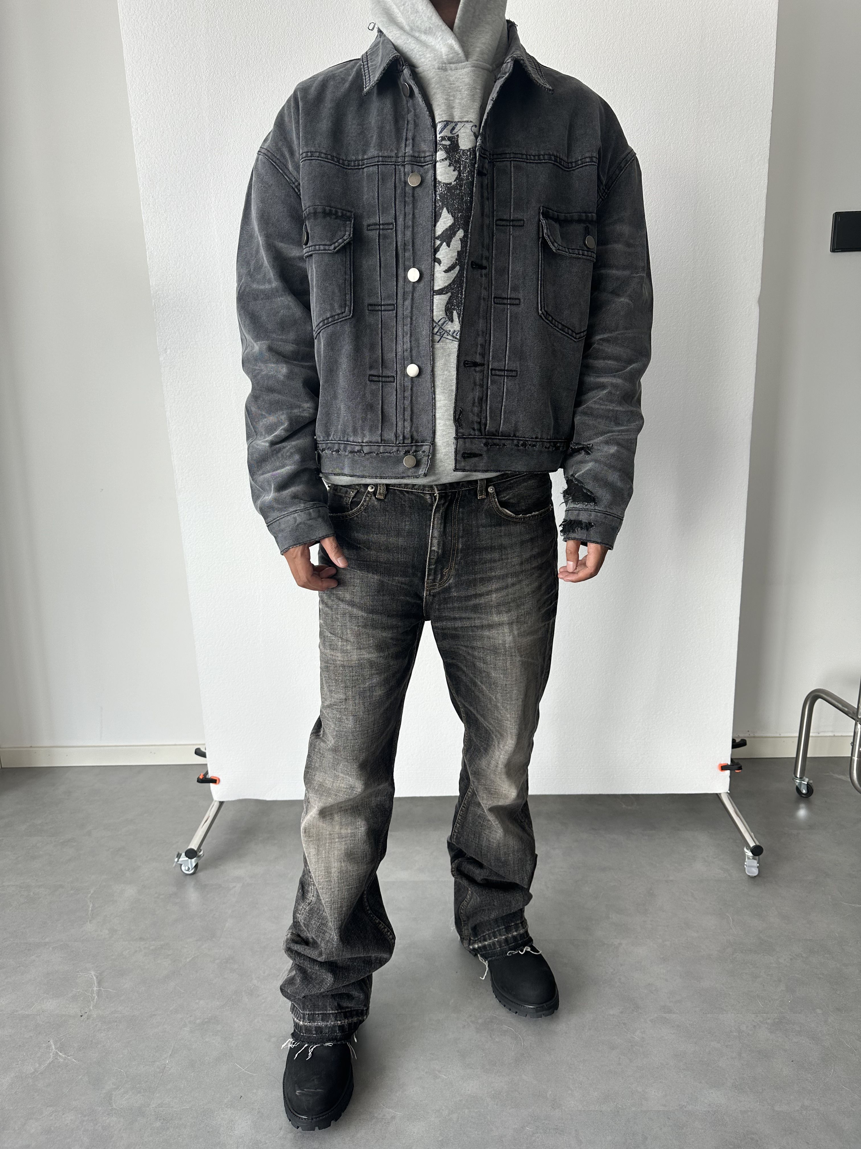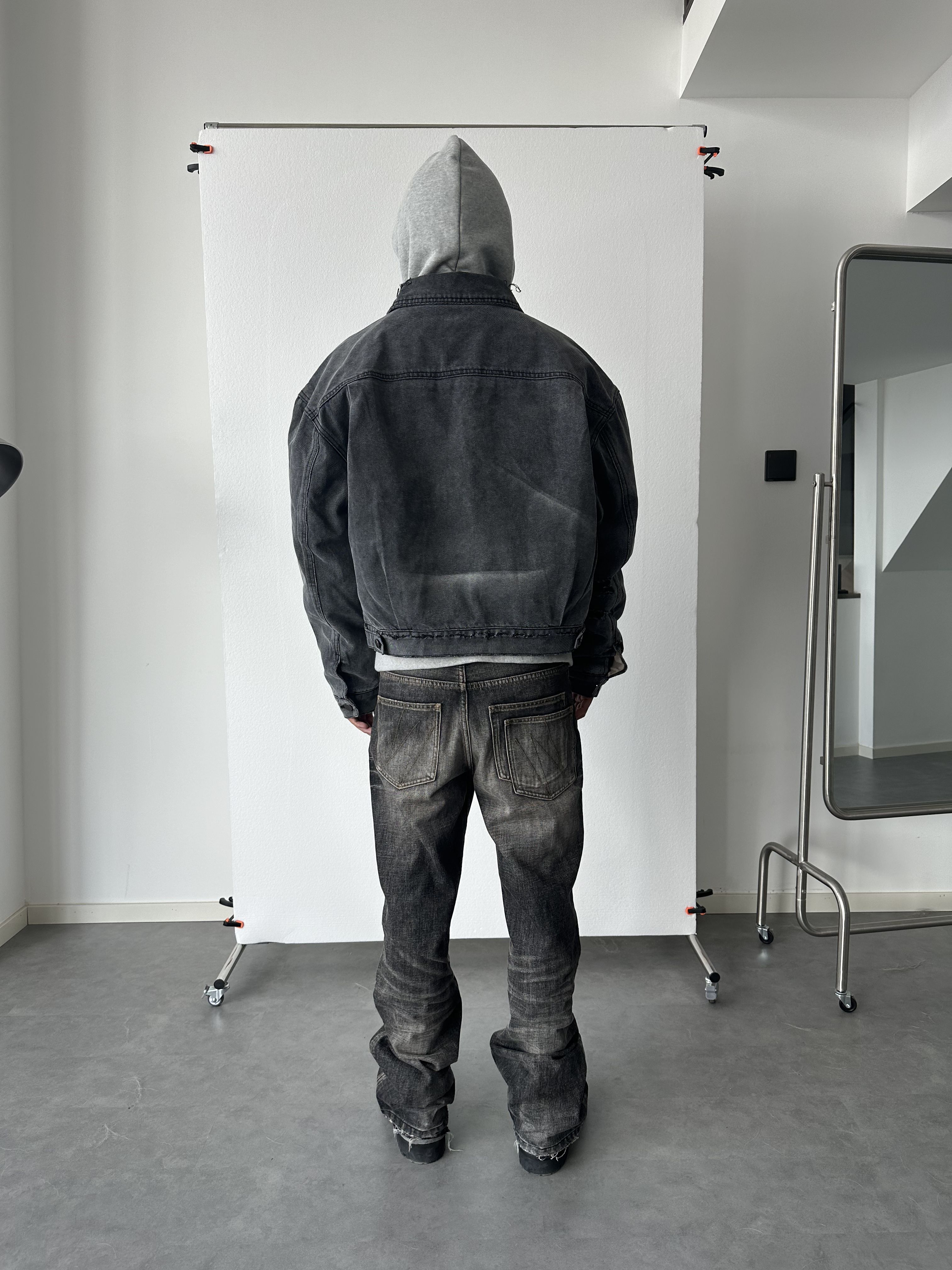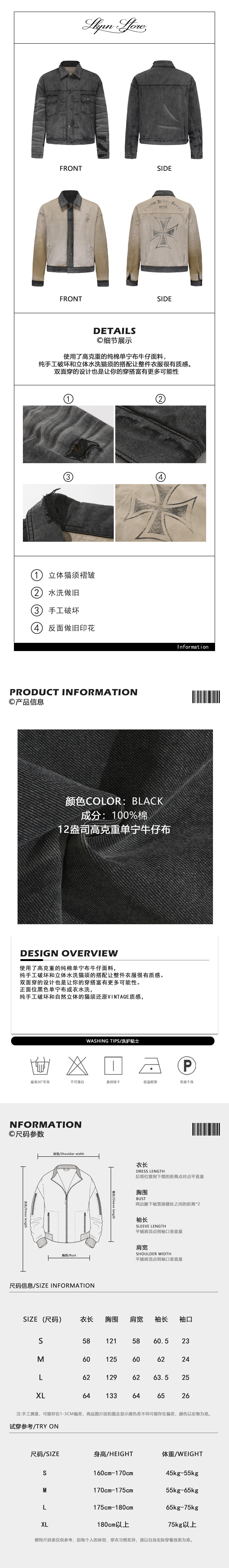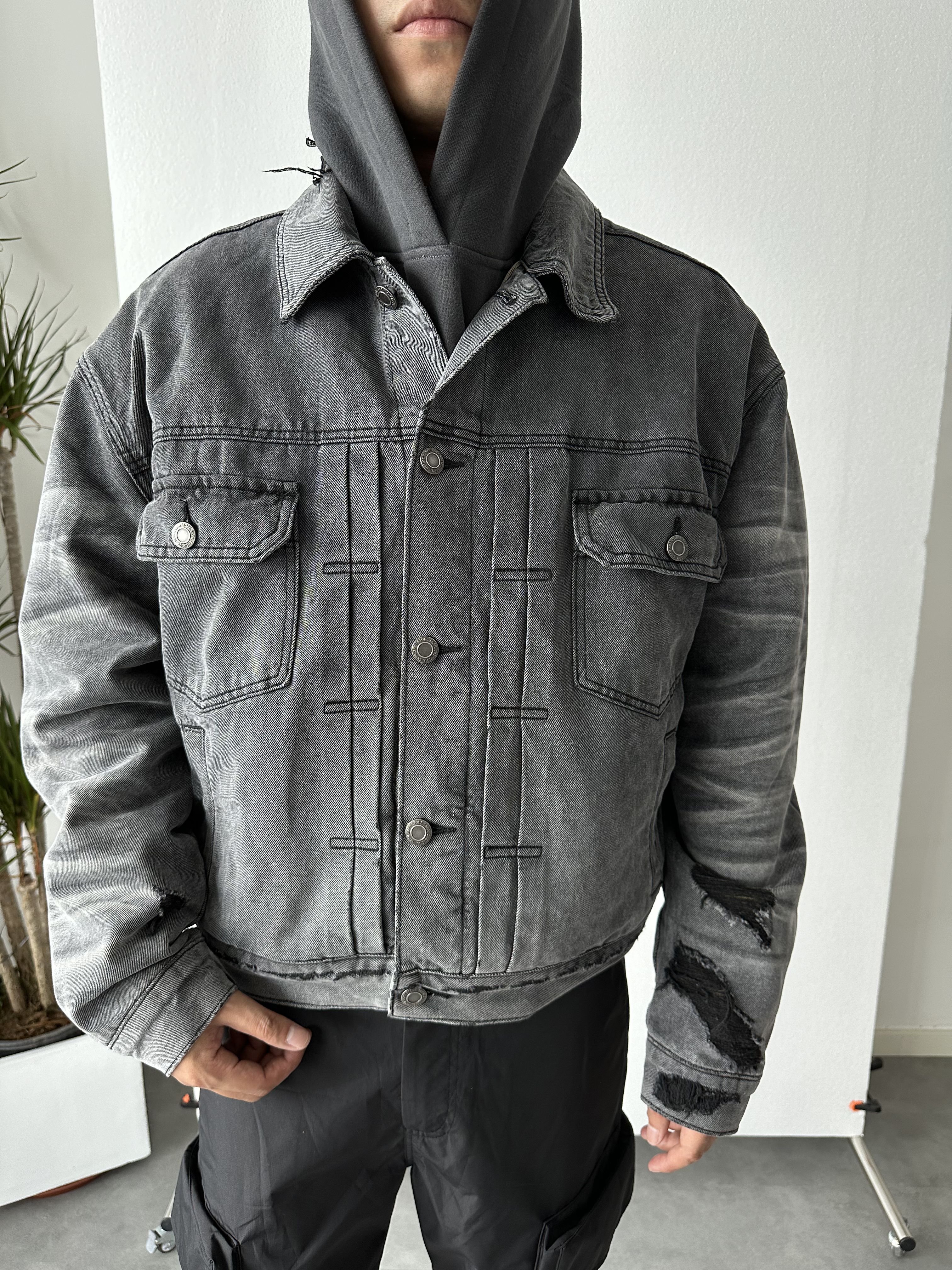 Skpn Double-Layer 12oz High-Weight Washed Vintage Handmade Three-Dimensional Whiskered Distressed Reversible Denim Jacket