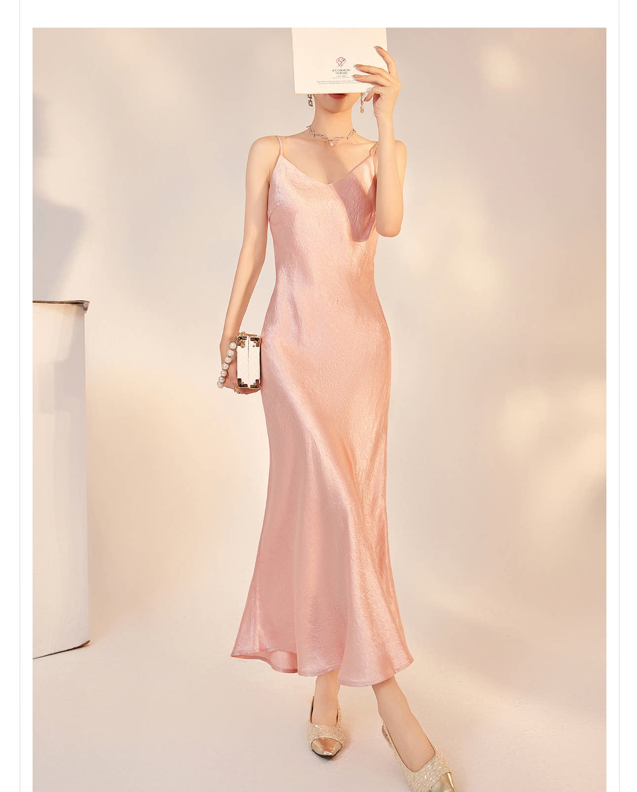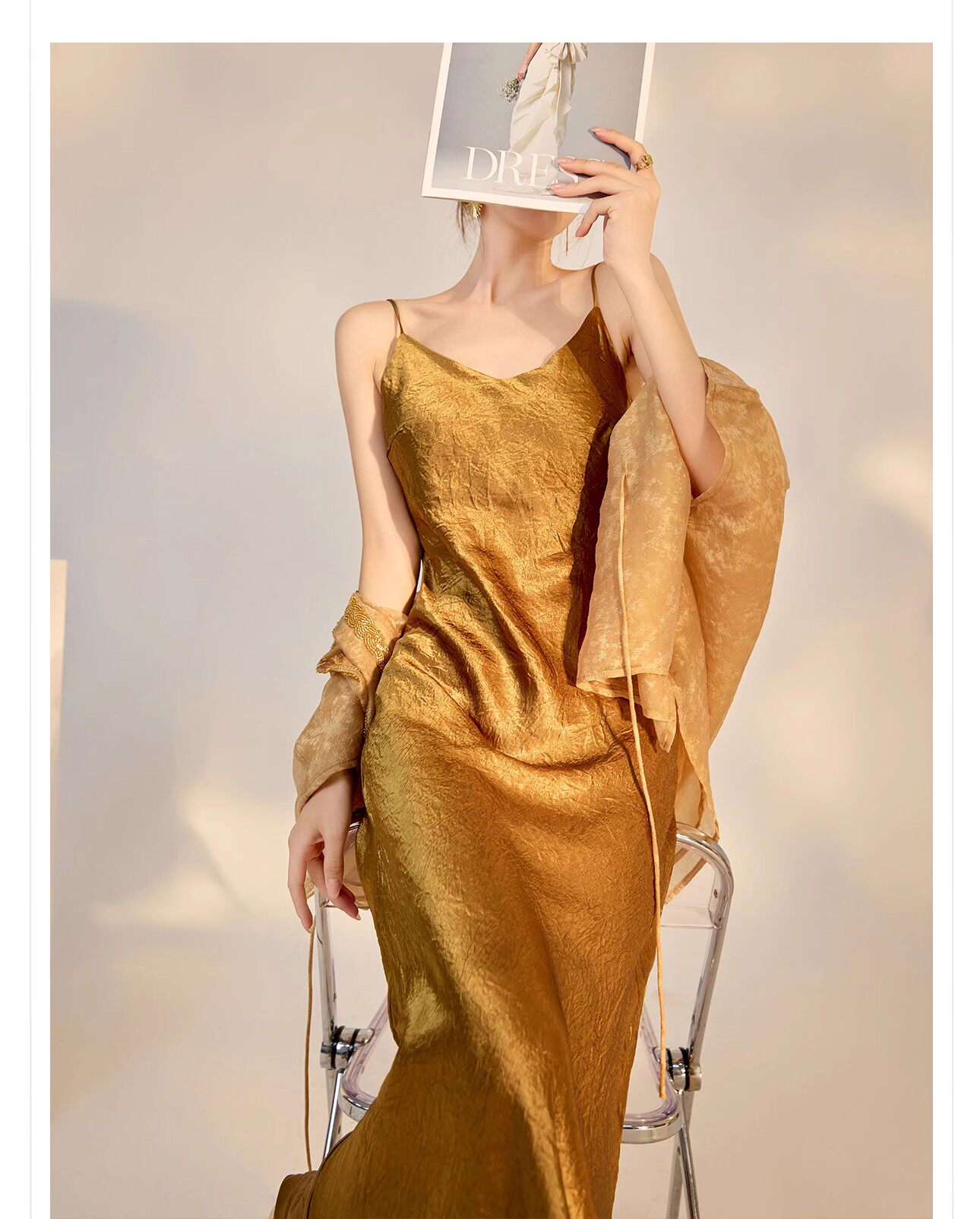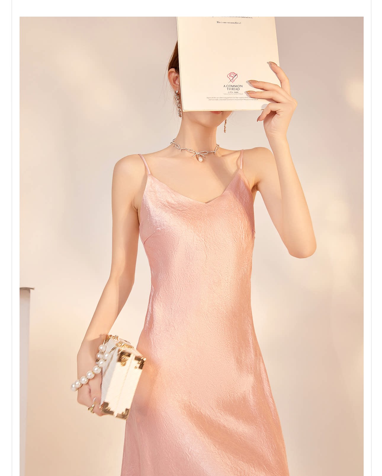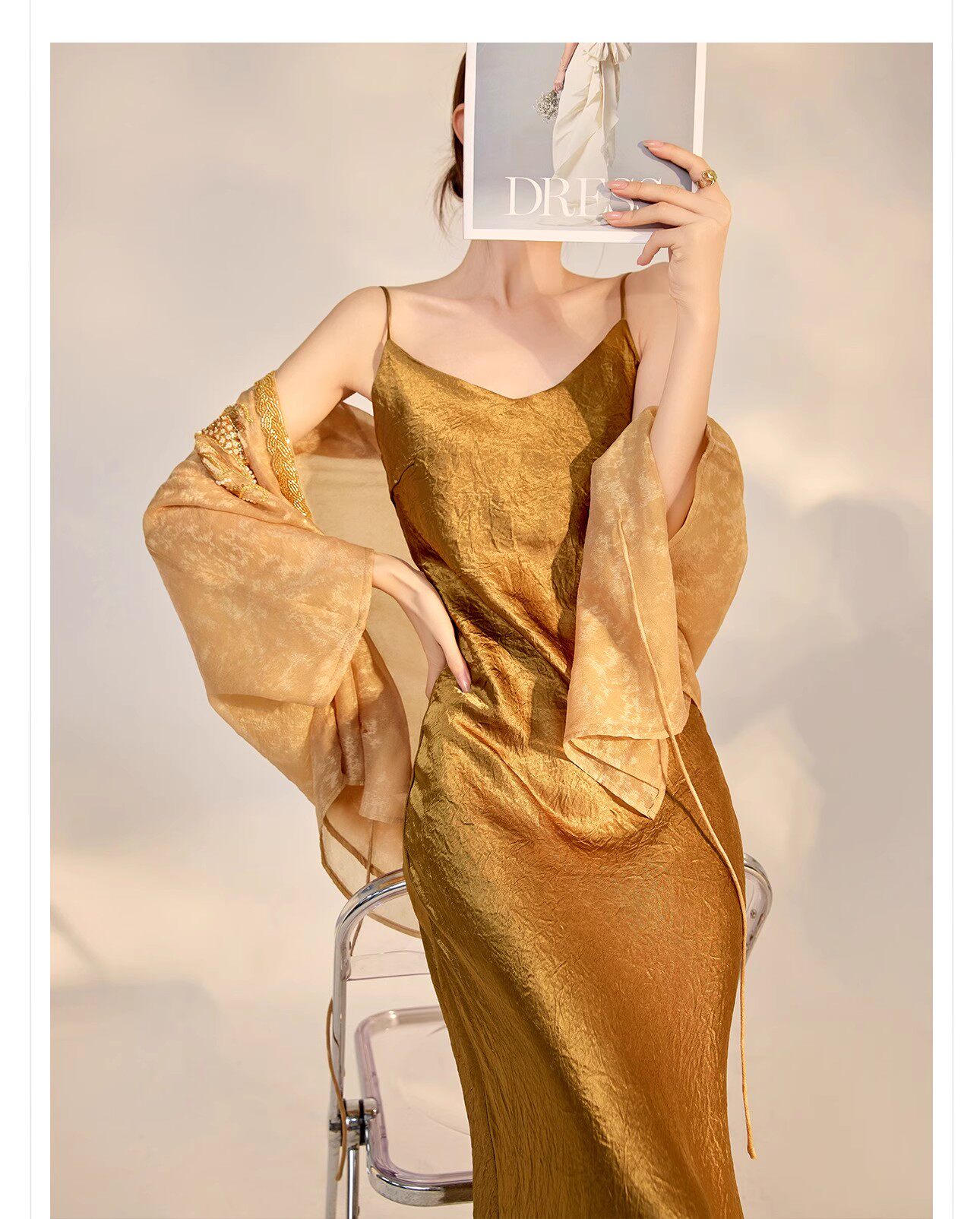 Tang Dou Haute Couture【Yunshang】New Chinese Style Solid Color Waist Acetate Strap Dress Simple Light Luxury Long Dress