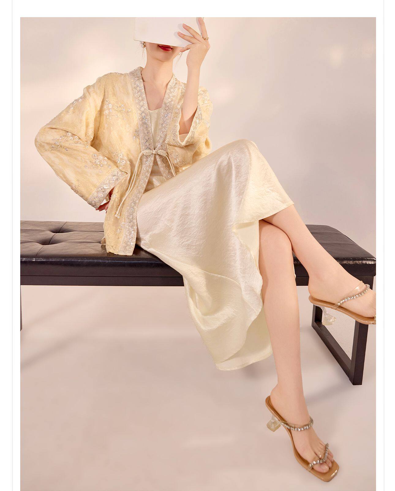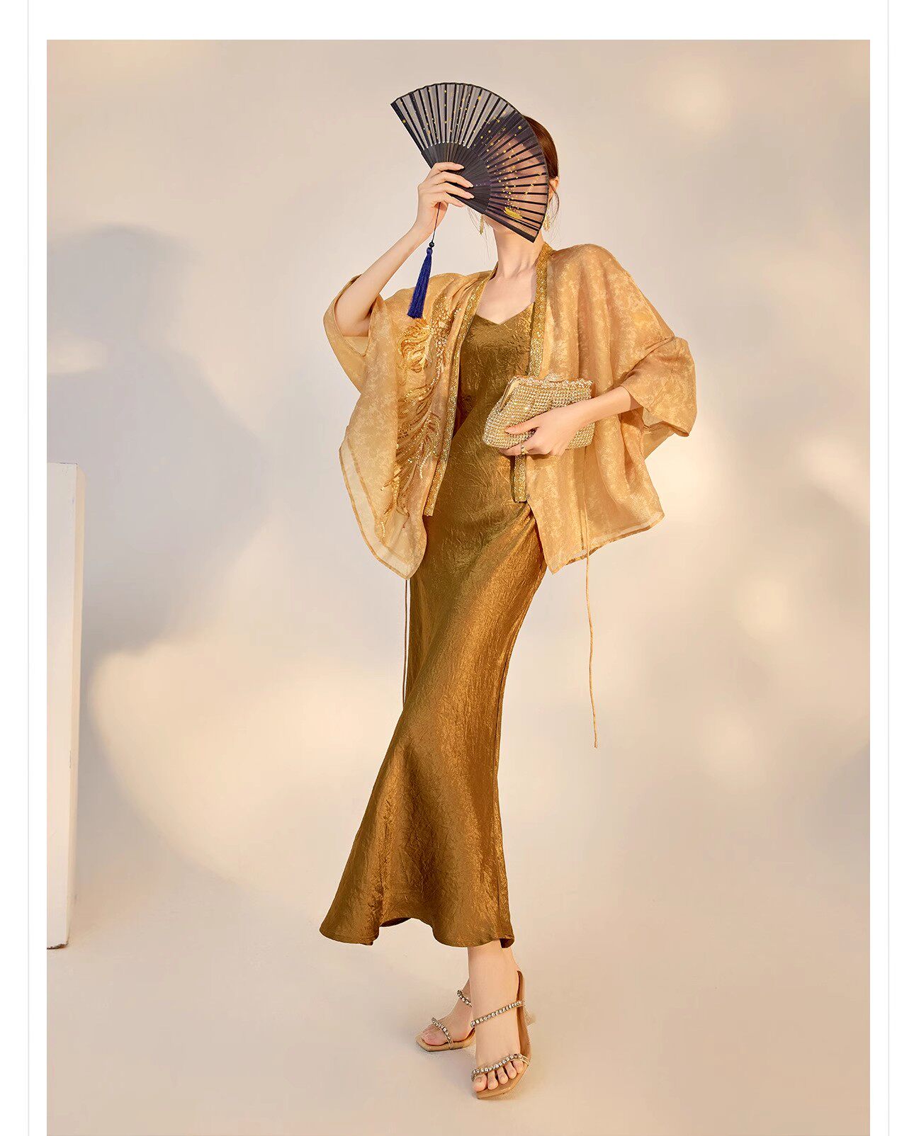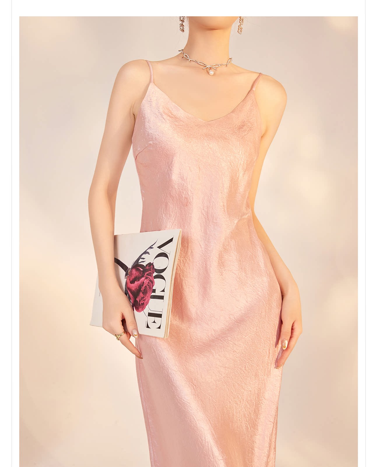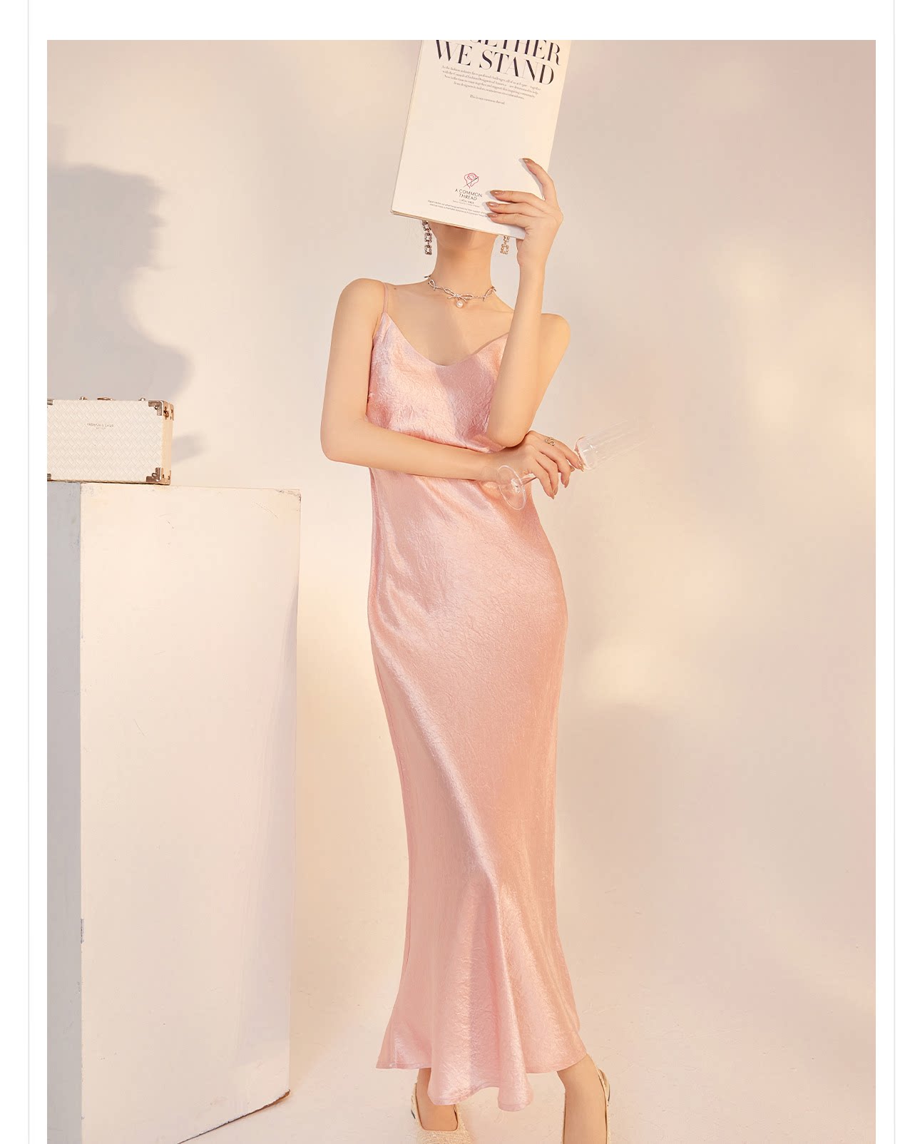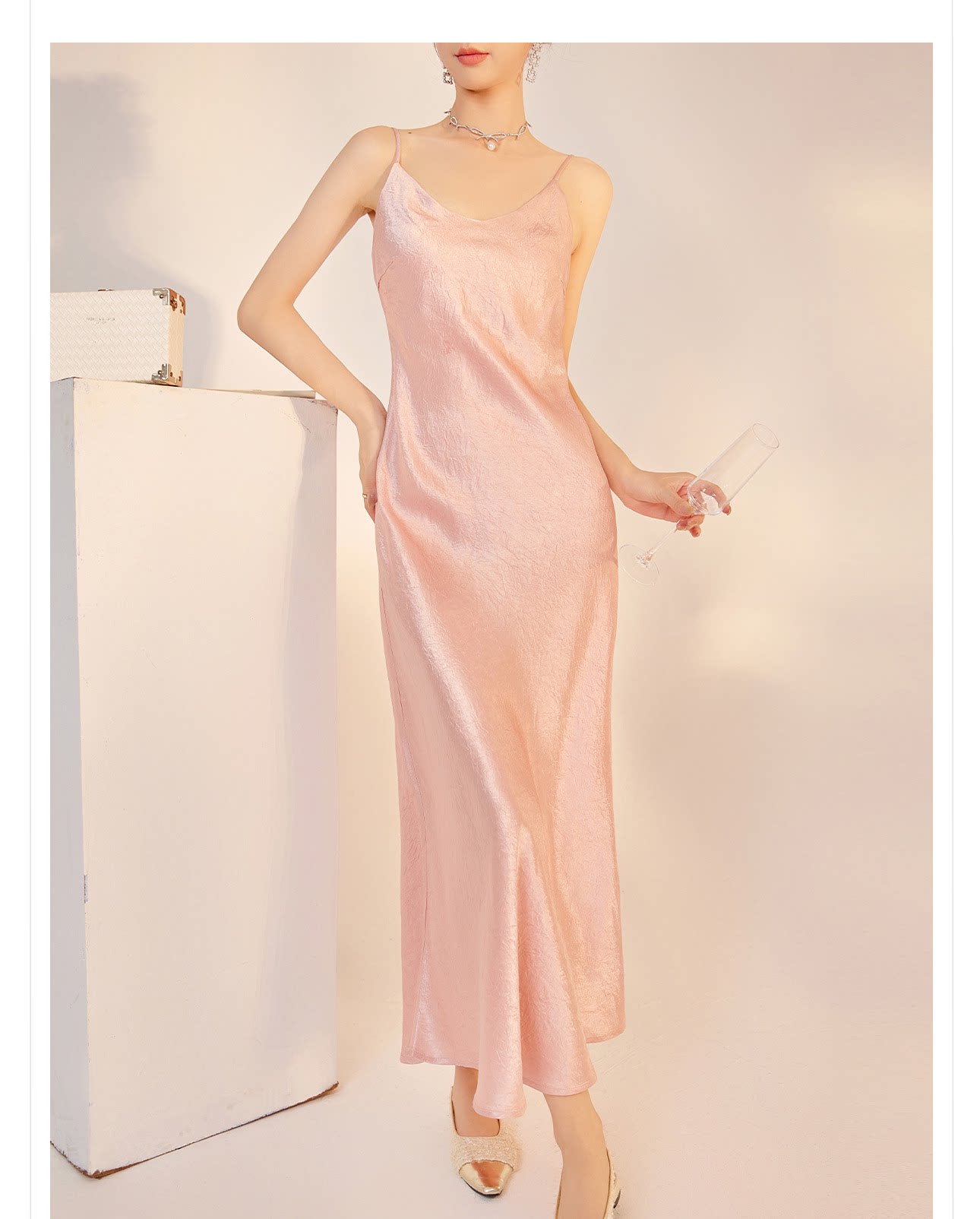 Tang Dou Haute Couture【Yunshang】New Chinese Style Solid Color Waist Acetate Strap Dress Simple Light Luxury Long Dress