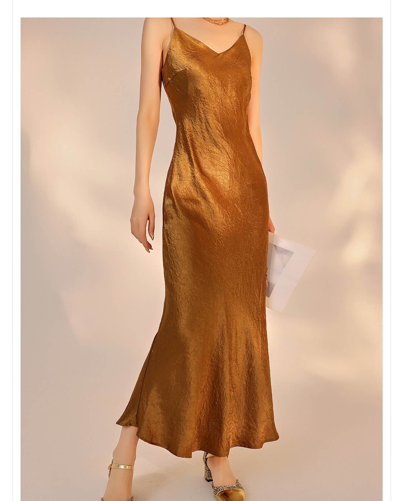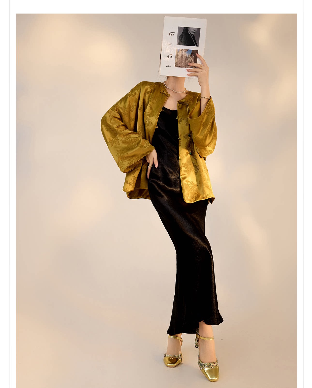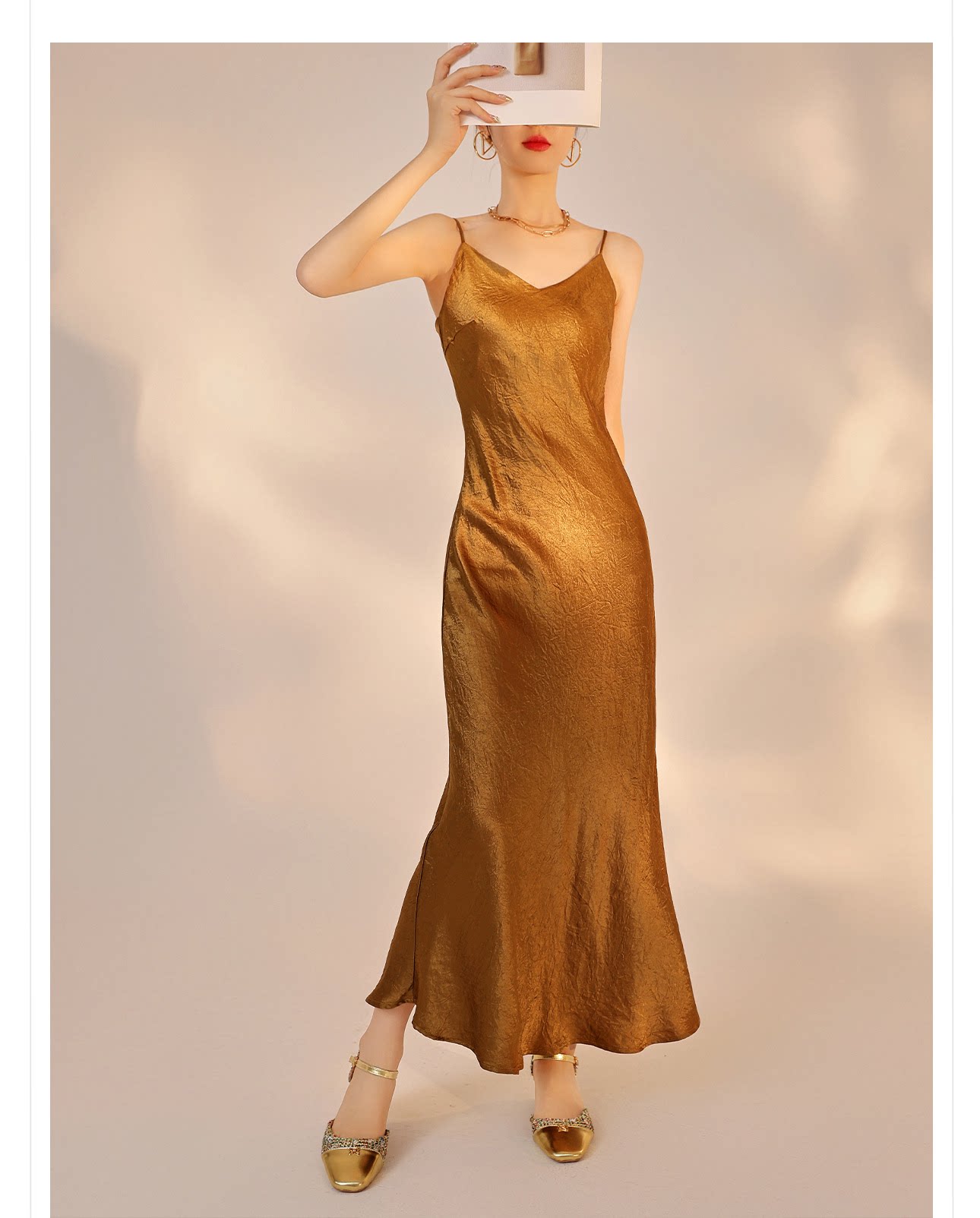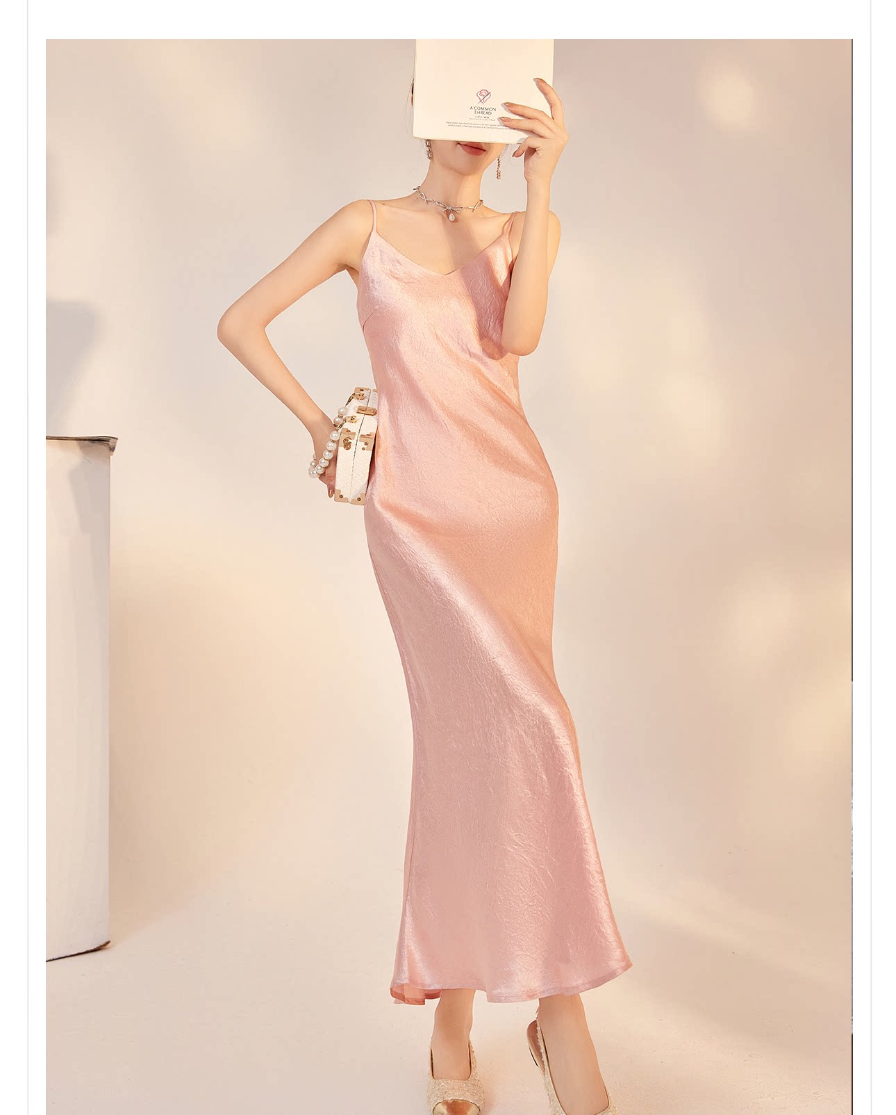 Tang Dou Haute Couture【Yunshang】New Chinese Style Solid Color Waist Acetate Strap Dress Simple Light Luxury Long Dress