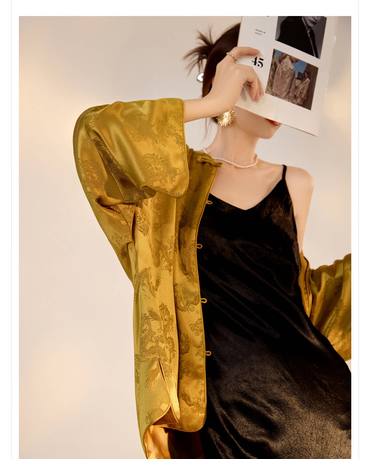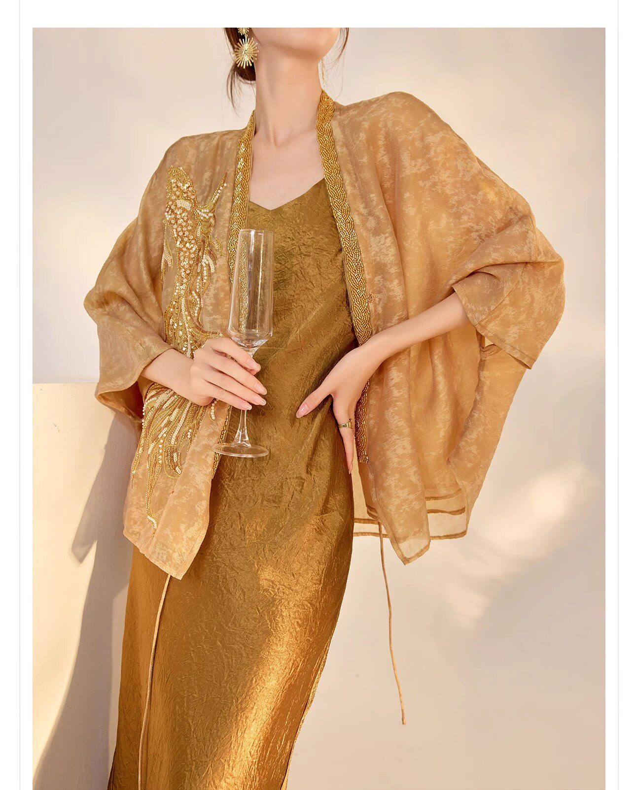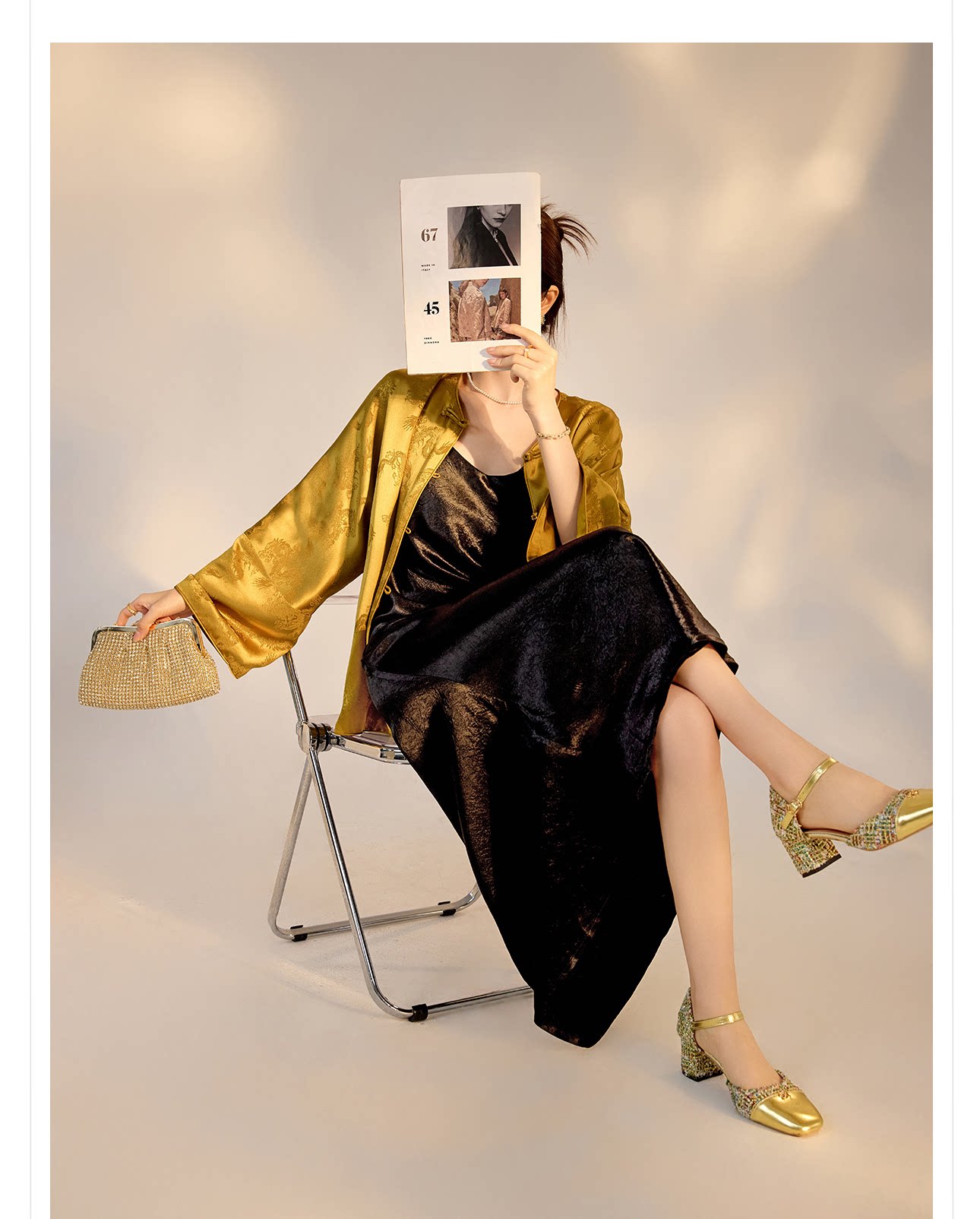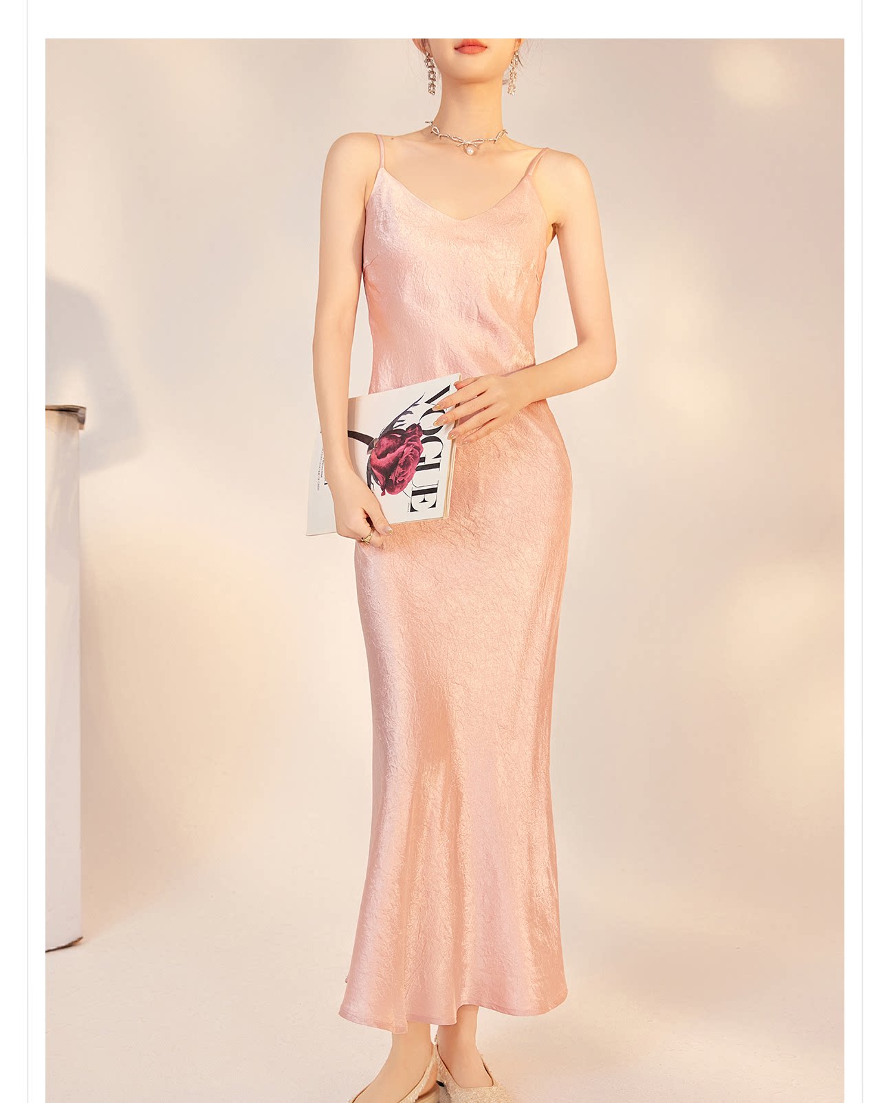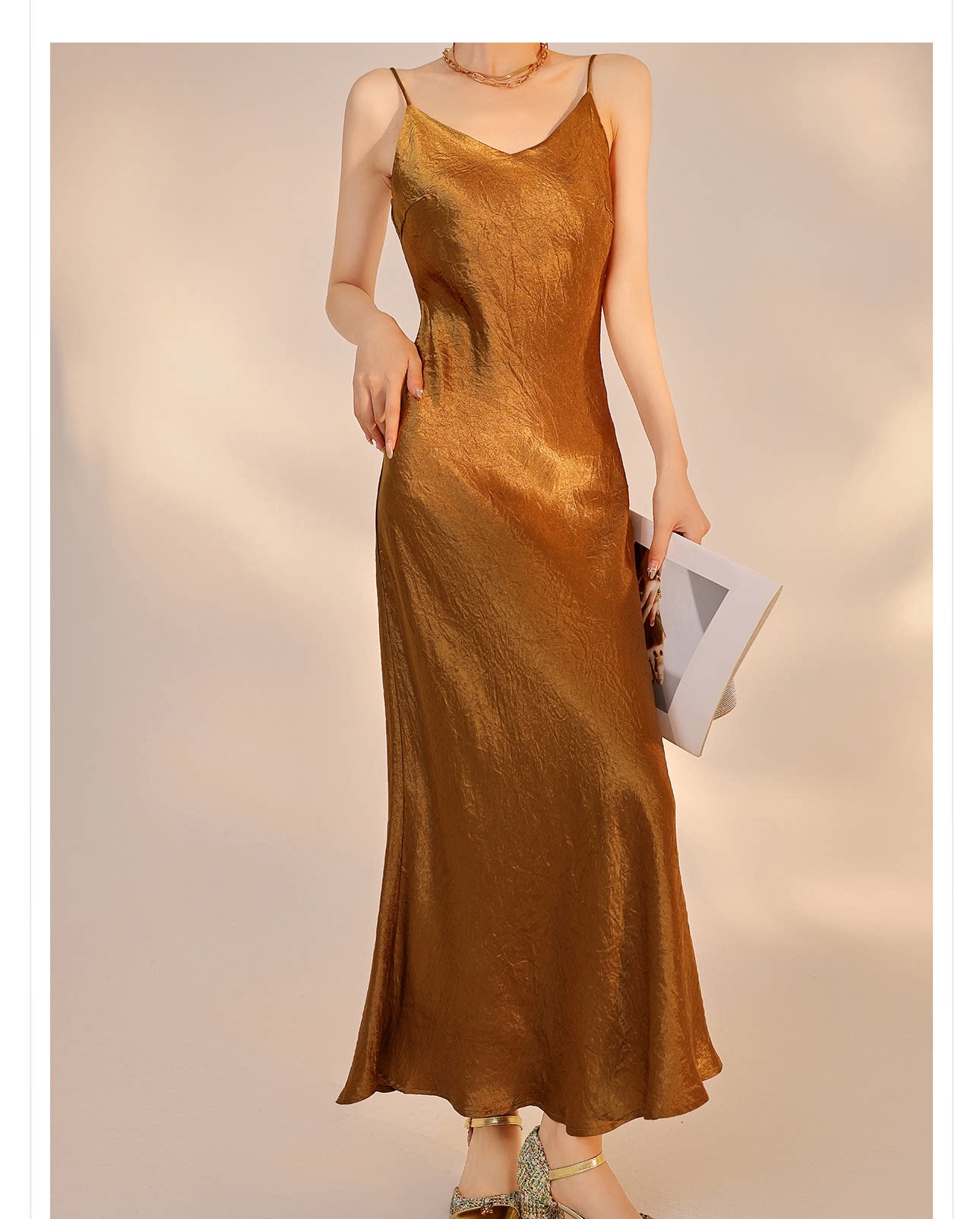 Tang Dou Haute Couture【Yunshang】New Chinese Style Solid Color Waist Acetate Strap Dress Simple Light Luxury Long Dress