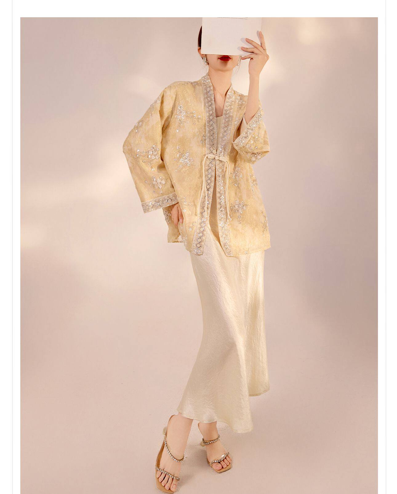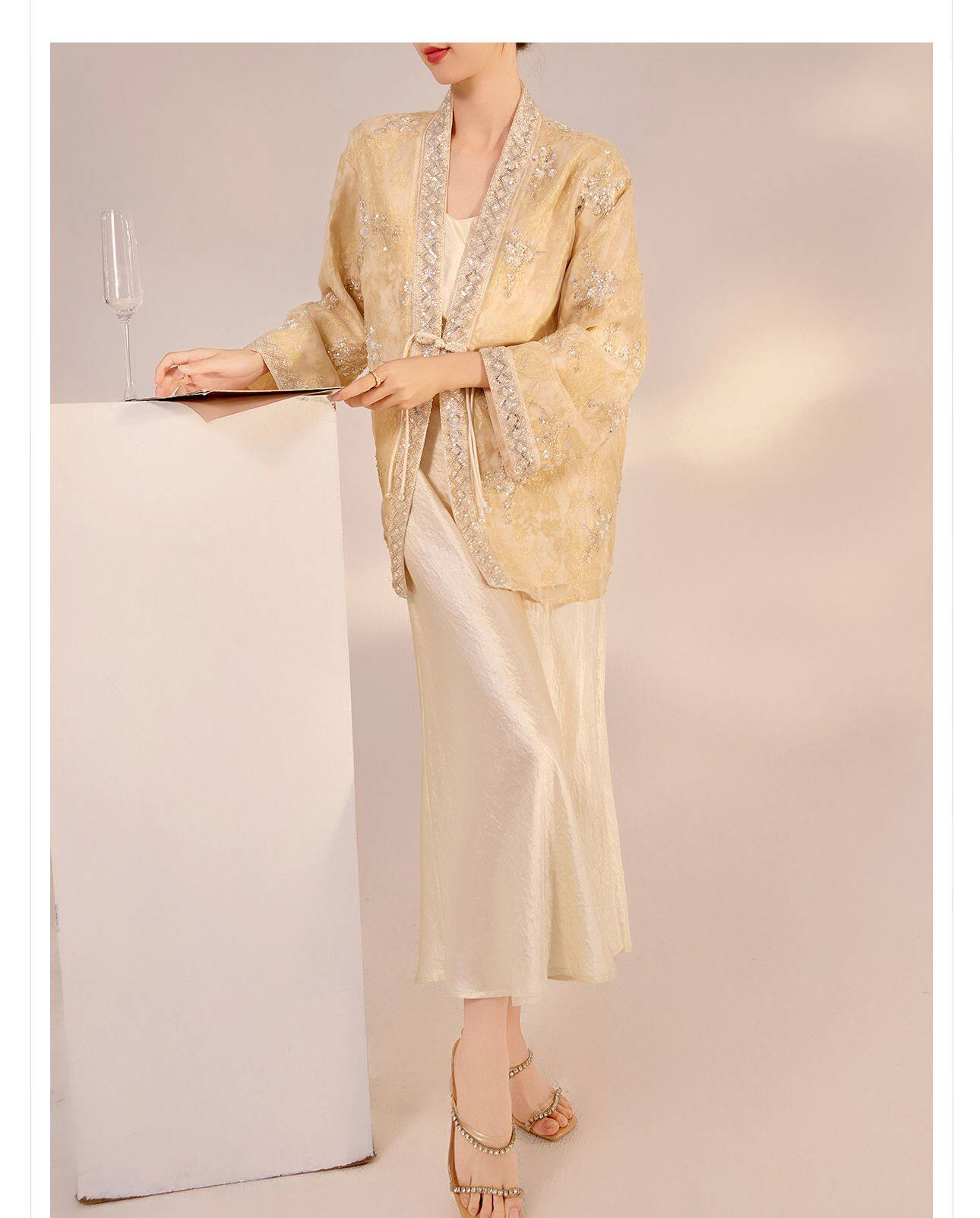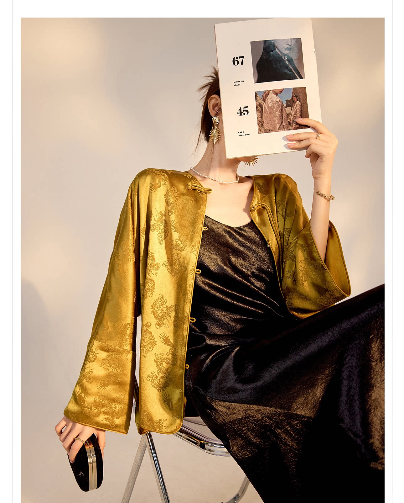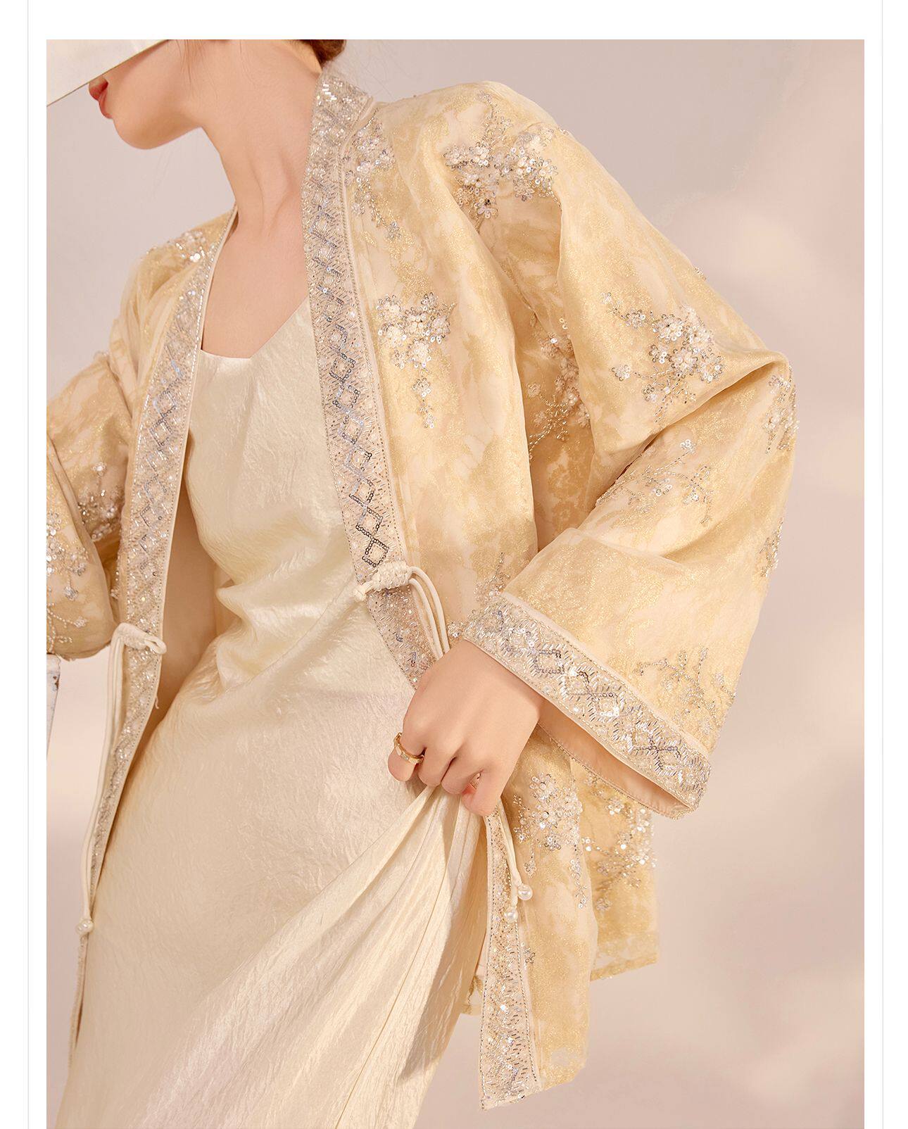 Tang Dou Haute Couture【Yunshang】New Chinese Style Solid Color Waist Acetate Strap Dress Simple Light Luxury Long Dress