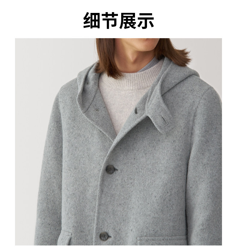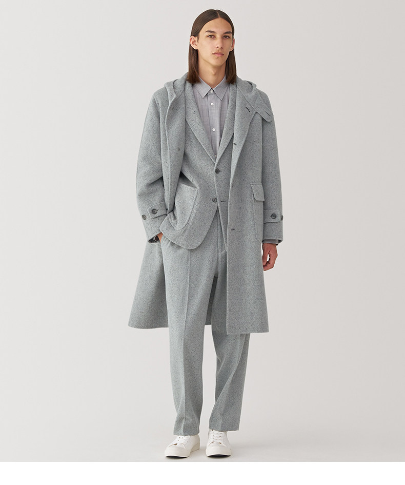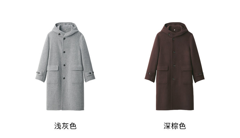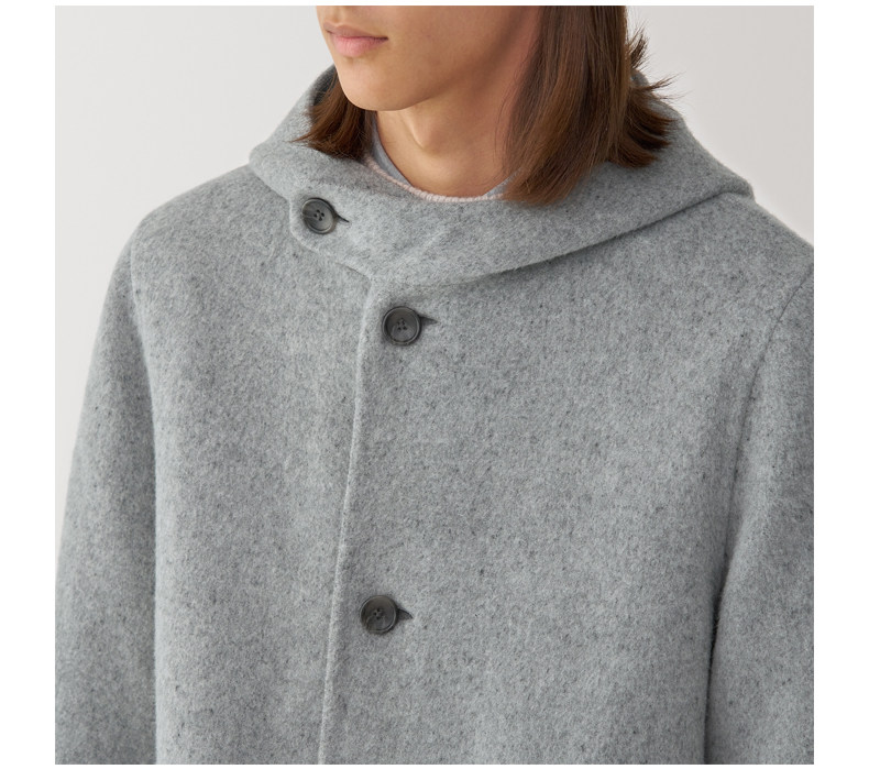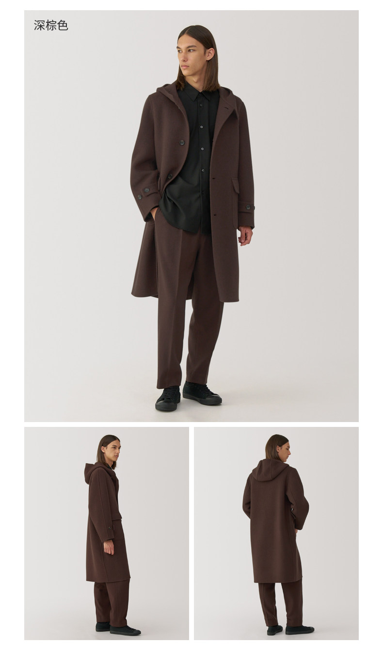 Muji Labo Men's Cashmere Blend Hooded Coat Woolen Coat Winter Jacket