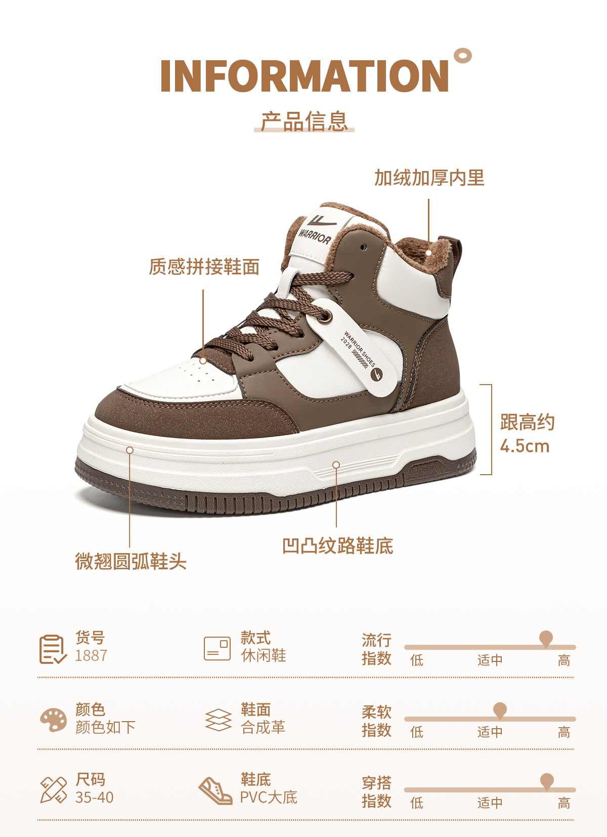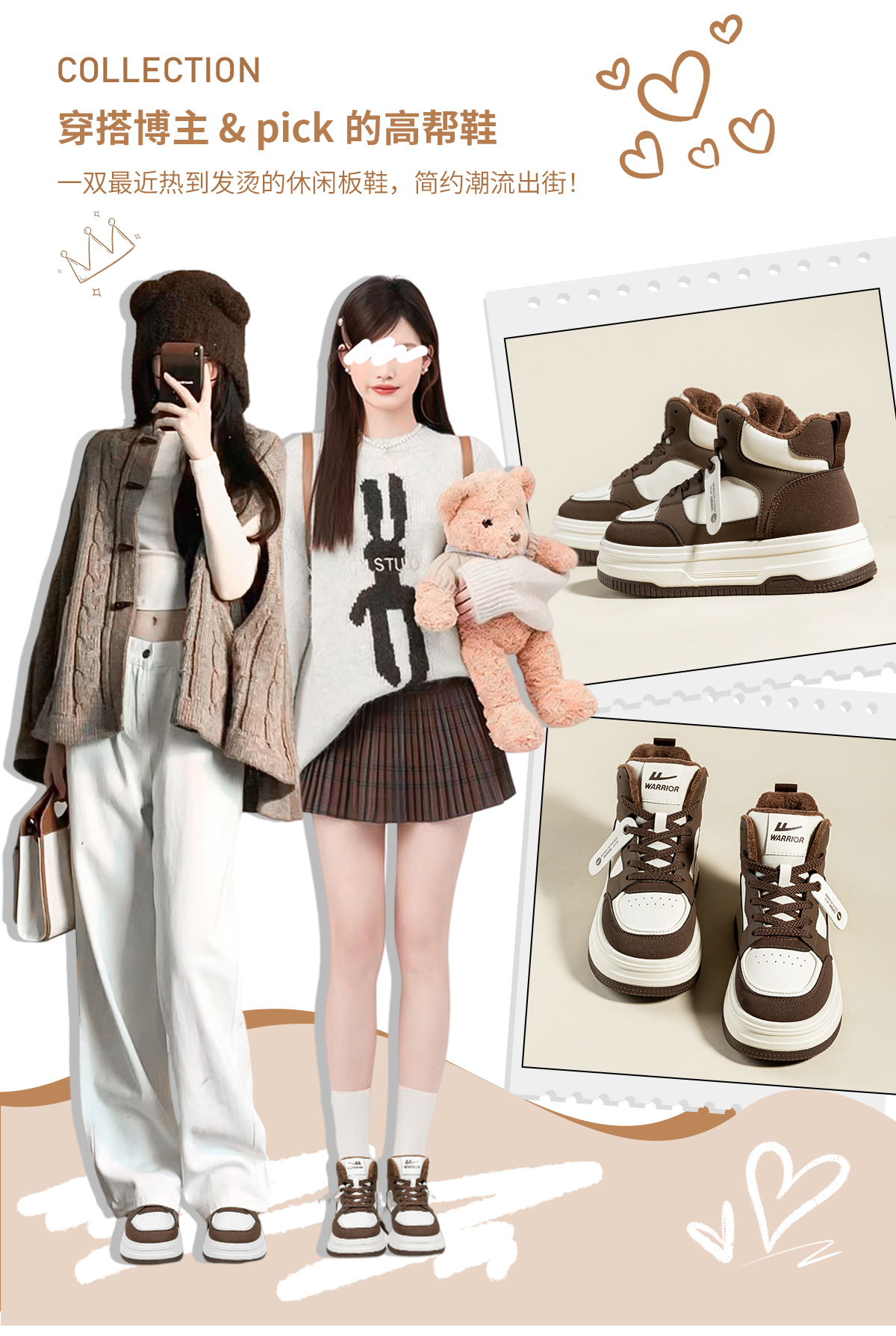 Huili Women's Shoes High-top Shoes Women's 2025 New arrival Fall and winter Best Selling Cotton Shoes Thick Sole Easiest for match Fleece-lined Shoes Sports Board Shoes