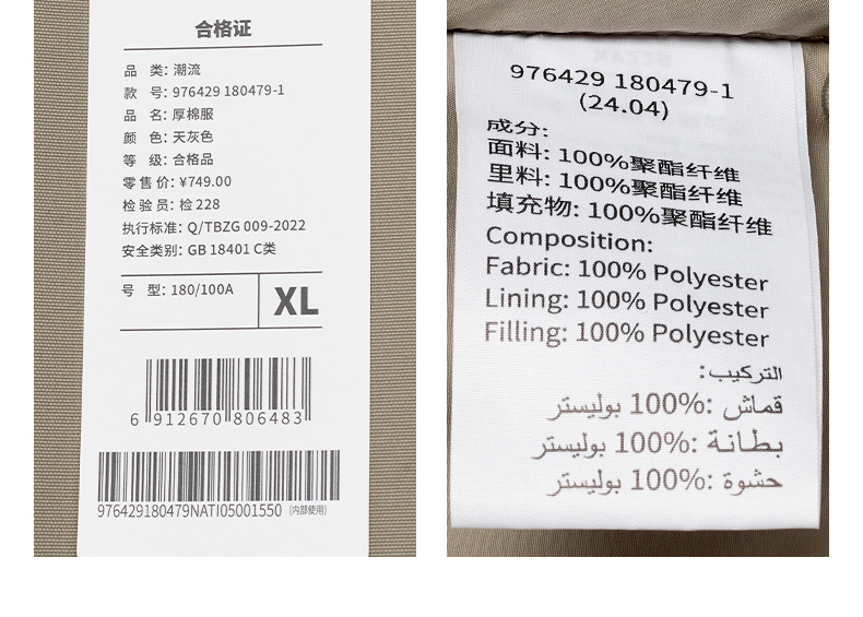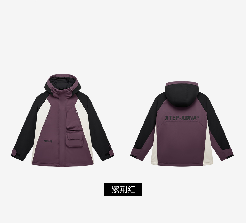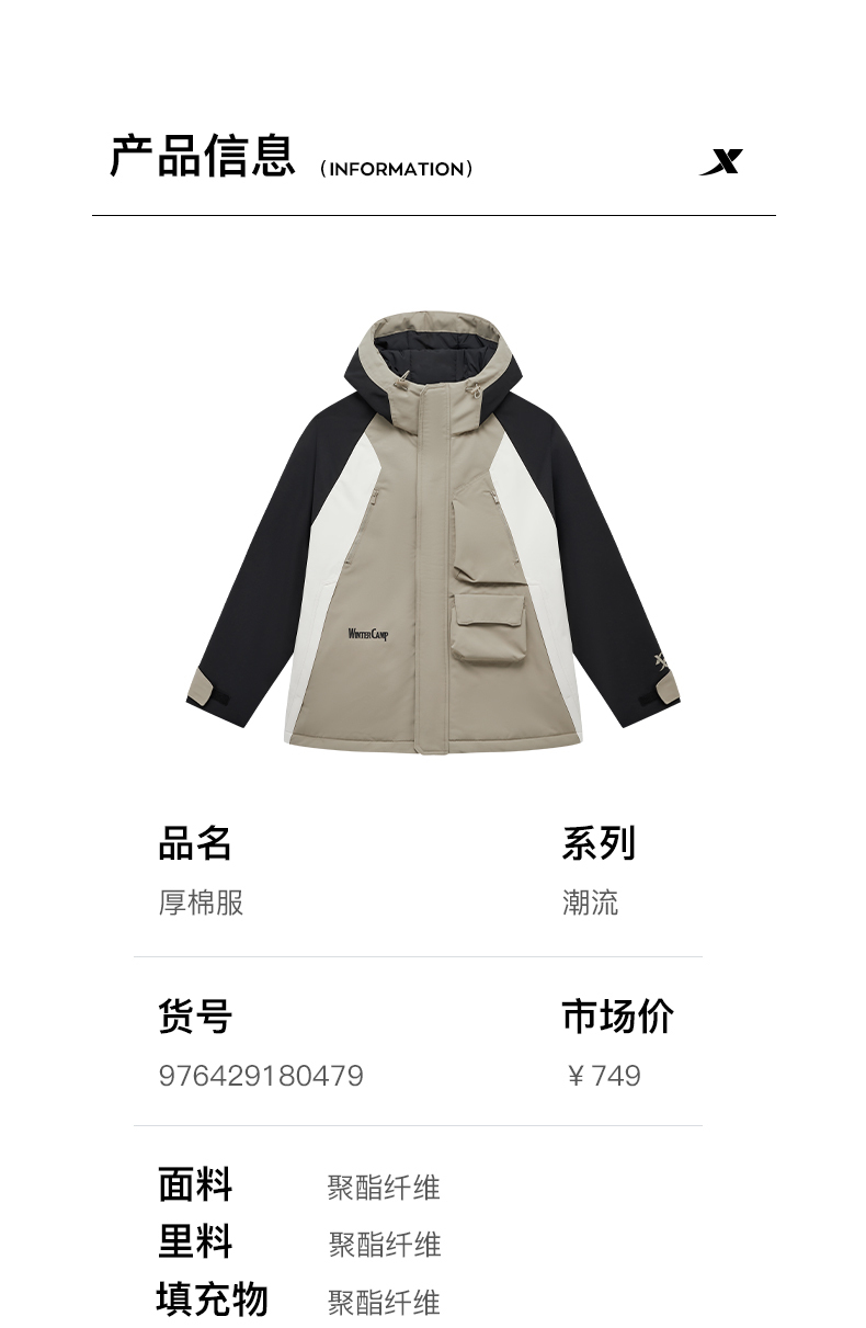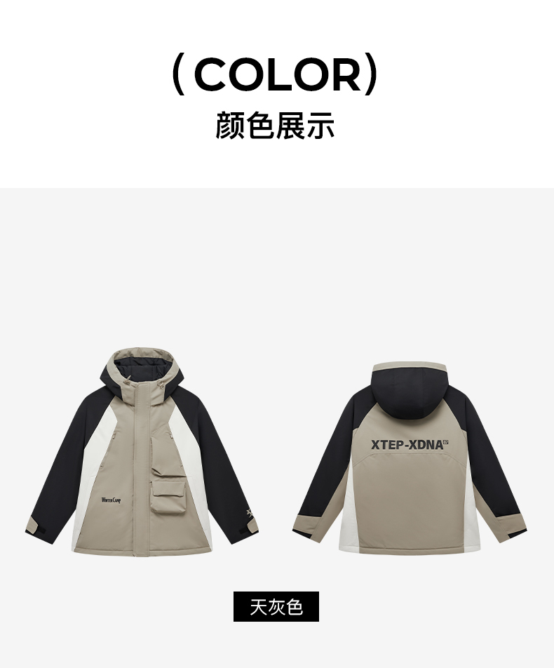 Xtep Thick Cotton Jacket for Men, Autumn and Winter Trendy Color-Blocking New Style, Fleece-Lined and Thickened for Warmth, Jacket 976429180479