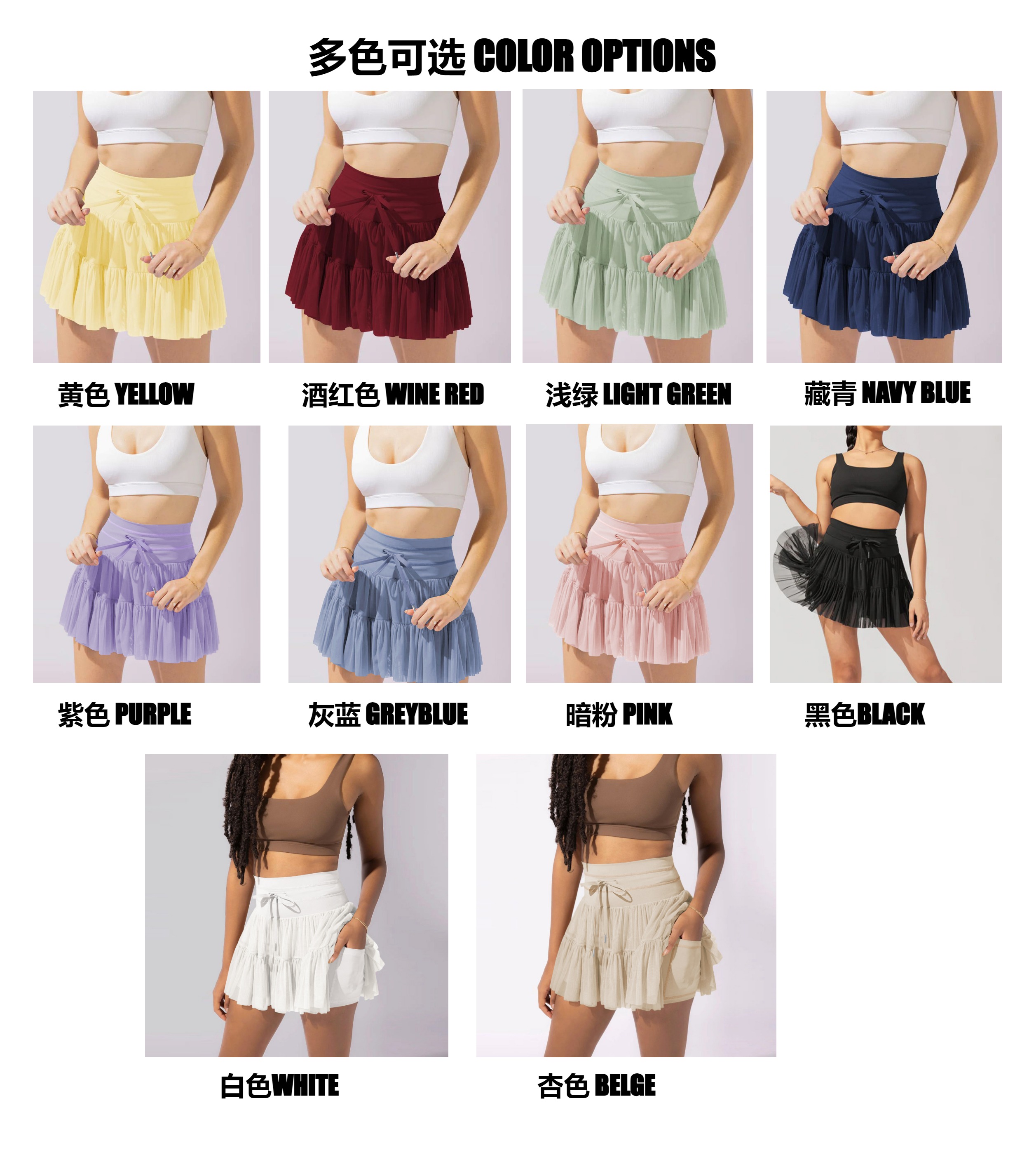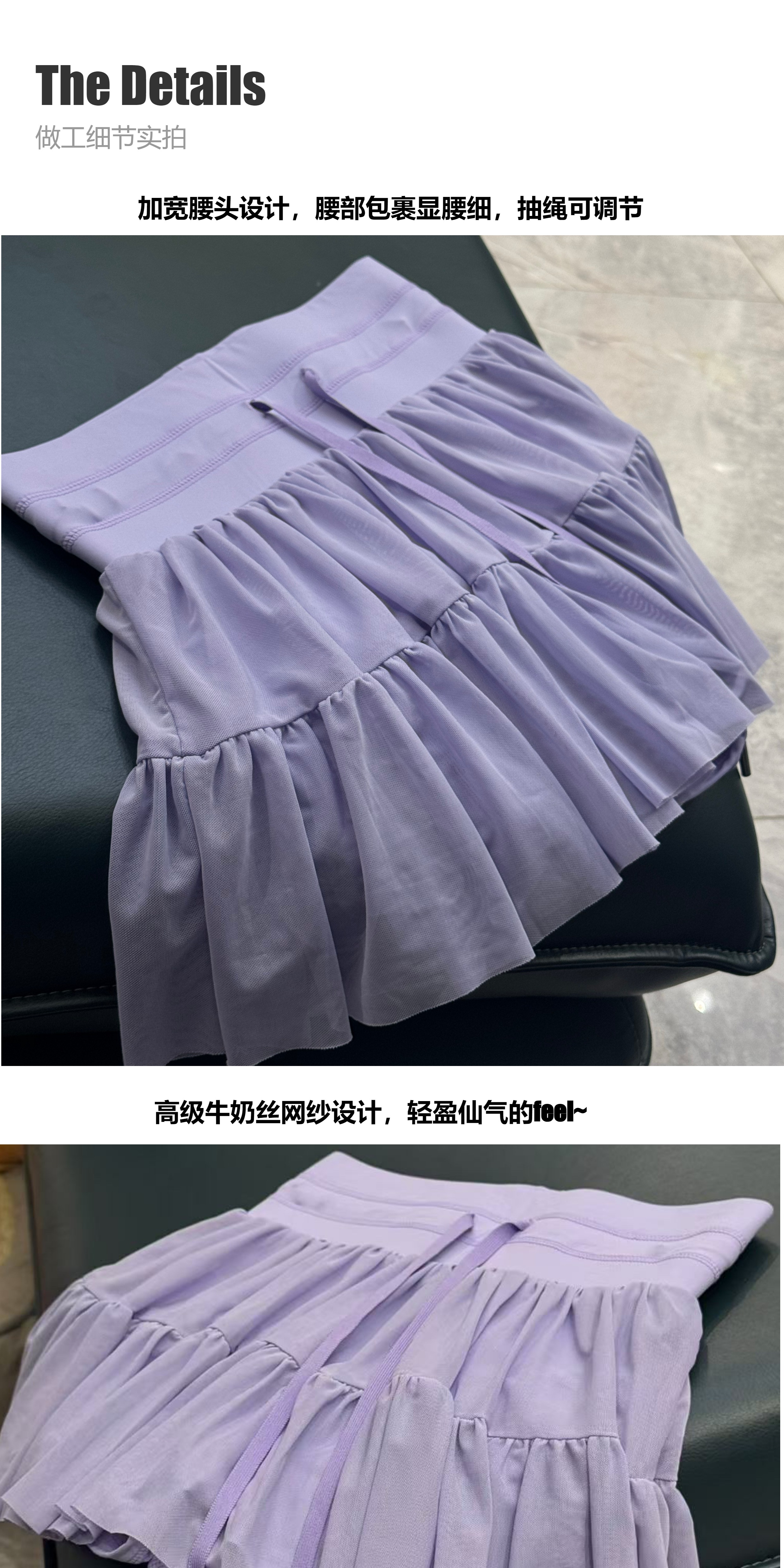 Pleated Sports Short Skirt, Fake Two-Piece, Lace-Up, High-Waisted, Cross-Border, Anti-Exposure, Quick-Drying, Mesh Splicing Tennis Skirt, New Product