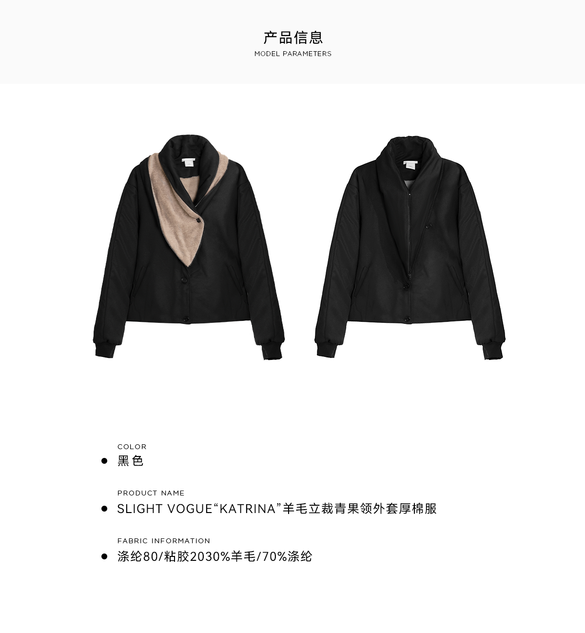 Slight Vogue "Katrina" Wool Tailored Green Fruit Collar Coat Thick Cotton Jacket