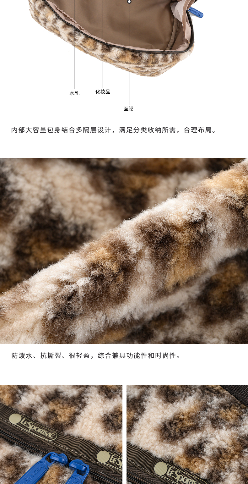 LeSportsac Music Poetry 2024 New arrival Sexy Leopard Print Makeup Cosmetics Bag Stuffed Fashion Handbag Women