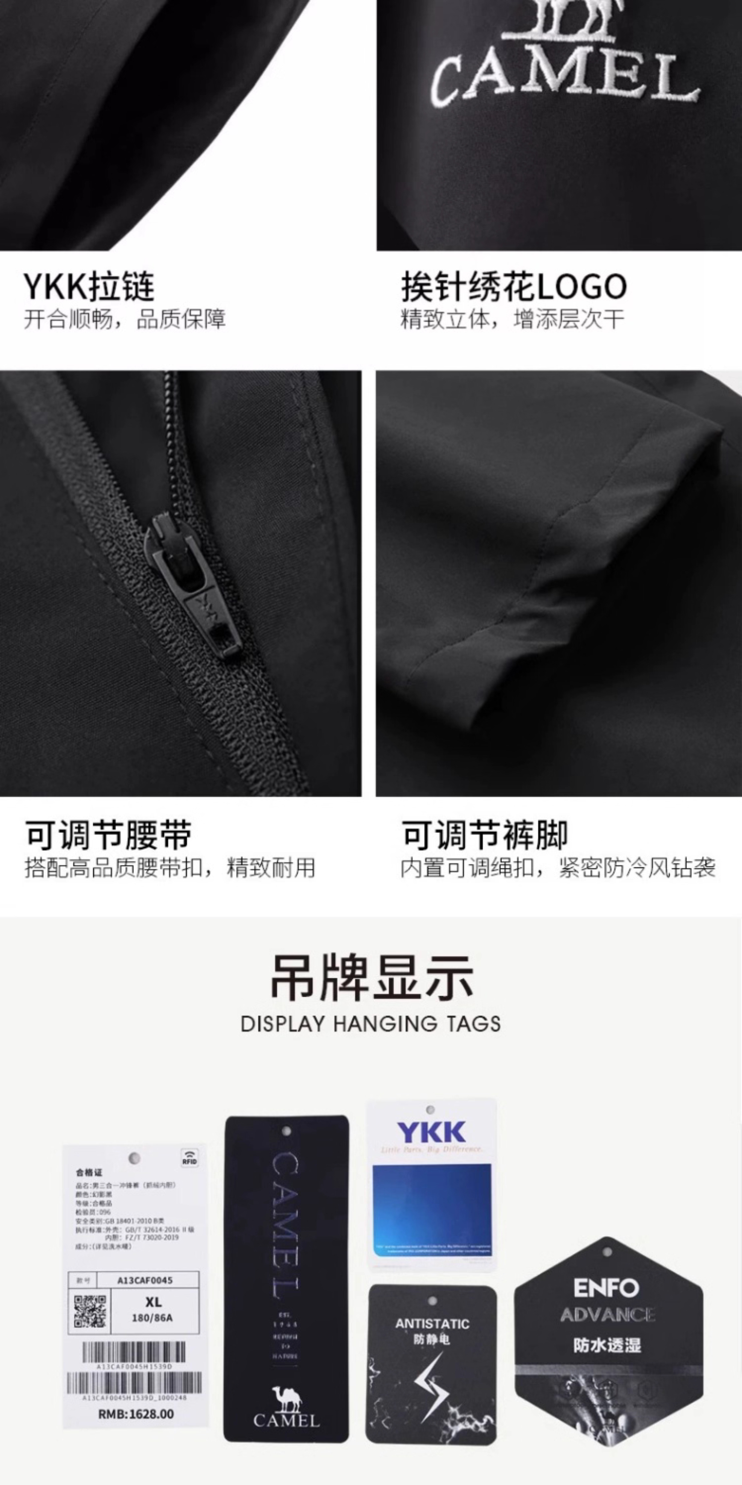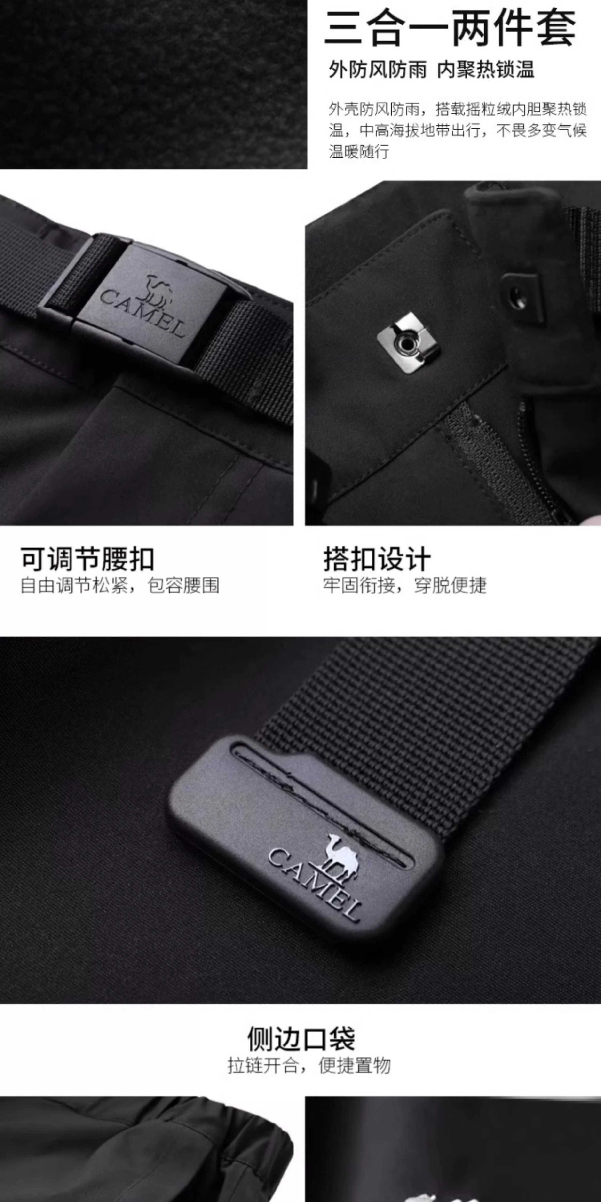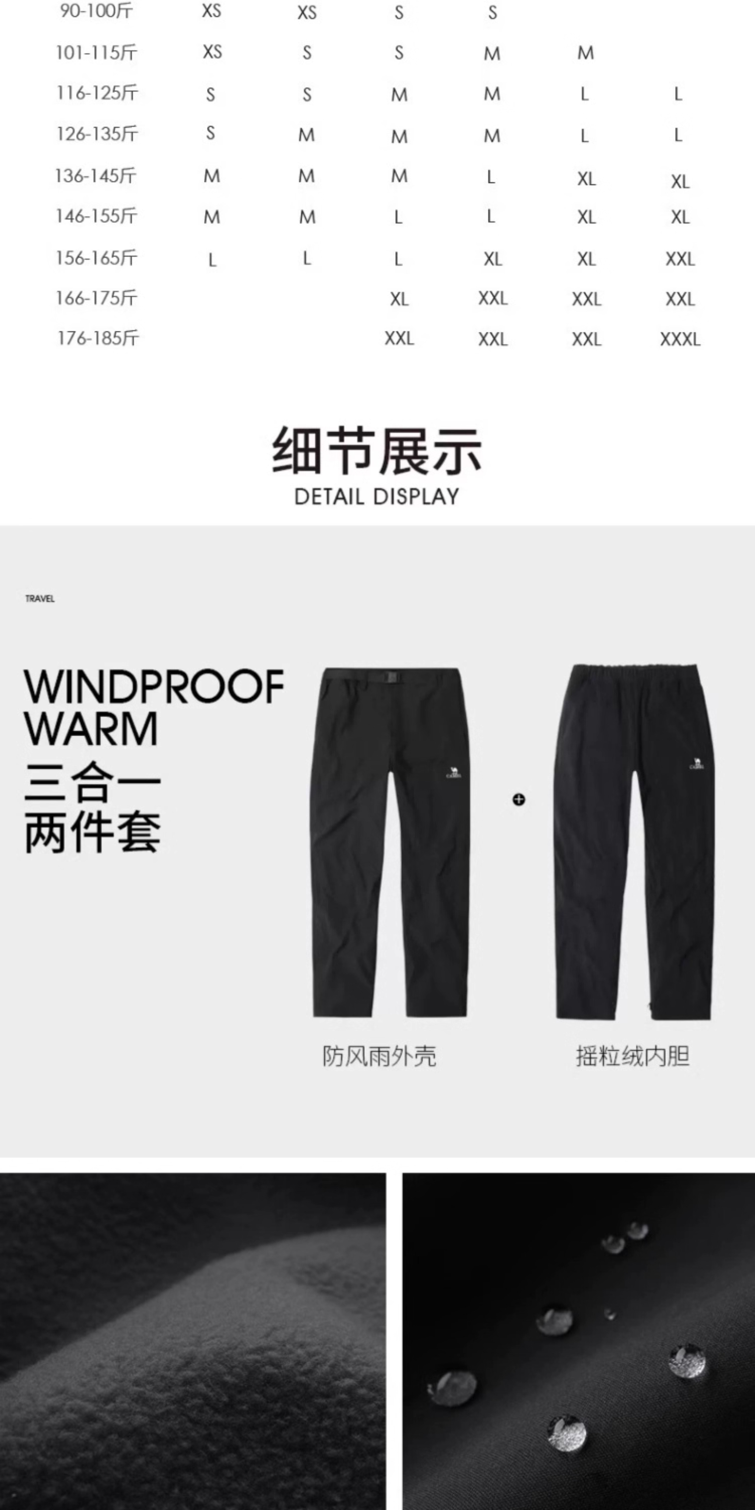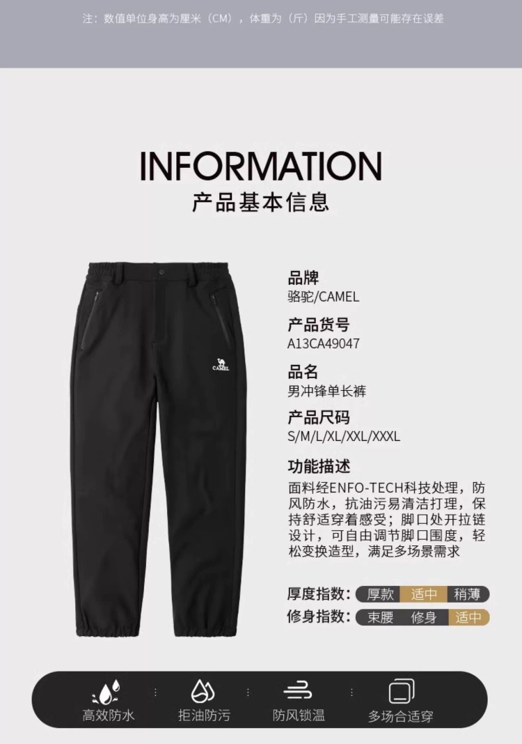 Camel 3-in-1 Softshell Pants for Men, Autumn and Winter Outdoor Windproof and Water-Repellent Hiking Pants for Women, Fleece-Lined and Thickened Casual Pants