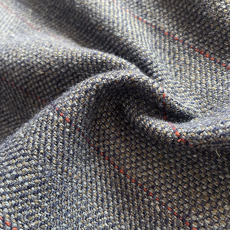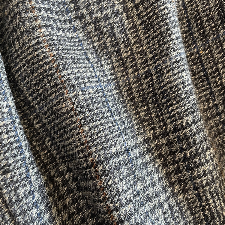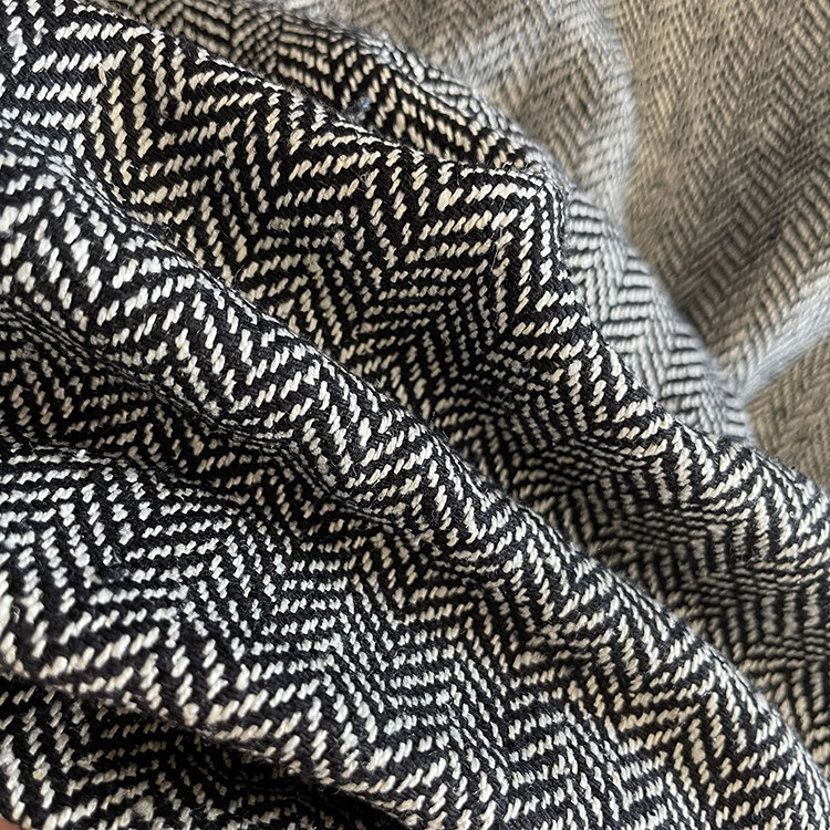 灰色人字纹是几种纹理结合,咖色小格子是粗细纱线交织