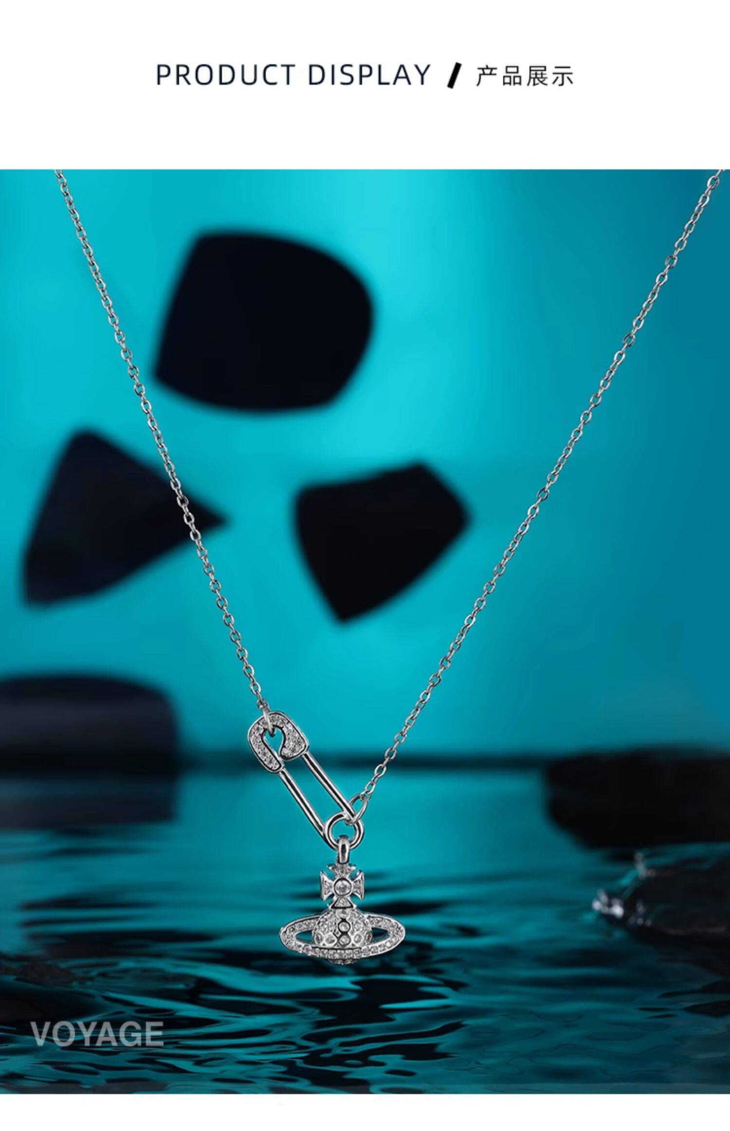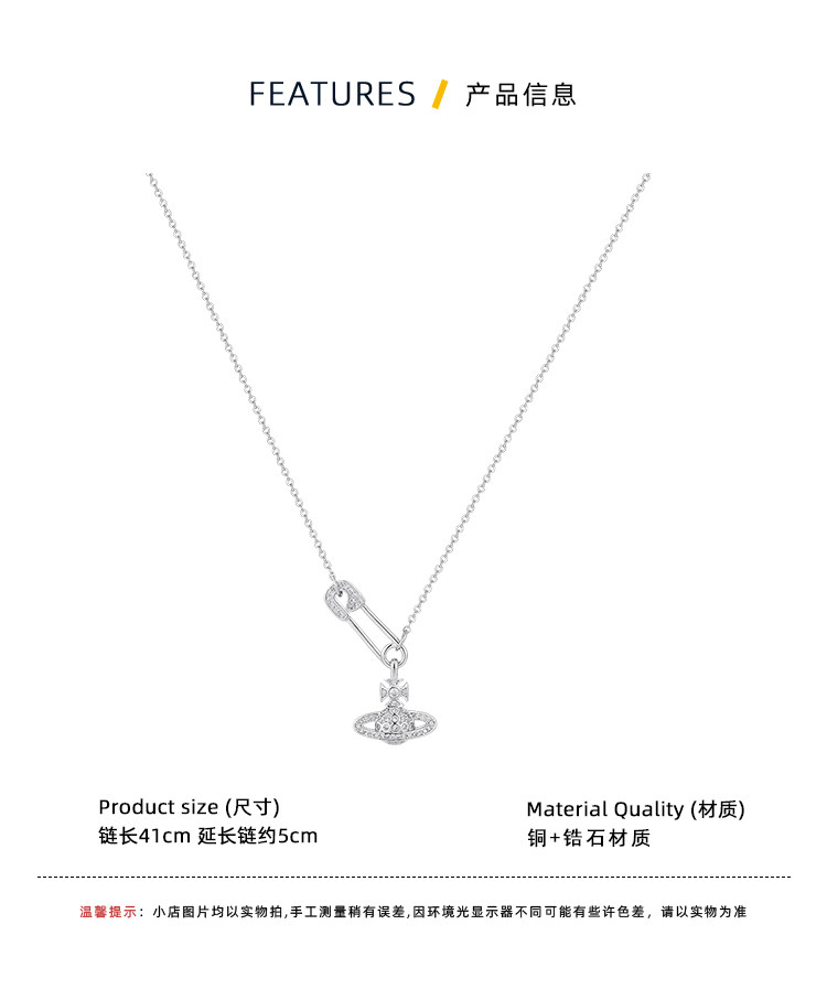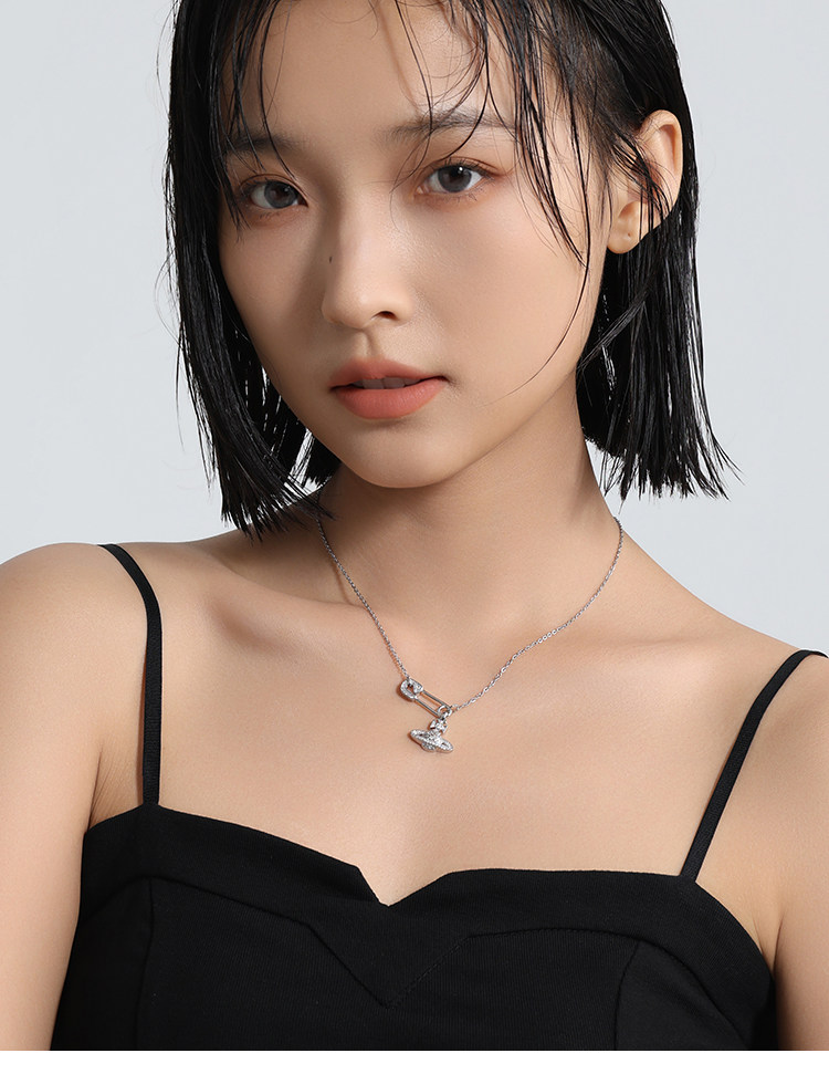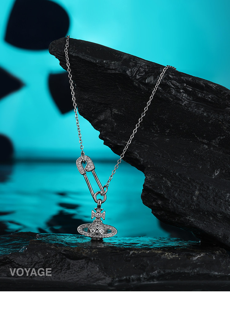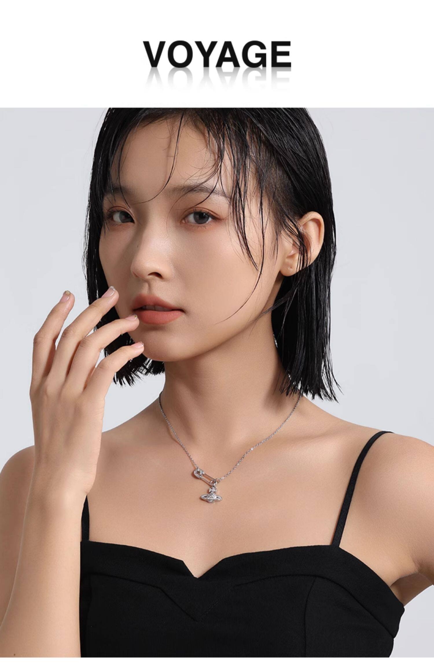 Saturn Zircon Pendant Pin Necklace for Women, Light Luxury Niche Design, High-End Clavicle Chain, Sweet Cool Minimalist Style Accessory