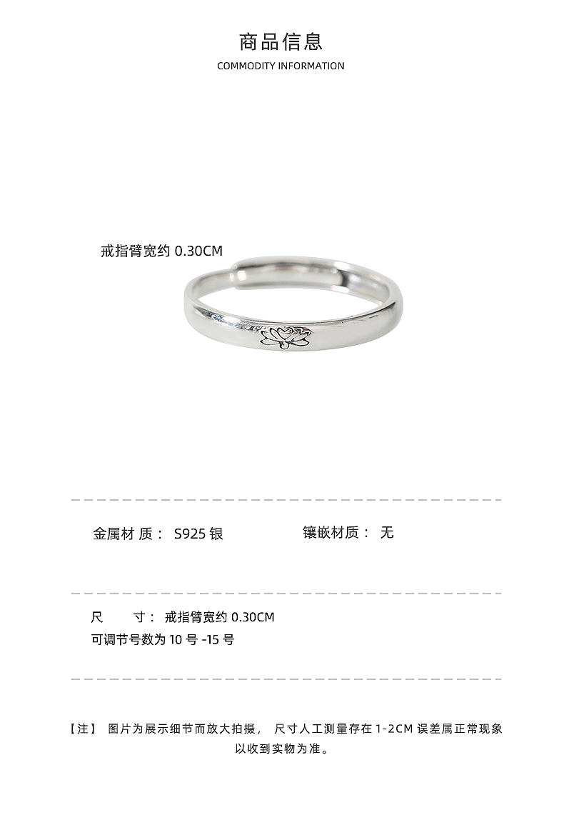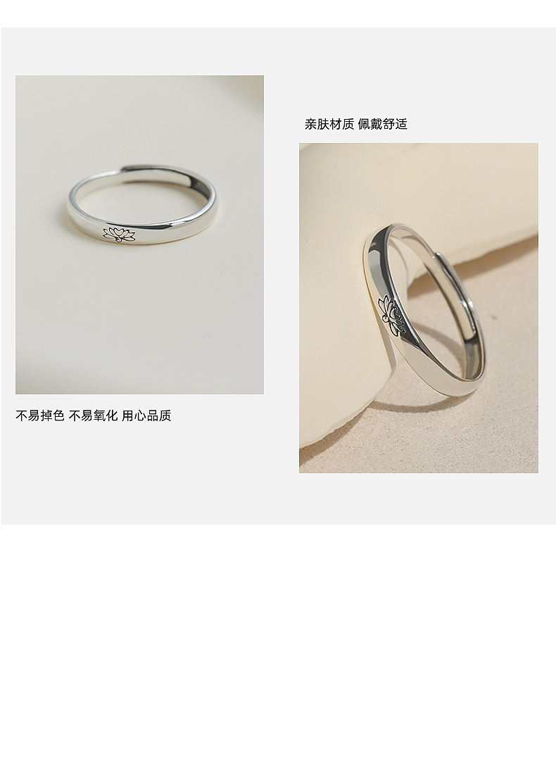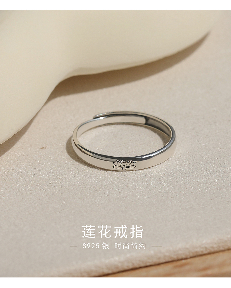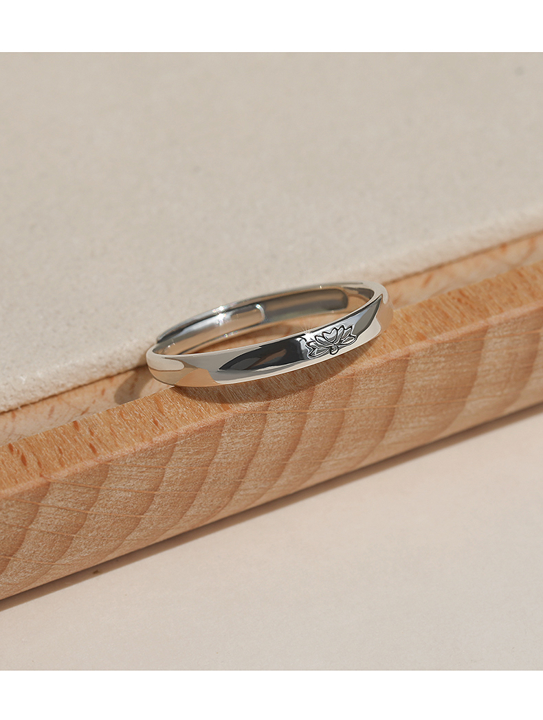French [Designer] Nickarl925 Sterling Silver Women's Light Luxury Niche Open Ring Chinese Style Lotus Ring