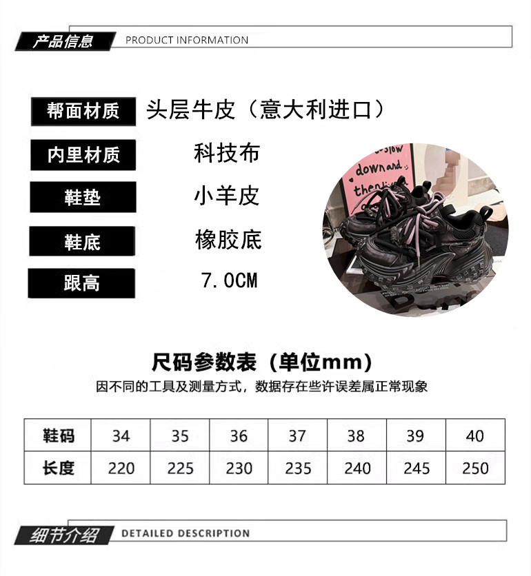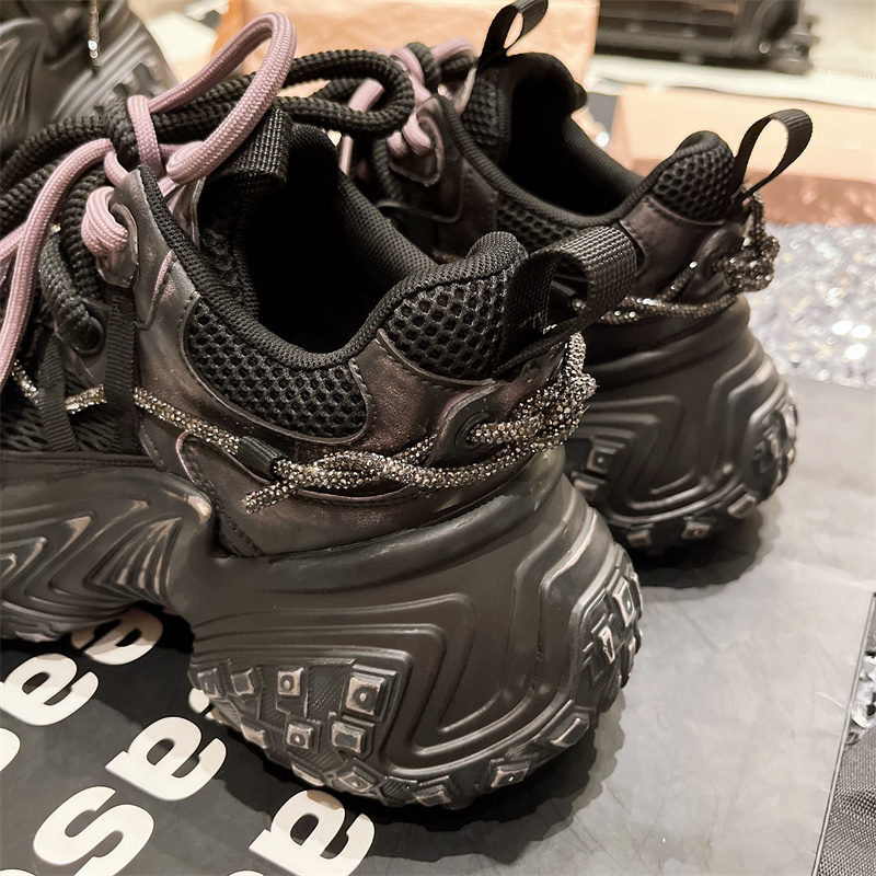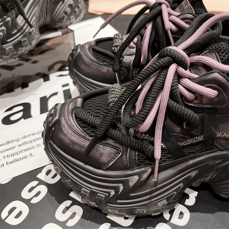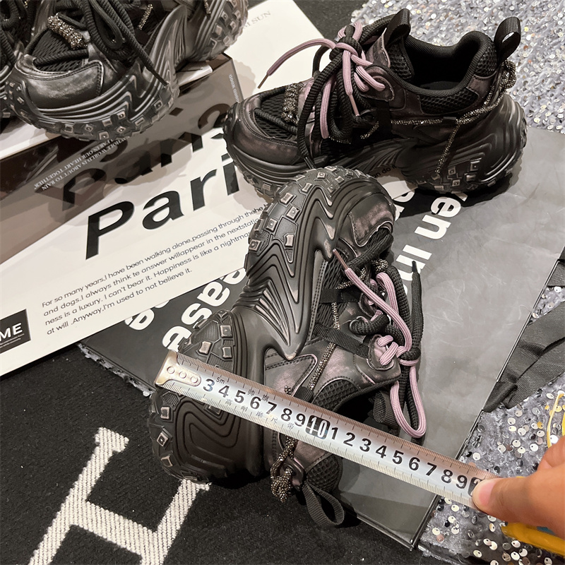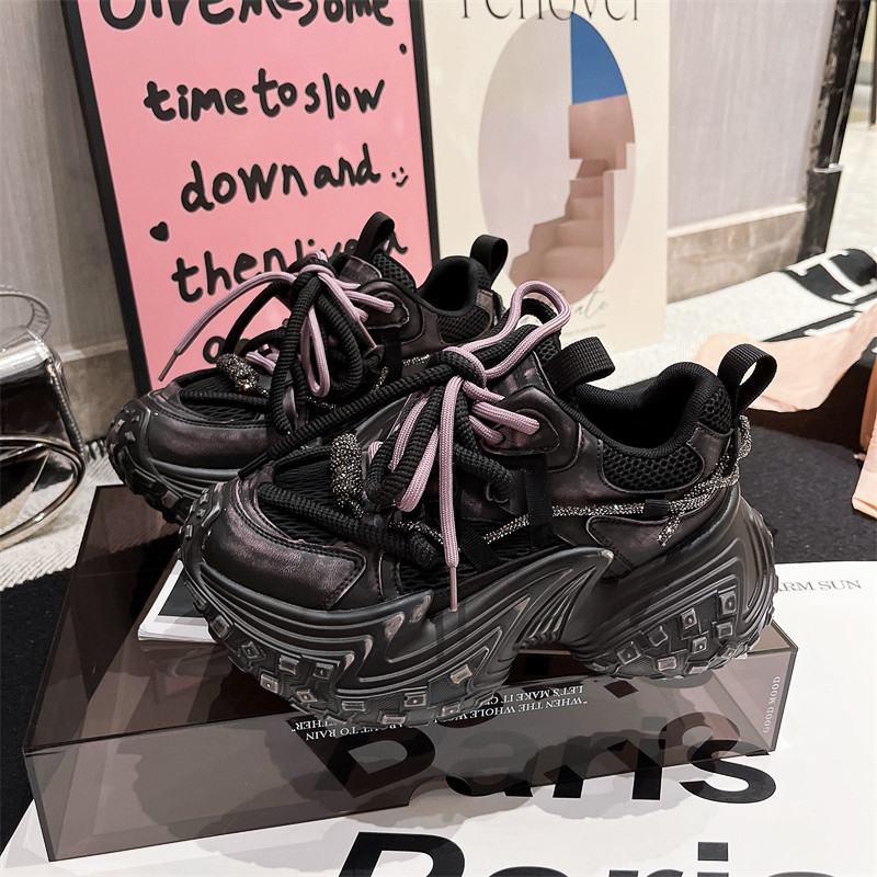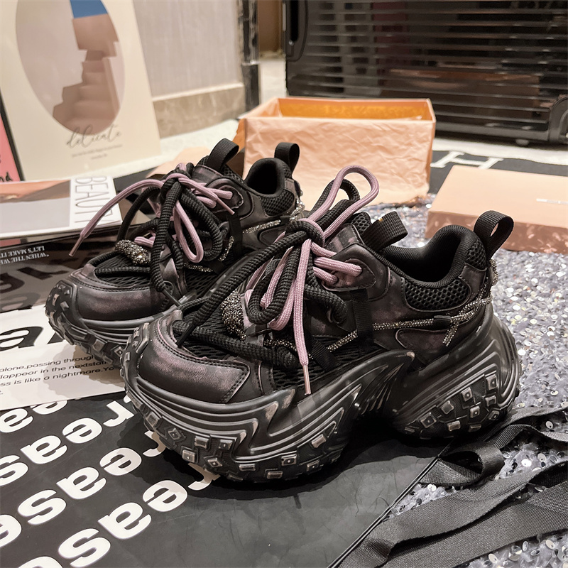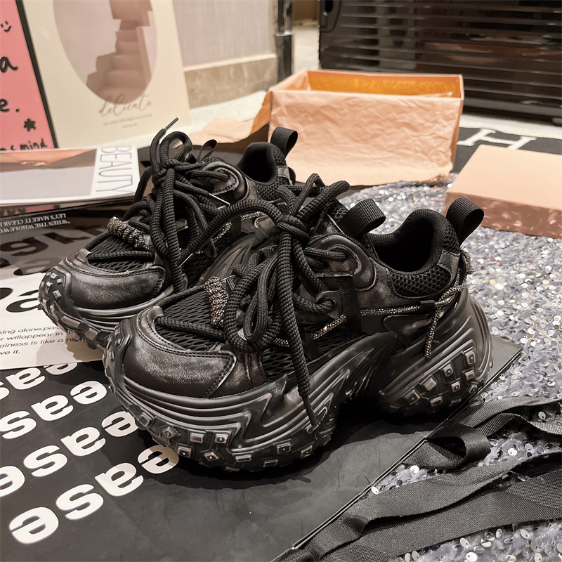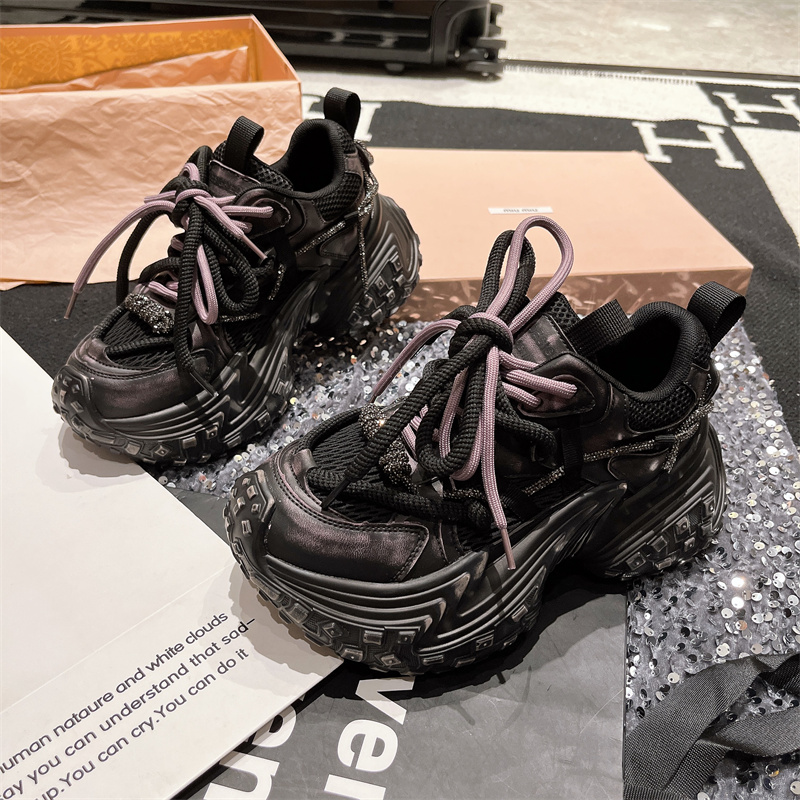 Sanli Genuine Leather Lace-Up Thick-Soled Height-Increasing Casual Sneakers for Women 2025 New Tire Durian Sole Color-Polished Dad Shoes