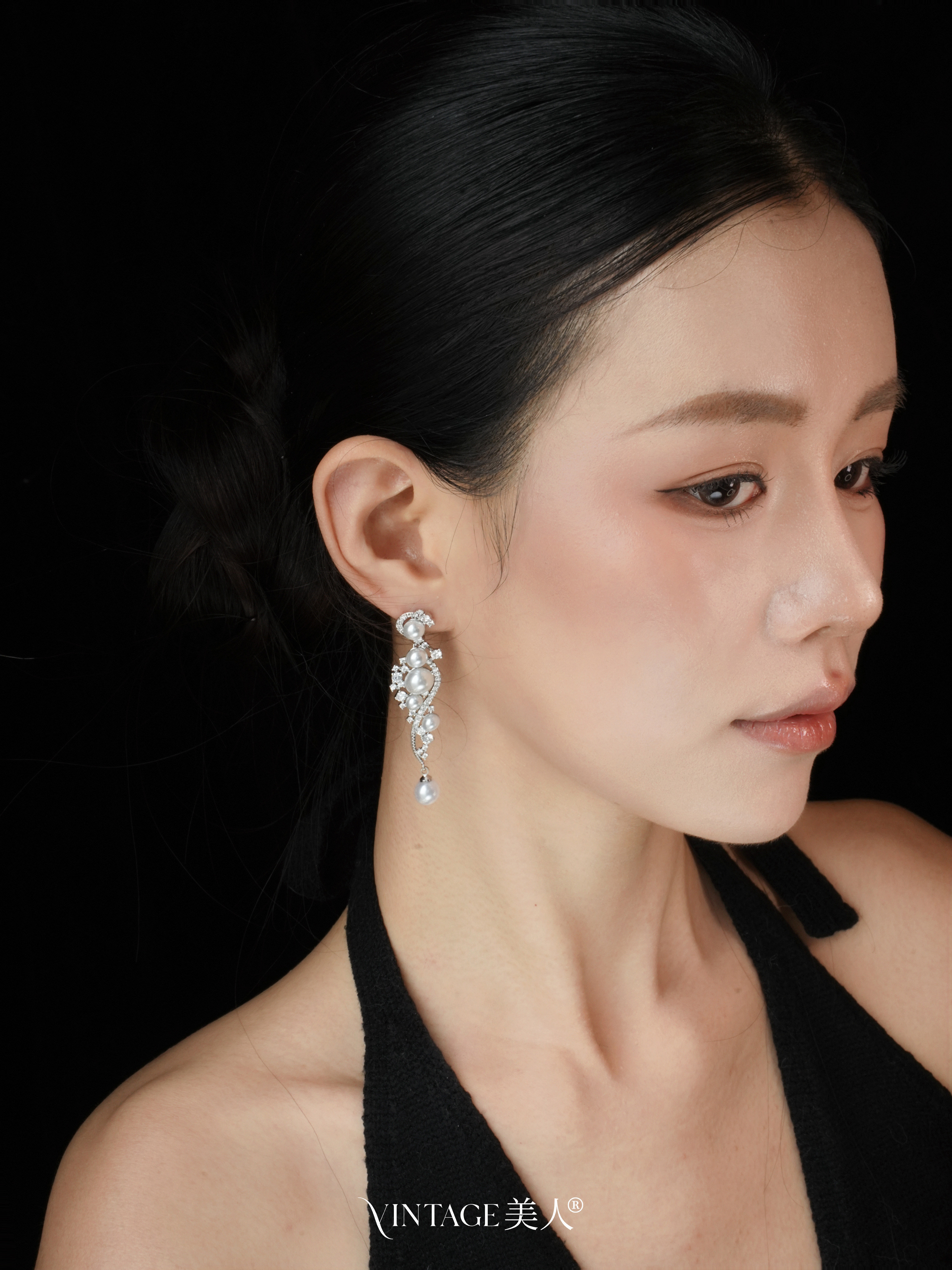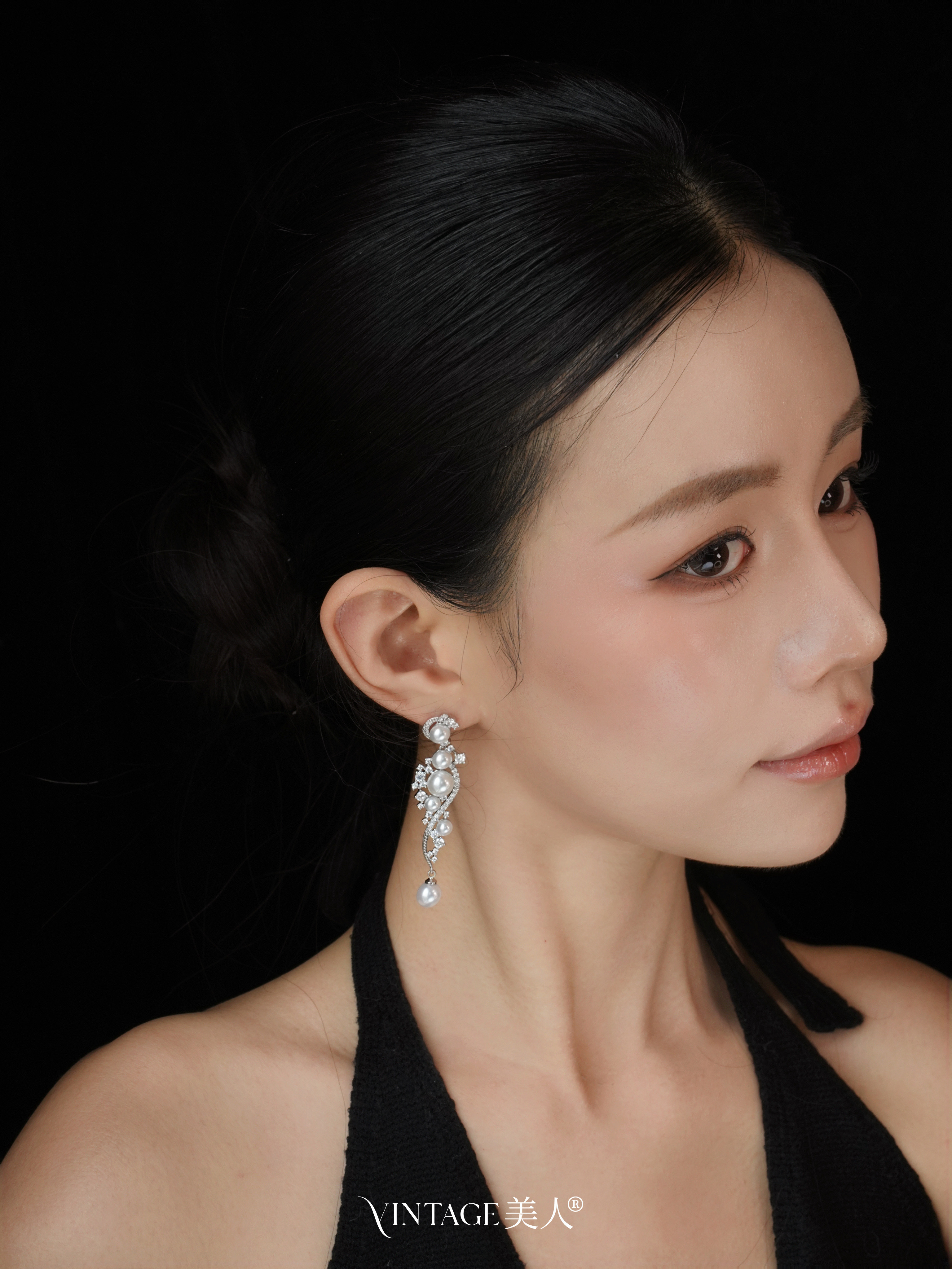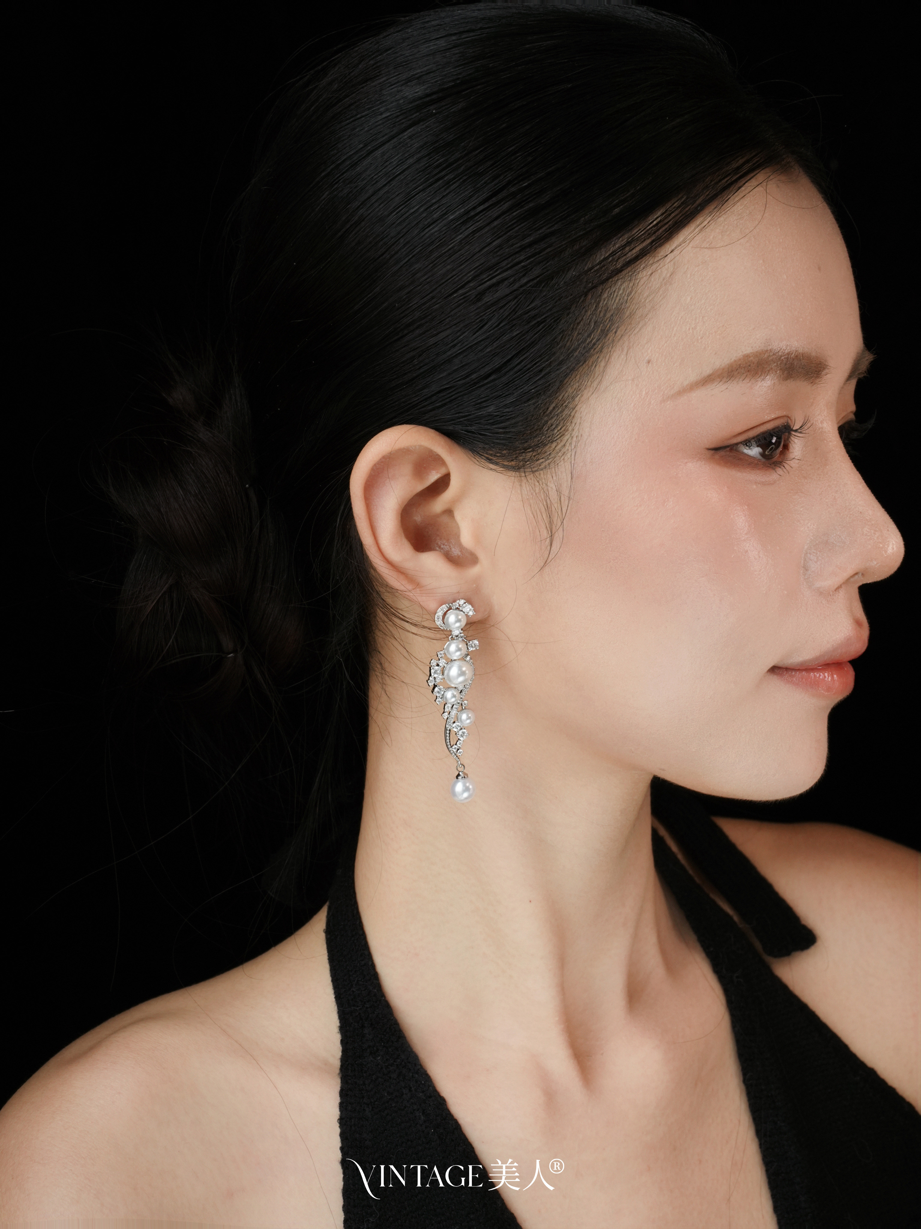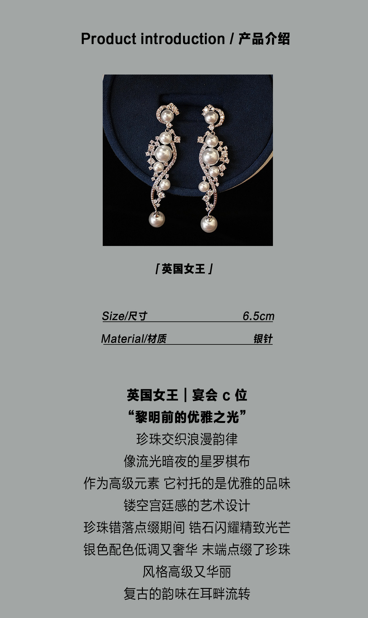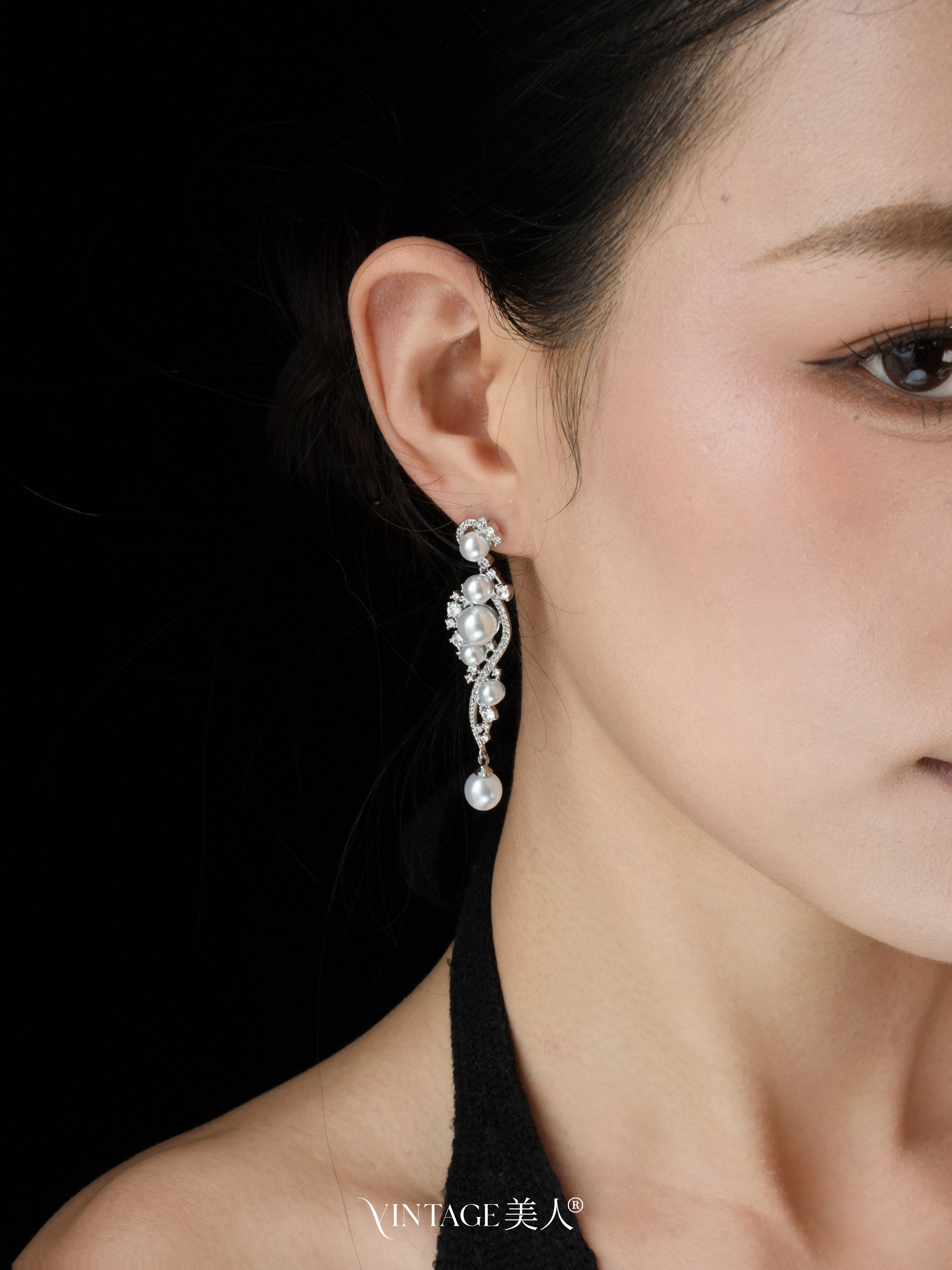 Queen of England Style French High-End Light Luxury Elegant Vintage Banquet Exquisite Sparkling Pearl Earrings/Ear Clips