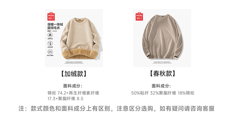 Miniso/Miniso Brand Fleece Sweater for Men, Winter Thickened Knit Sweater with Integrated Fleece, Warm Knitwear a
