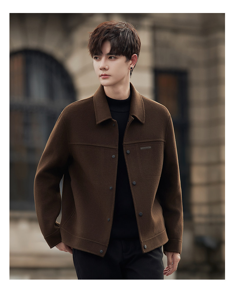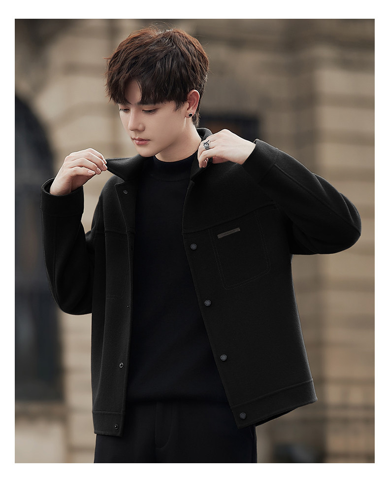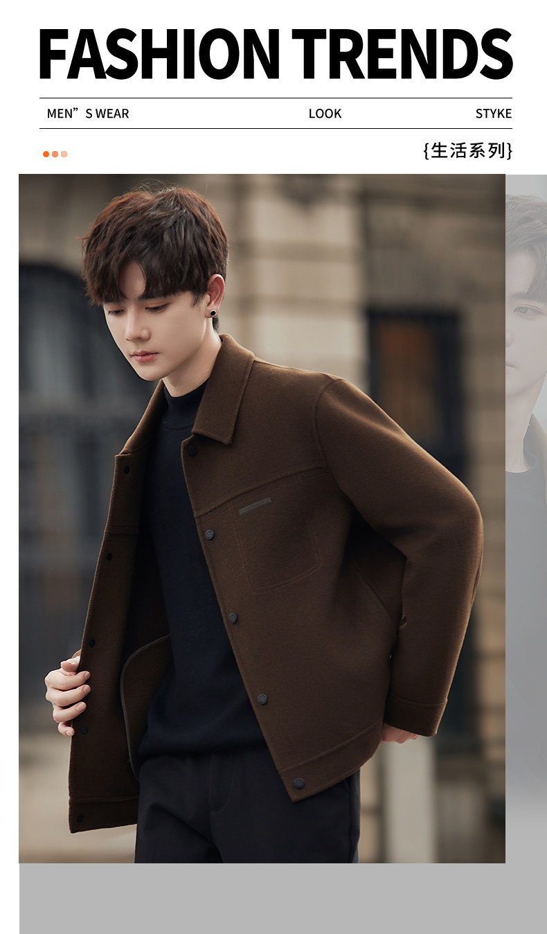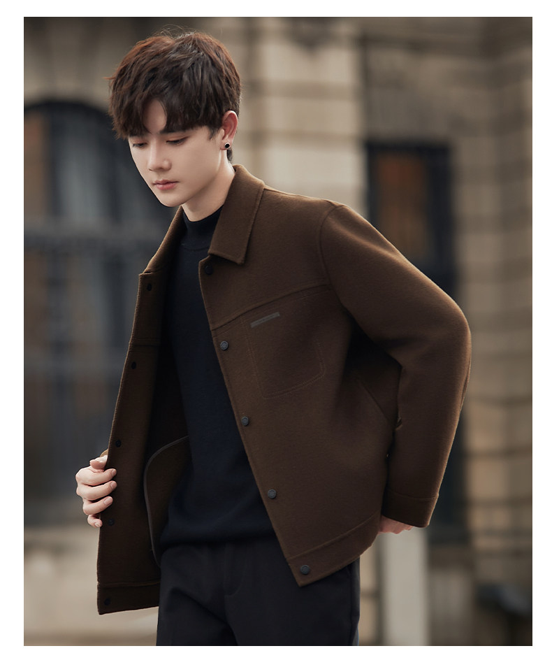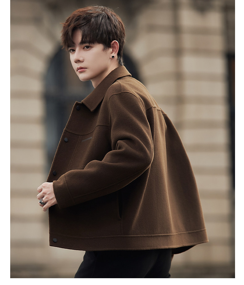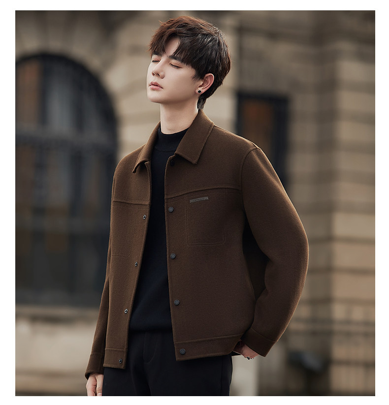 New Autumn and Winter Woolen Lapel Jacket for Men, Double-Sided Wool Short Casual Woolen Jacket, Men's Top Trendy