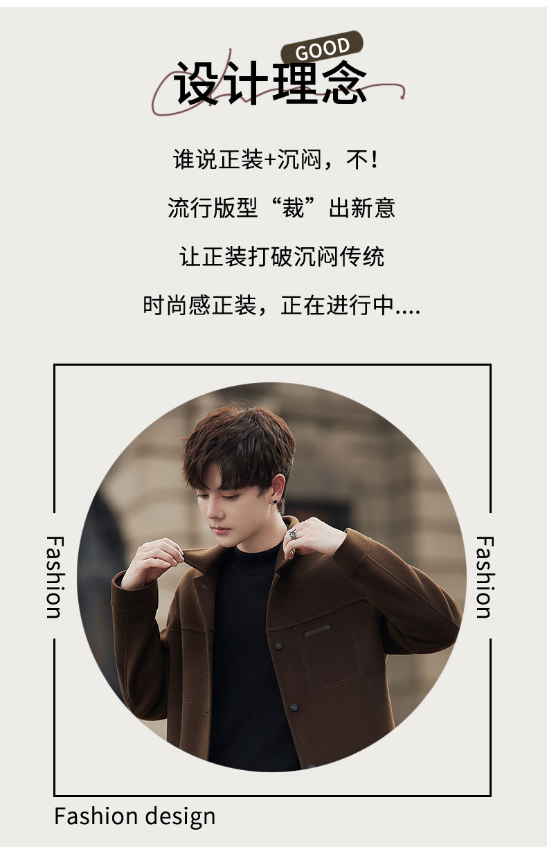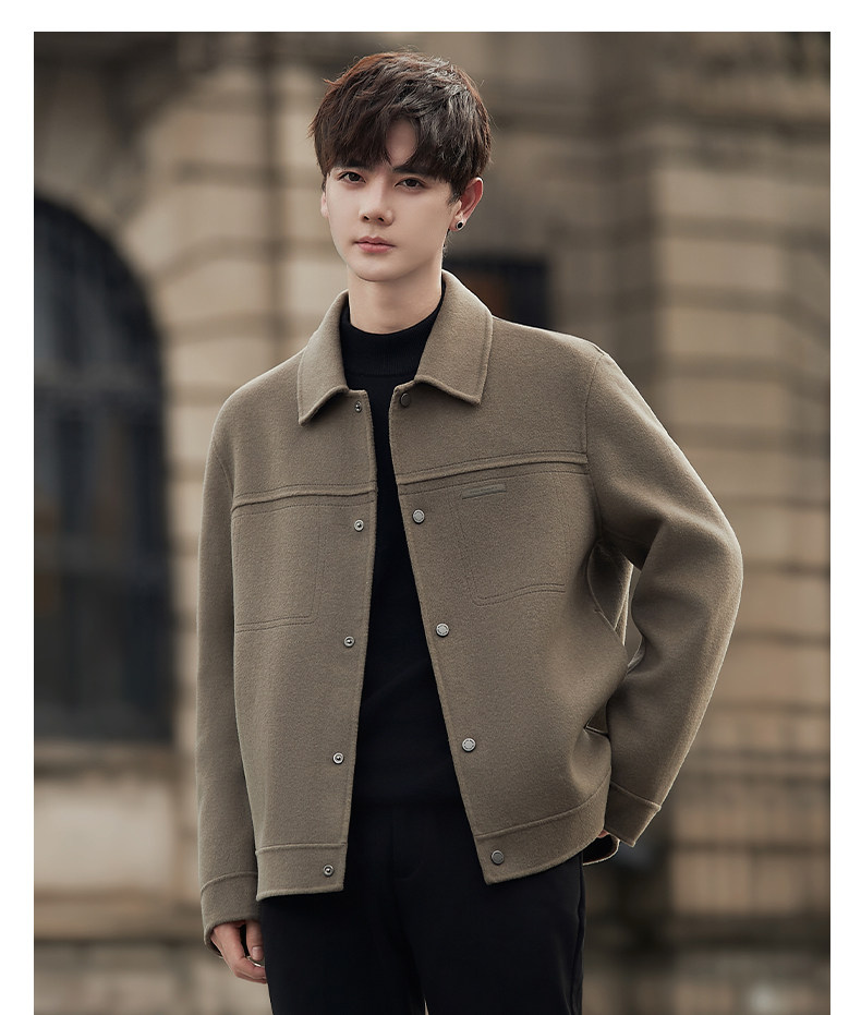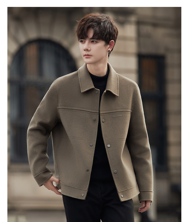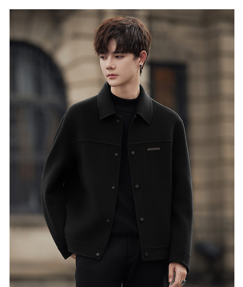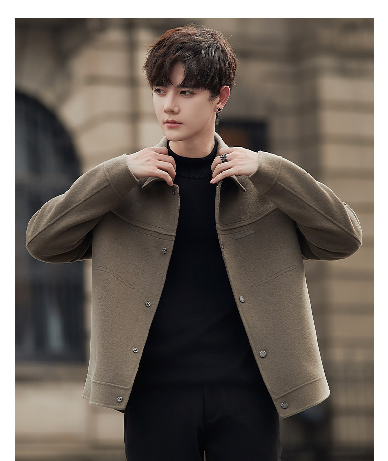 New Autumn and Winter Woolen Lapel Jacket for Men, Double-Sided Wool Short Casual Woolen Jacket, Men's Top Trendy