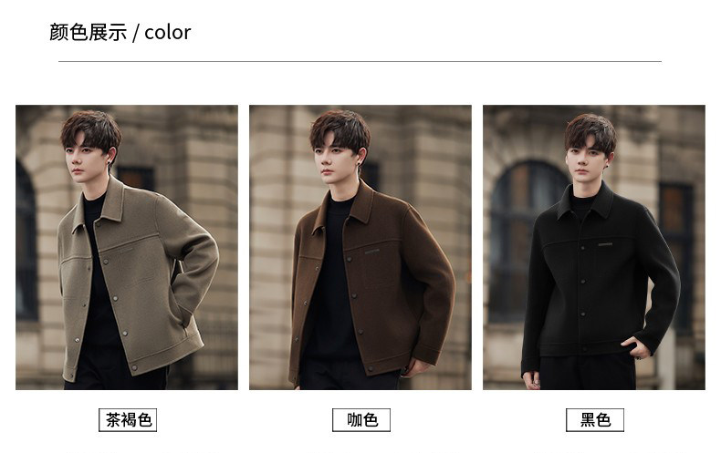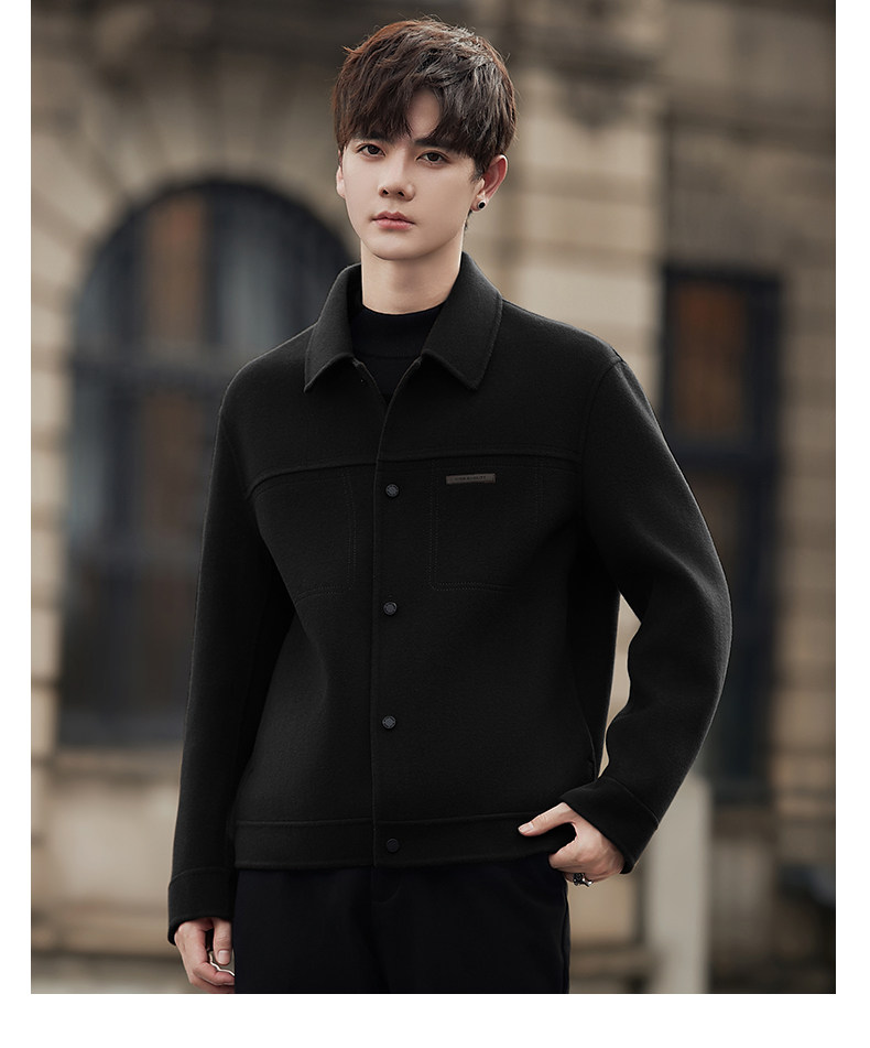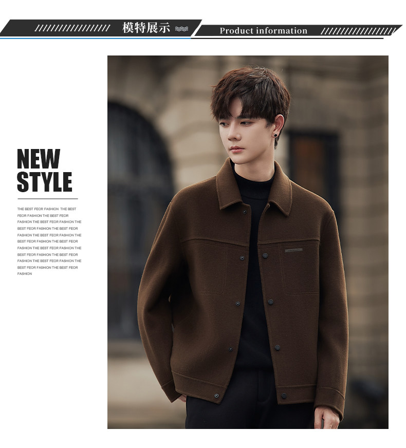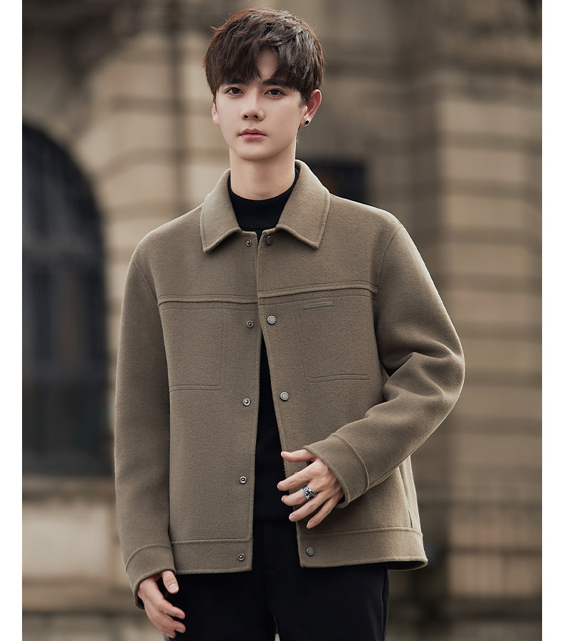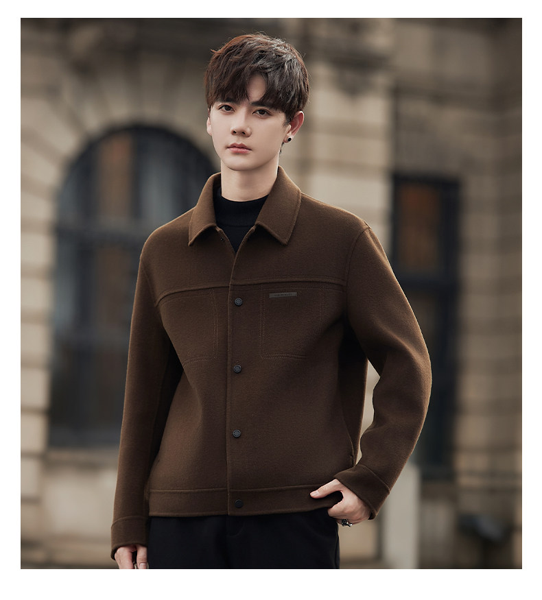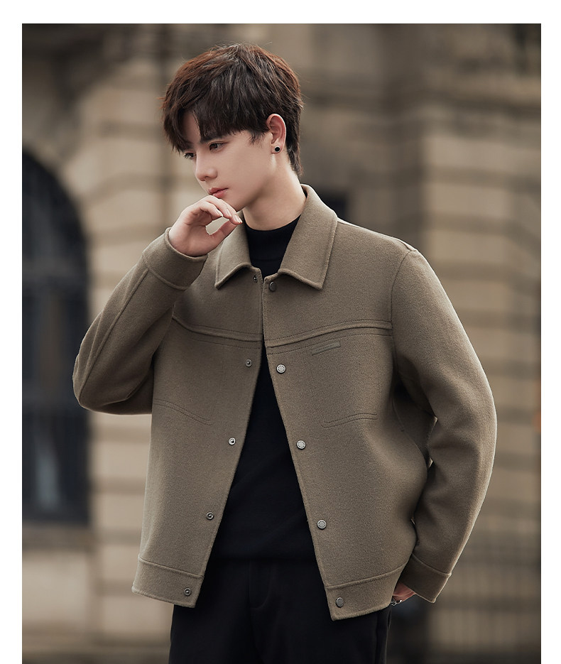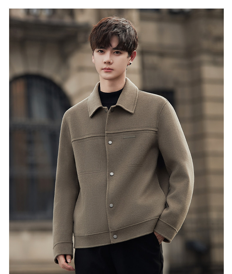 New Autumn and Winter Woolen Lapel Jacket for Men, Double-Sided Wool Short Casual Woolen Jacket, Men's Top Trendy