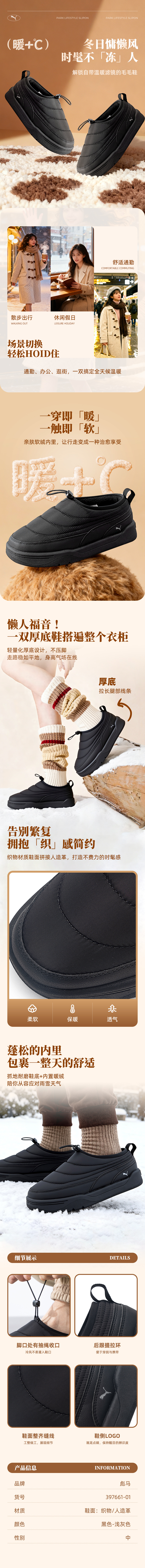 Puma Fleece-Lined Men's and Women's Shoes, Winter Slip-On Warm Cotton Shoes, Sneakers, Low-Top Lazy Shoes, Casual Shoes
